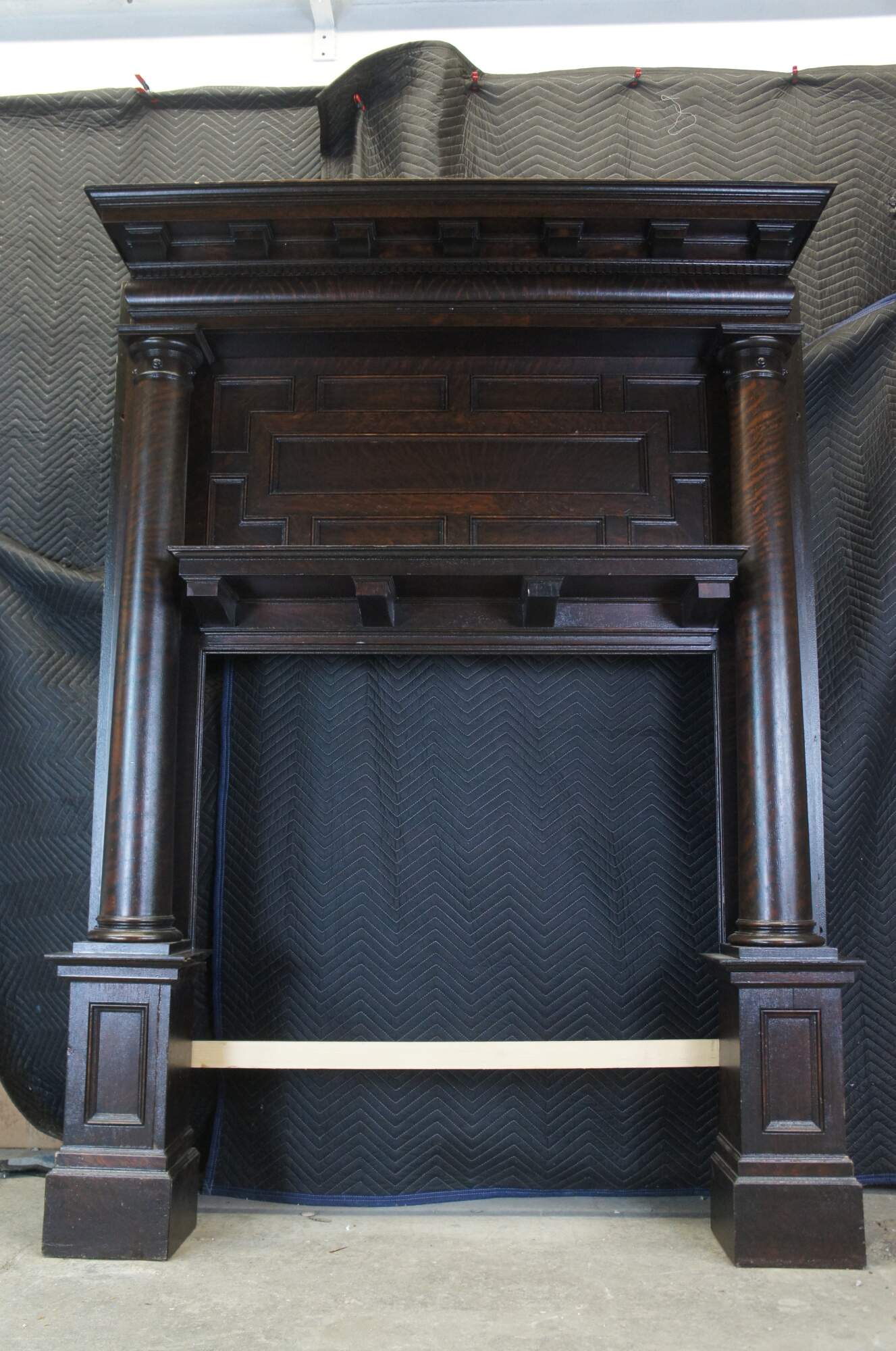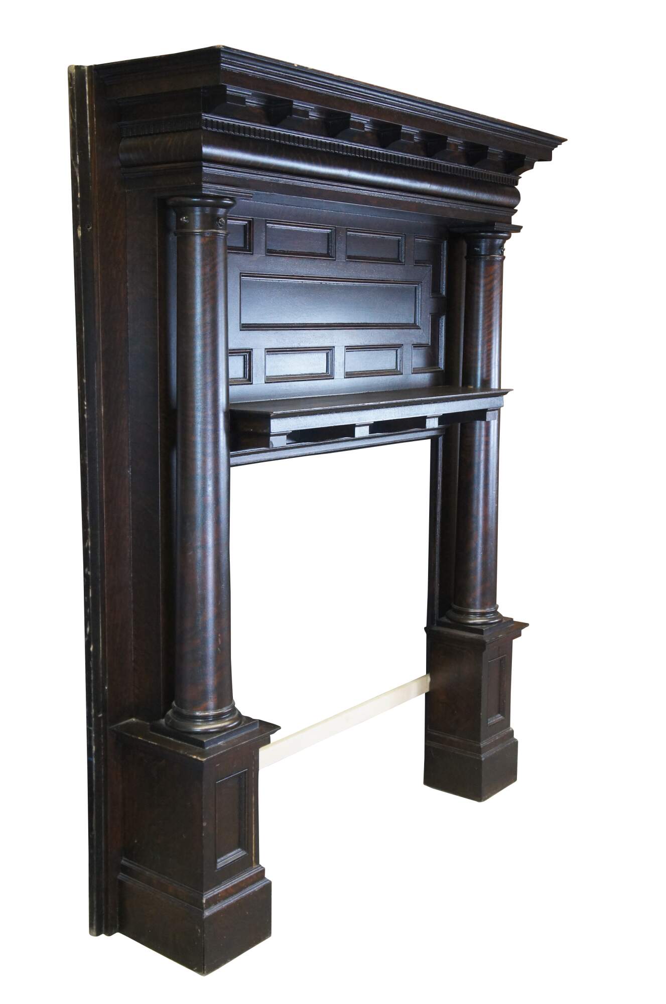 Large and impressive antique Victorian architectural salvage fireplace mante and surround. Expertly crafted about 1895 for a St. Louis mansion, this Renaissance design is wonderfully paneled with dentil moldings and shaped columns.