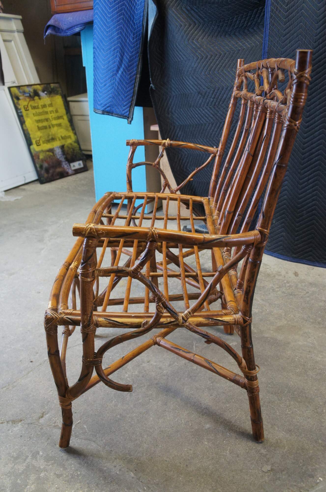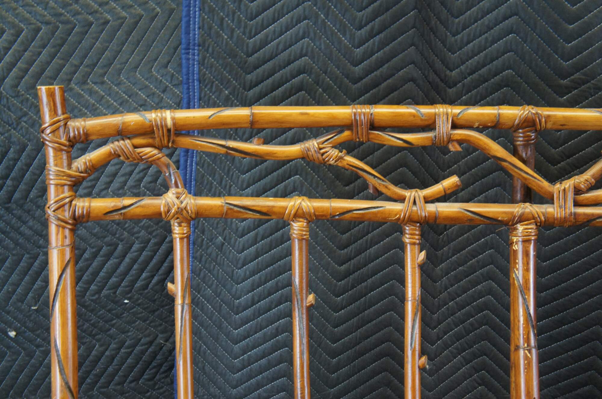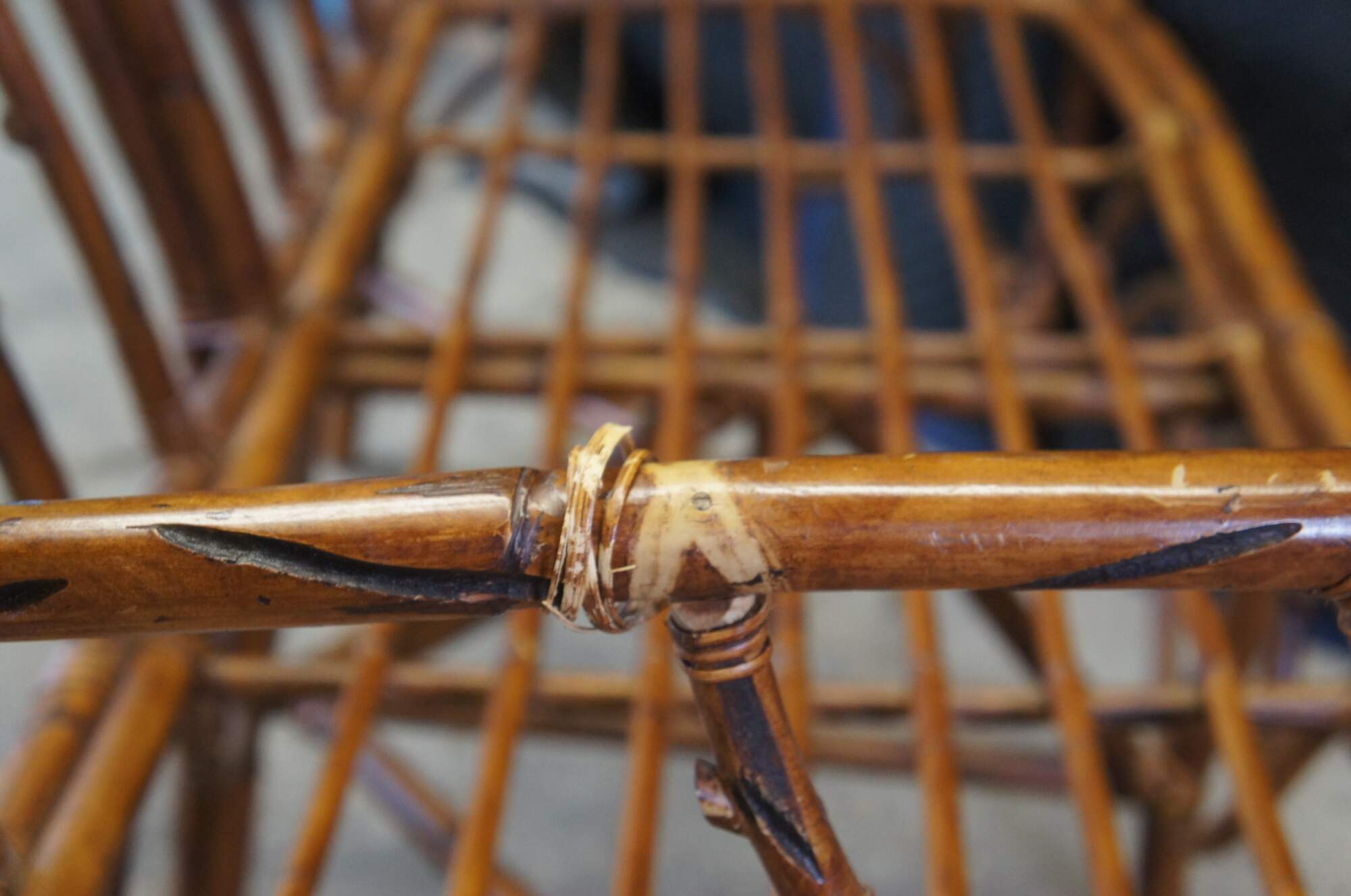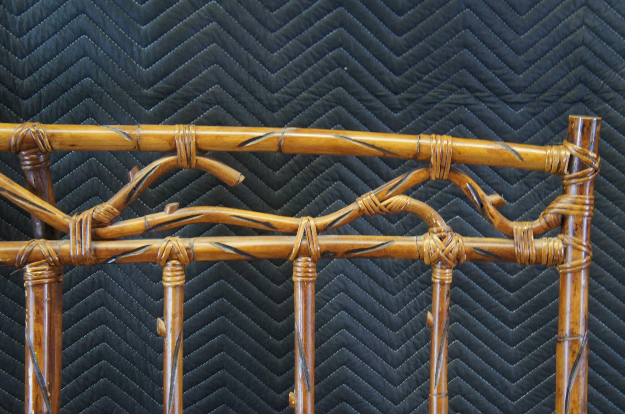 Vintage rustic log cabin / farmhouse / adirondak / tree branch style bench or settee. Made of bamboo and rattan featuring bentwood style and slatted back.