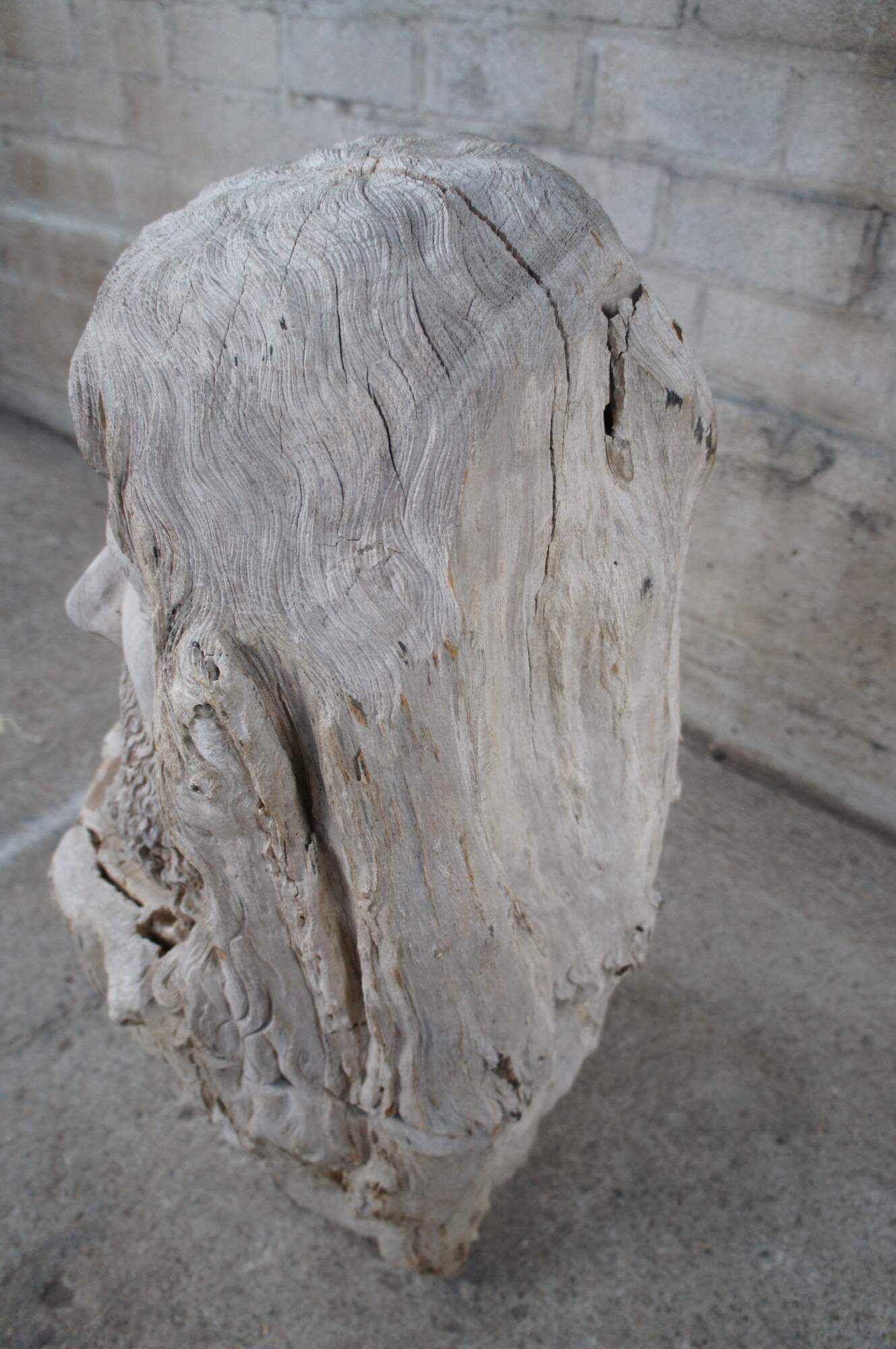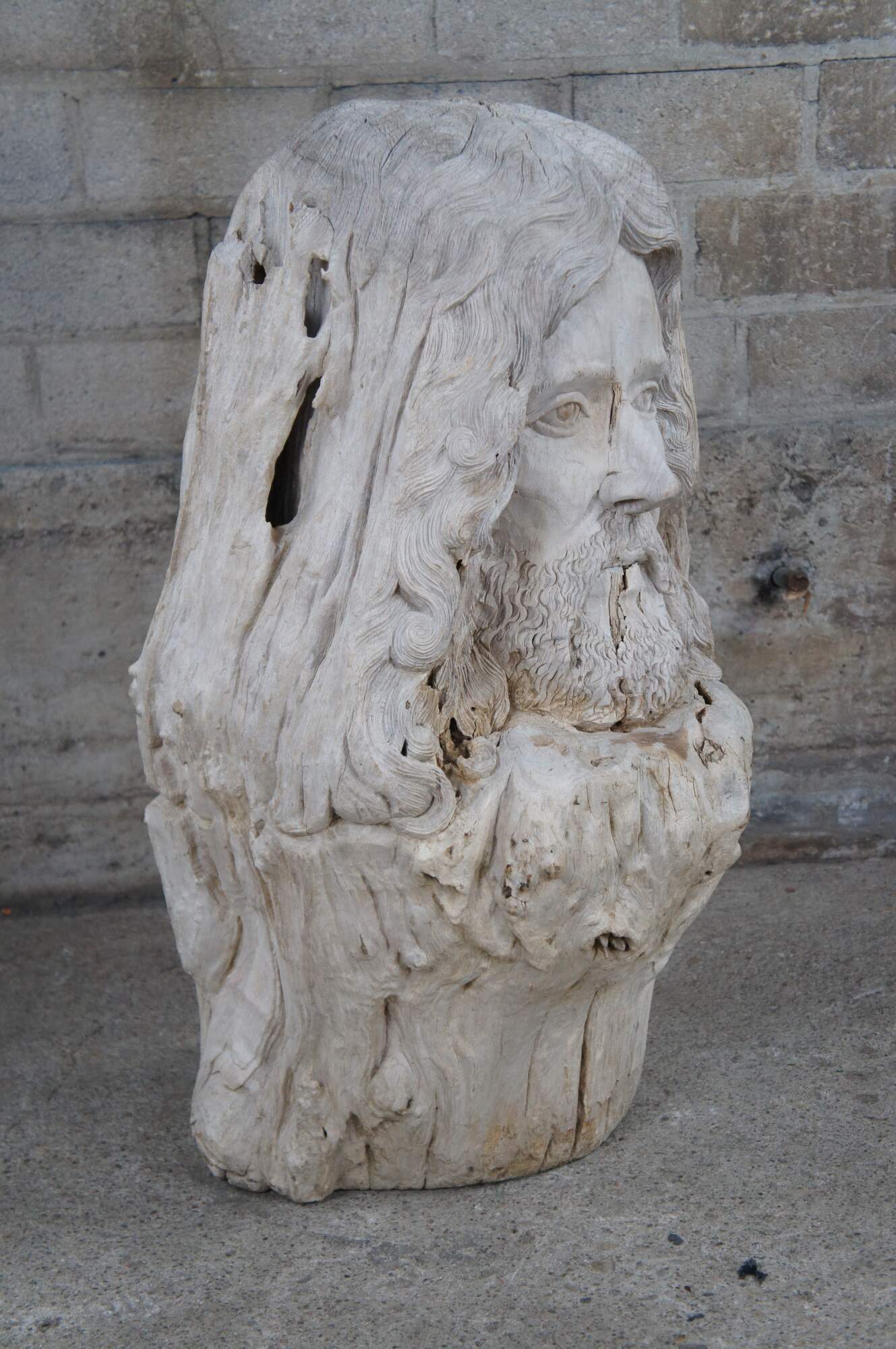 A large driftwood carving of Zues. Handcarved with natural detail from a very heavy piece of driftwood.