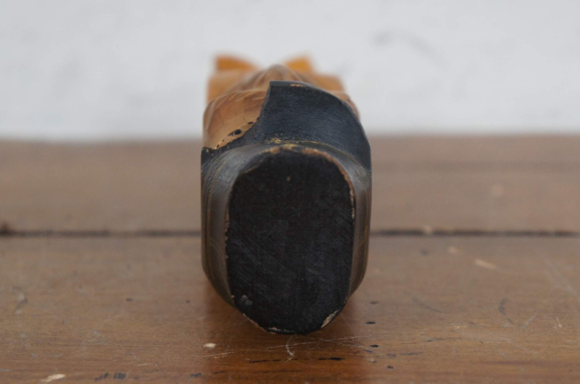 Antique Erik Molin (Swedish 1855-1933) hand carved birch nut cracker (Nötknäckare). Depicts an elderly man with moustache and monacle / eyepatch, wearing a double breasted coat and military style cap. The base of his torso terminates in a fish tail.