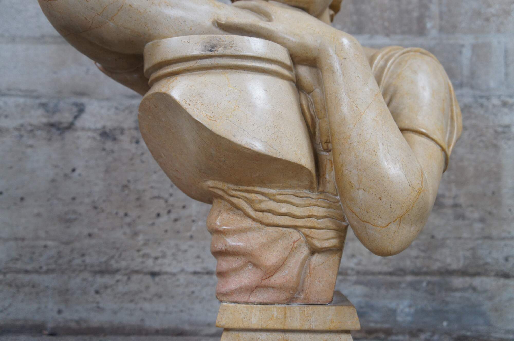 The sculpture is executed in a beautiful beige marble showvasing Rebekah with her arms over an Amphora. Unsigned. Circa second half 20th century.