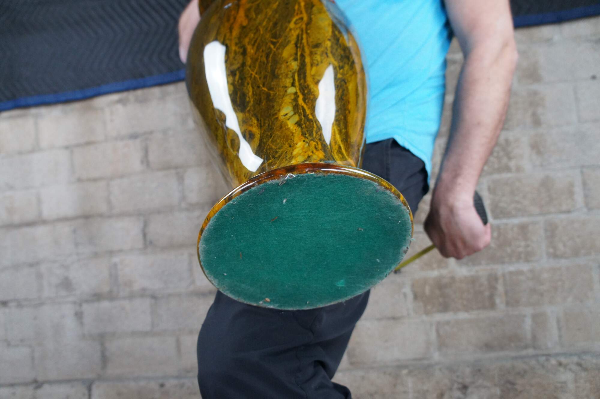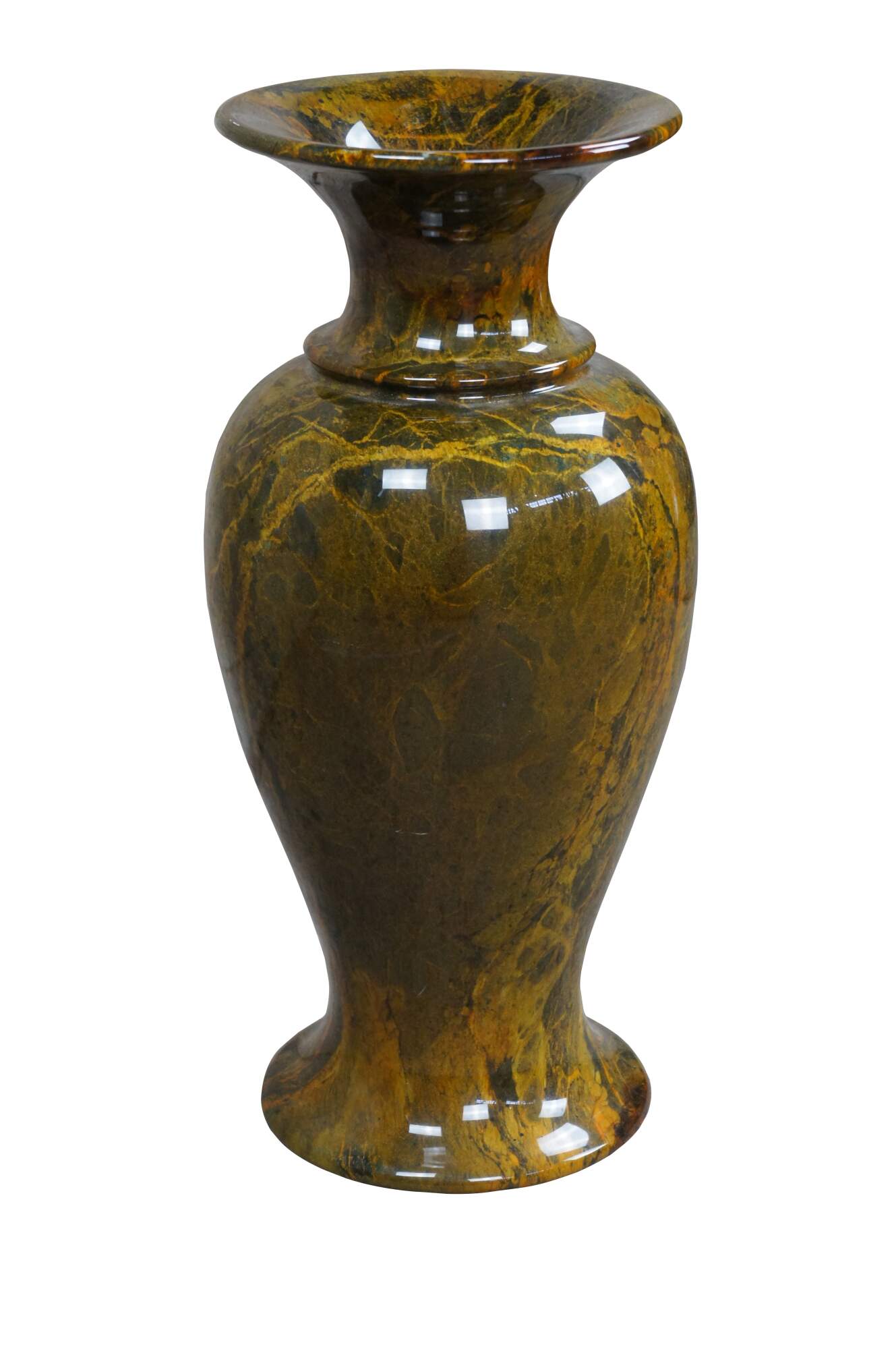 Large 20th century Neoclassical jade mable vase. Features a greenish yellow tone with beautiful color and patina.