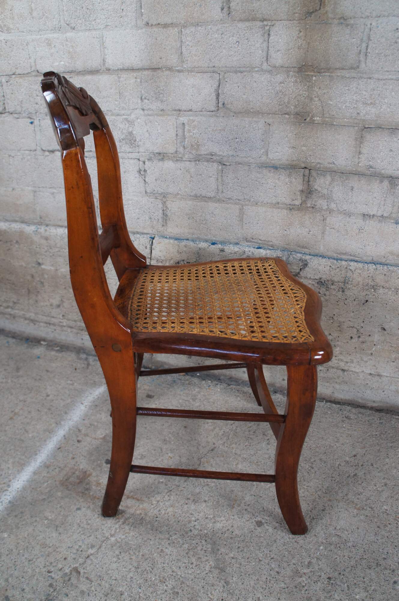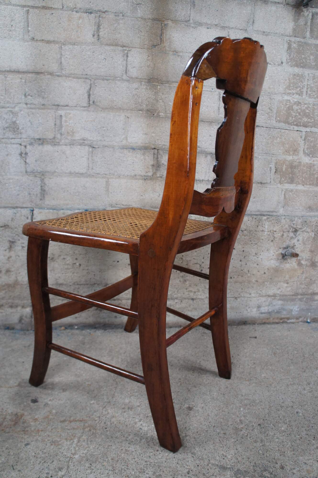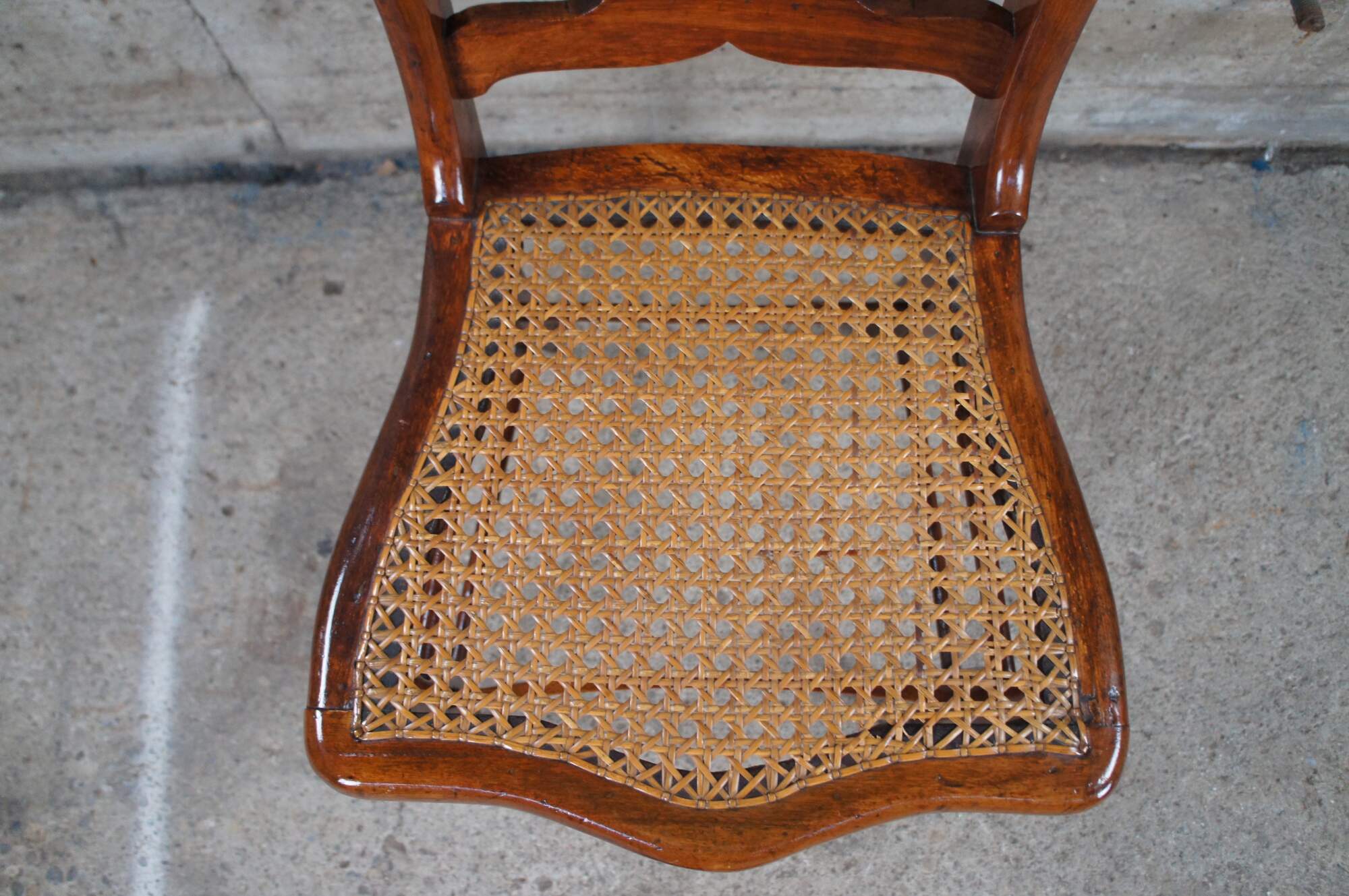 Antique Victorian 19th Century dining side or desk chair. Made of walnut feautring slat back with carved accents and caned seat.