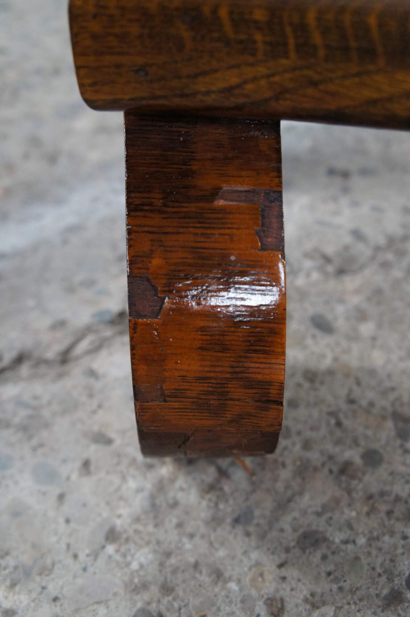 Fair antique condition, wear and distressing commensurate with age and use, missing trim, missing veneer, scuffing, finish loss, splitting.