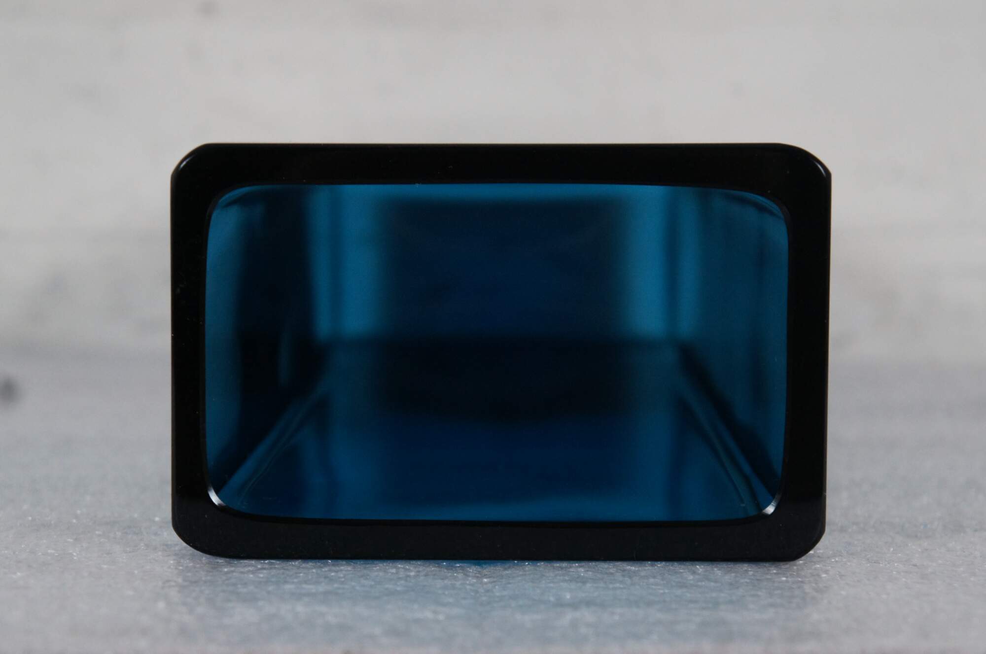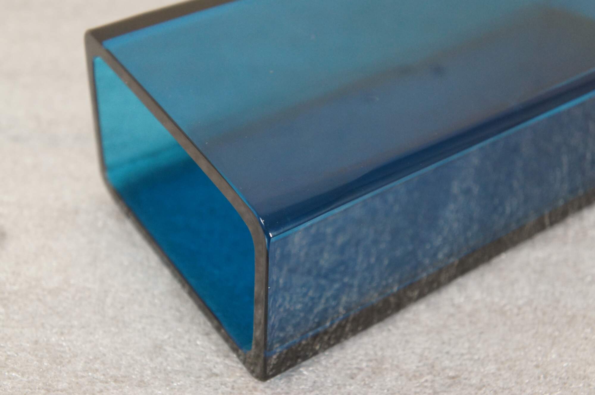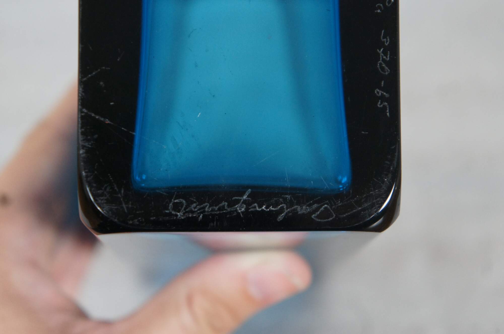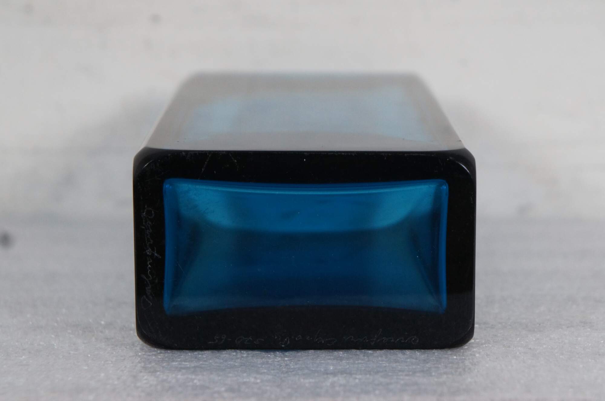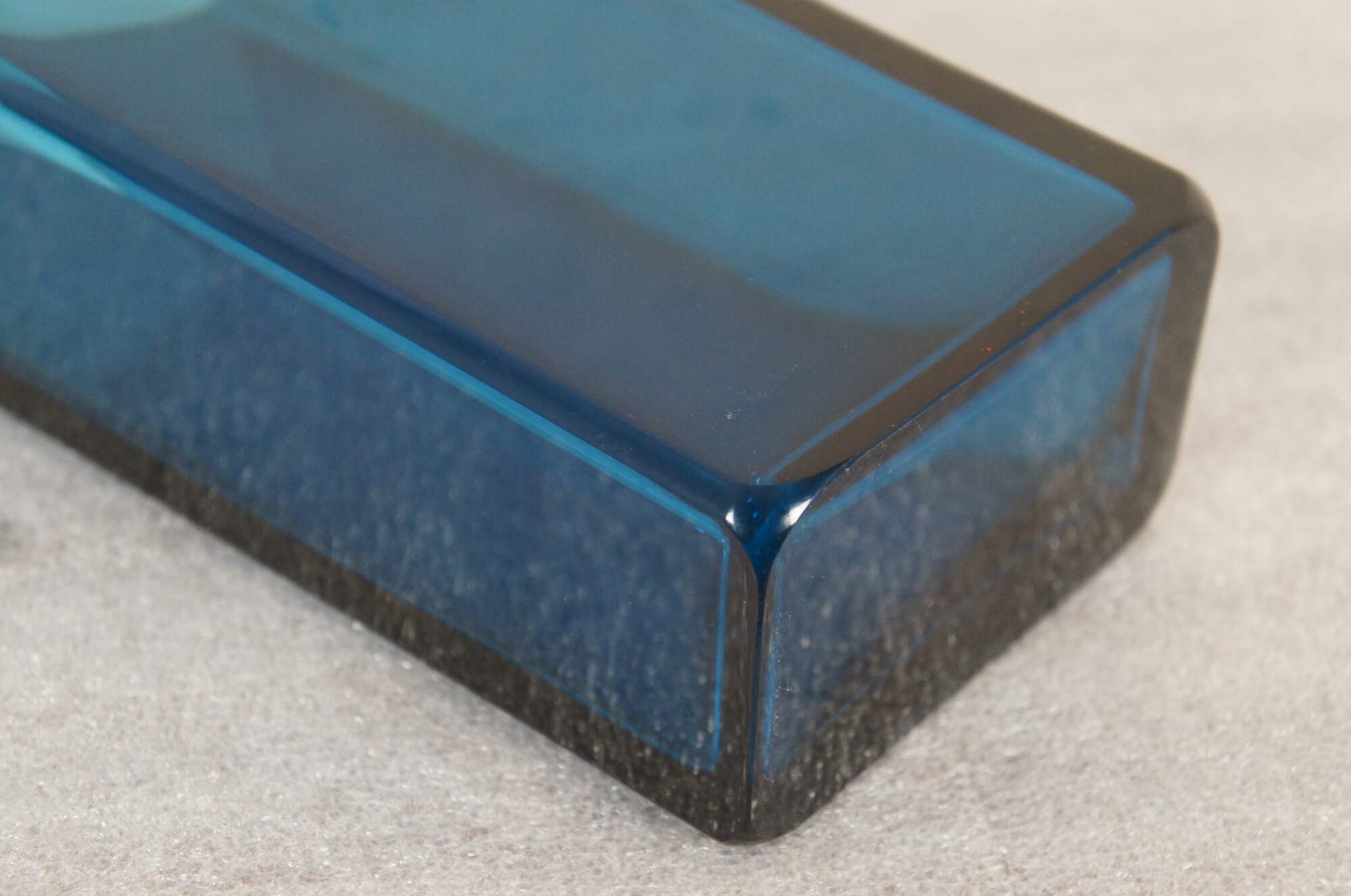 Rare mid century Sven Palmqvist for Orrefors Swedish cobalt blue rectangular glass bud vase or flower urn. Marked Orrefors Expo Pa 370-65 and signed Palmqvist on base. Circa 1965.