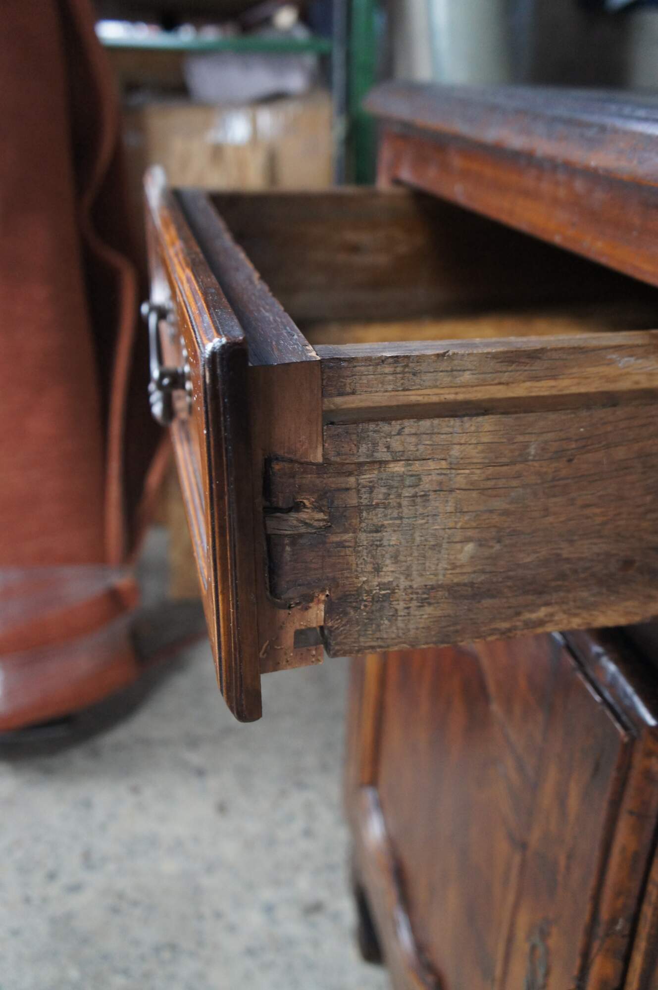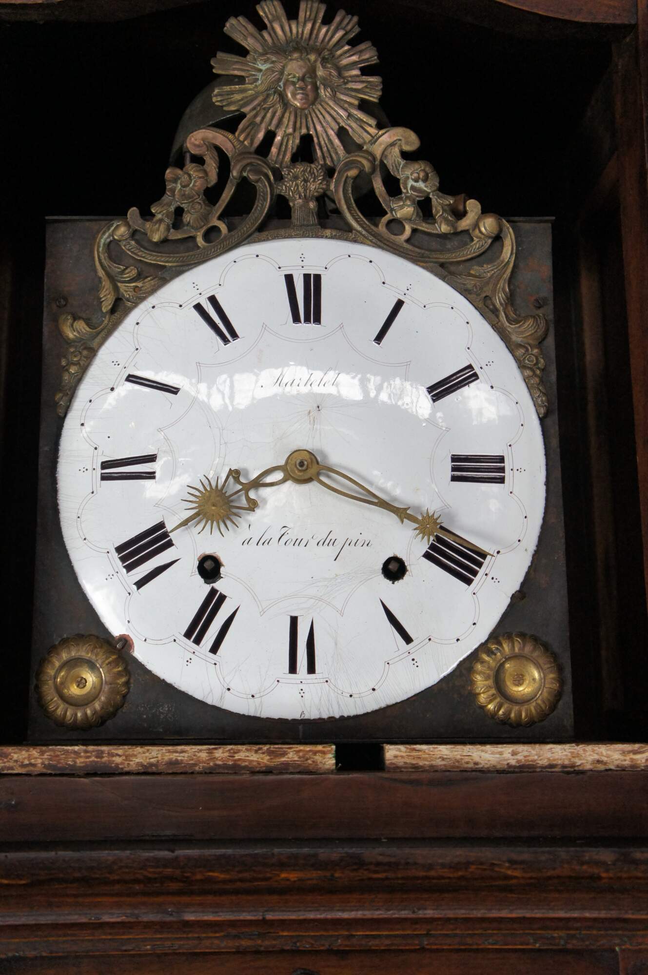 Fair antique condition, wear and distressing commensurate with age and use, splitting, marking, warping, past repairs, clock is working, assembly not included.