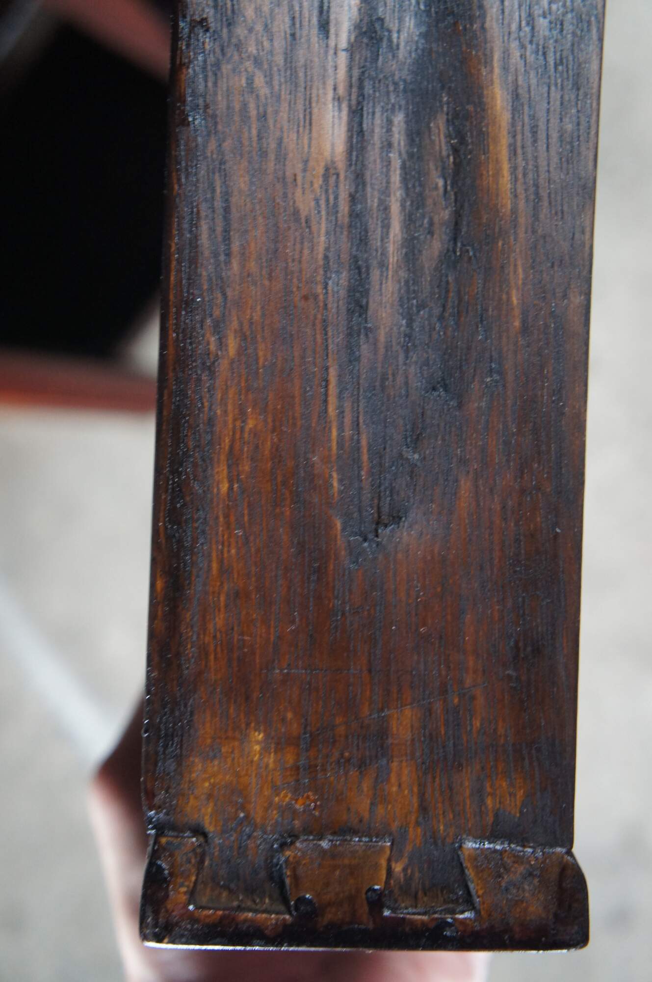 Good condition, wear and distressing commensurate with age and use, chipping to bottom of feet, no lock