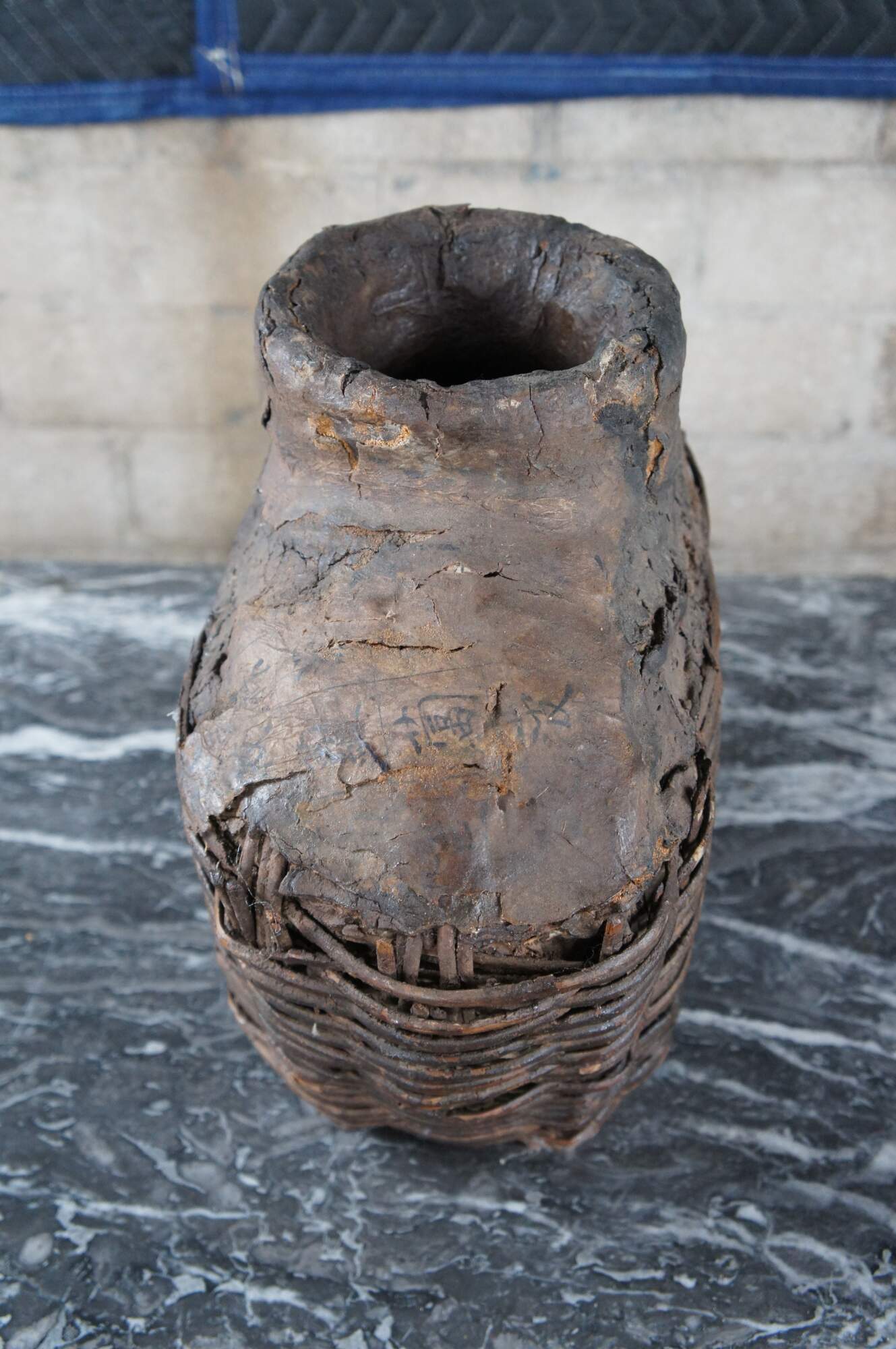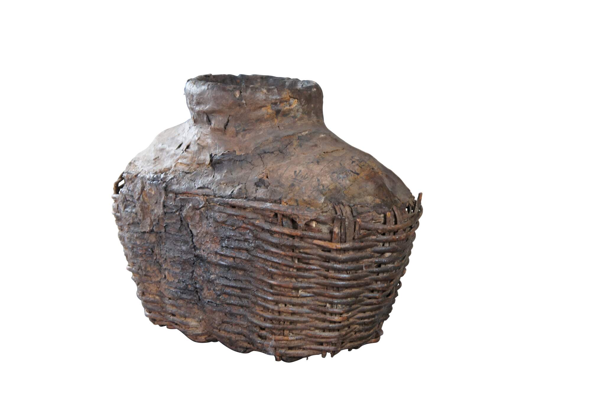 Early 20th Century Chinese Shanxi Willow Oil Container / Food Storage Vessel. Beautifully woven with natural patina from years of use. An unusual yet perfect decorative piece for display in a corner, on a bookcase or in a nook.