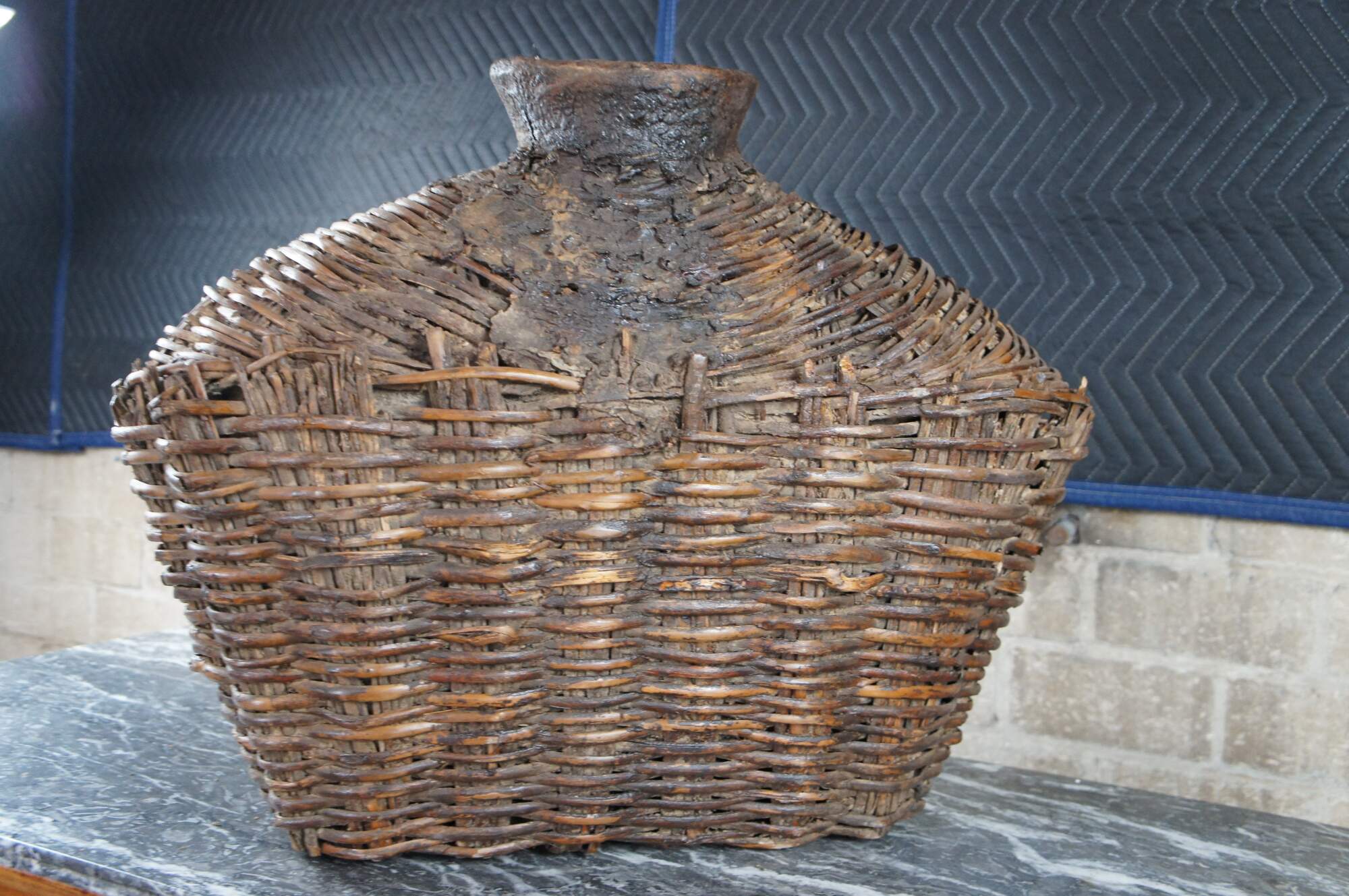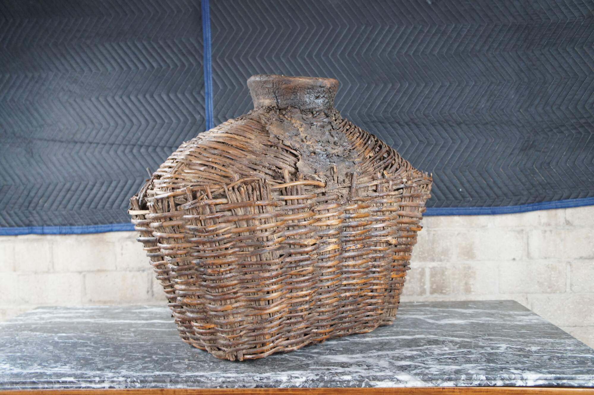 Early 20th Century Chinese Shanxi Willow Oil Container / Food Storage Vessel. Beautifully woven with natural patina from years of use. An unusual yet perfect decorative piece for display in a corner, on a bookcase or in a nook.