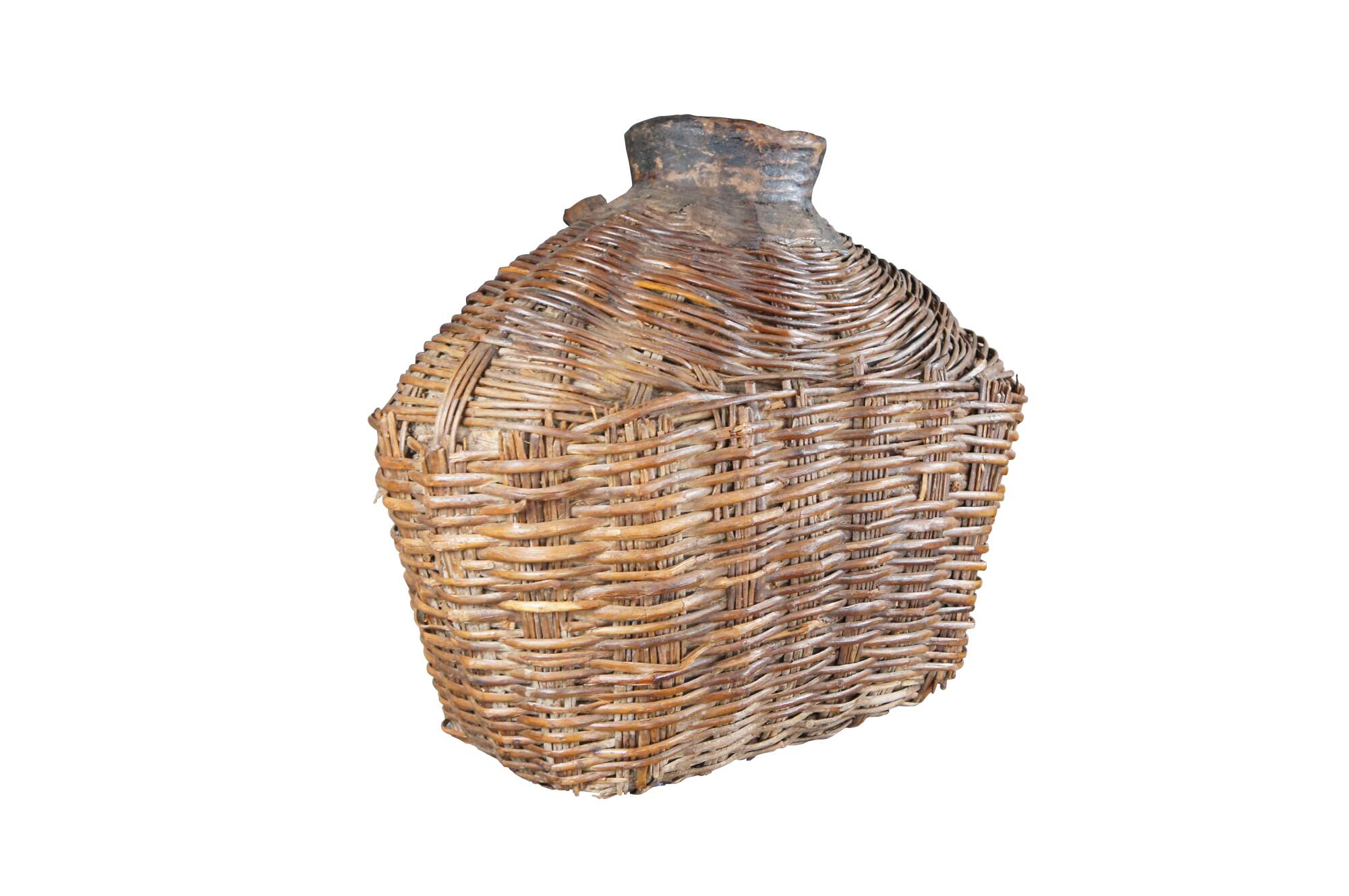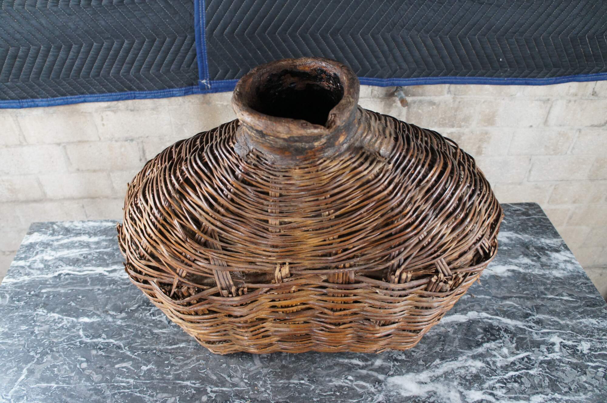 Early 20th Century Chinese Shanxi Willow Oil Container / Food Storage Vessel. Beautifully woven with natural patina from years of use. An unusual yet perfect decorative piece for display in a corner, on a bookcase or in a nook.