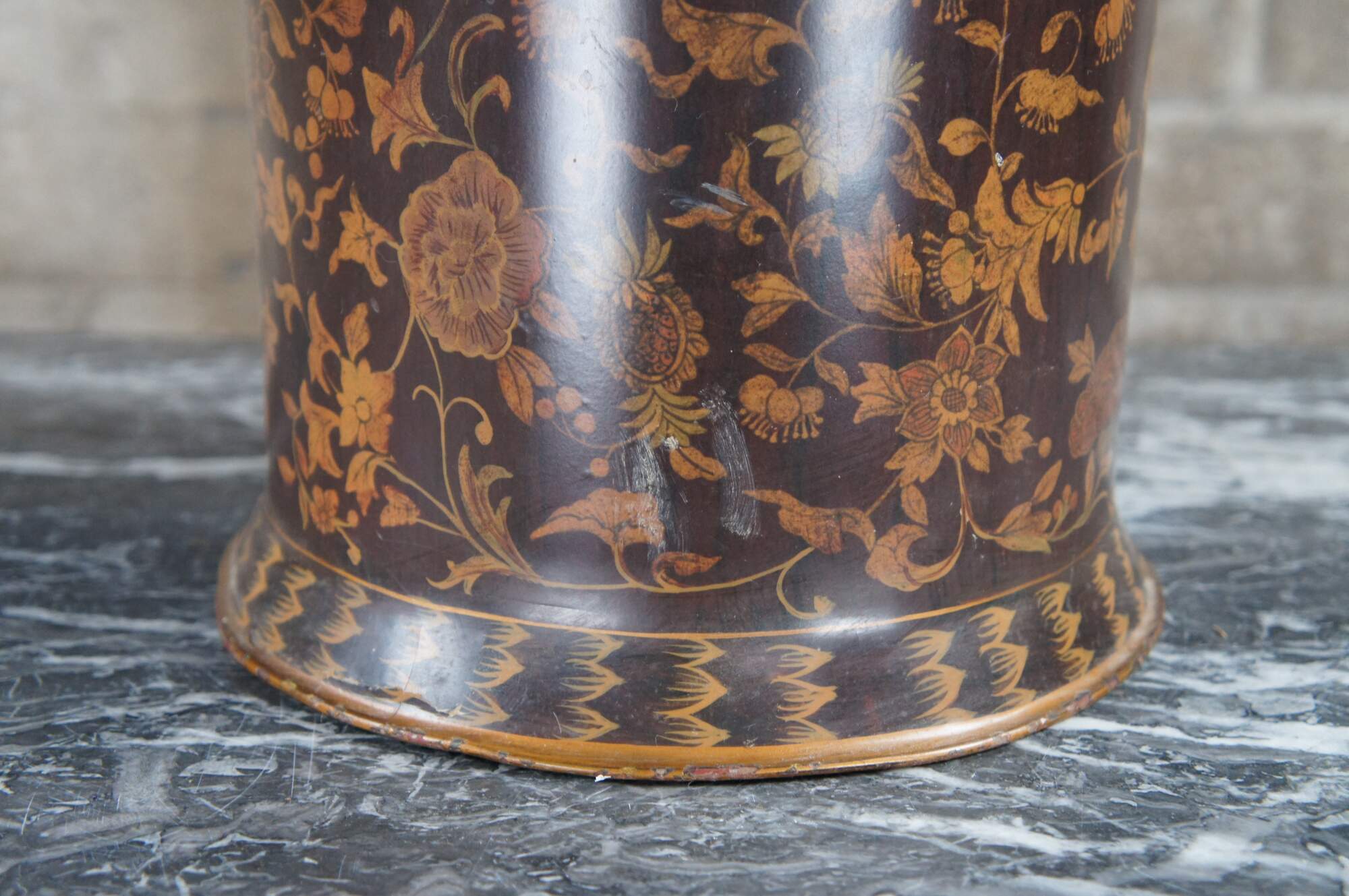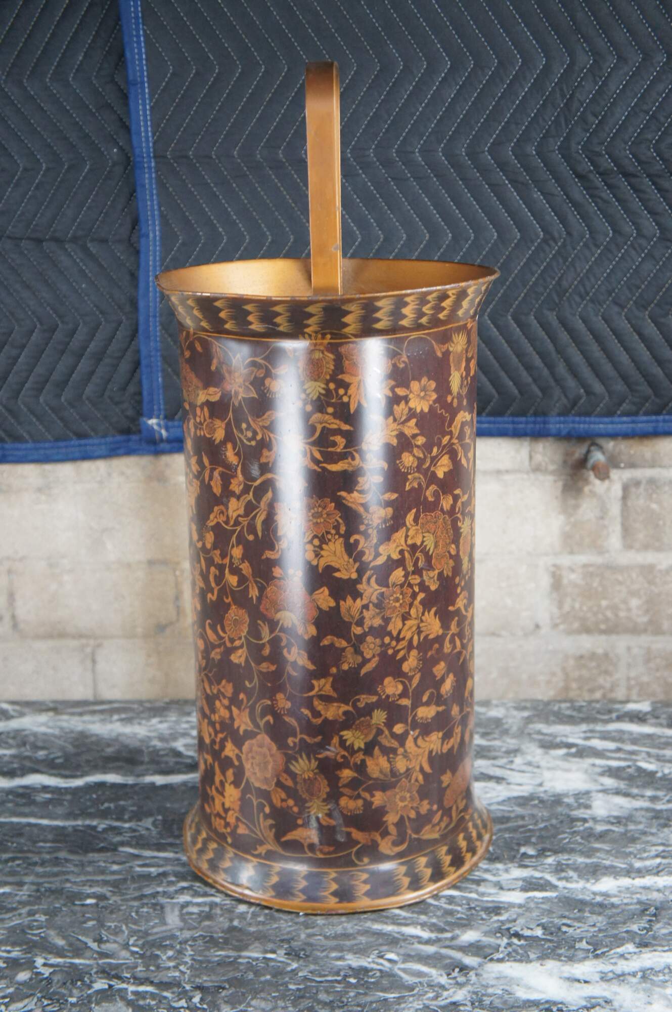 Vintage toleware handled umbrella / cane stand with a chrysanthemum floral pattern.