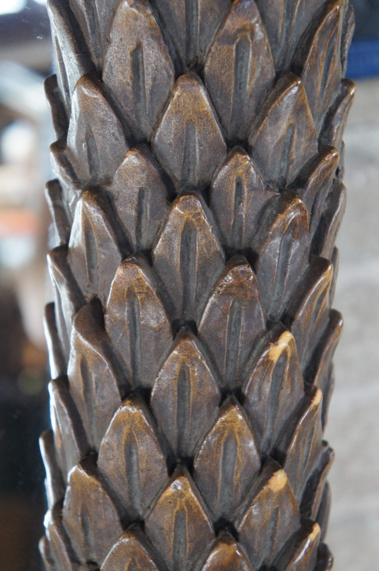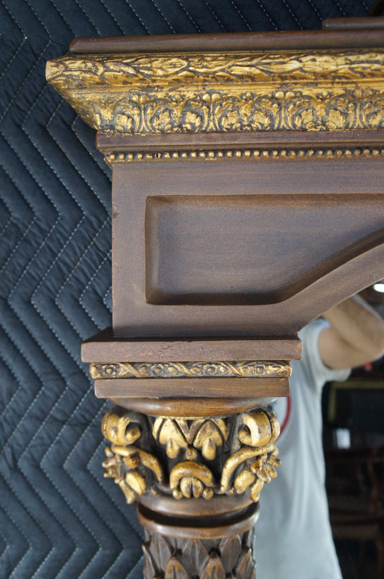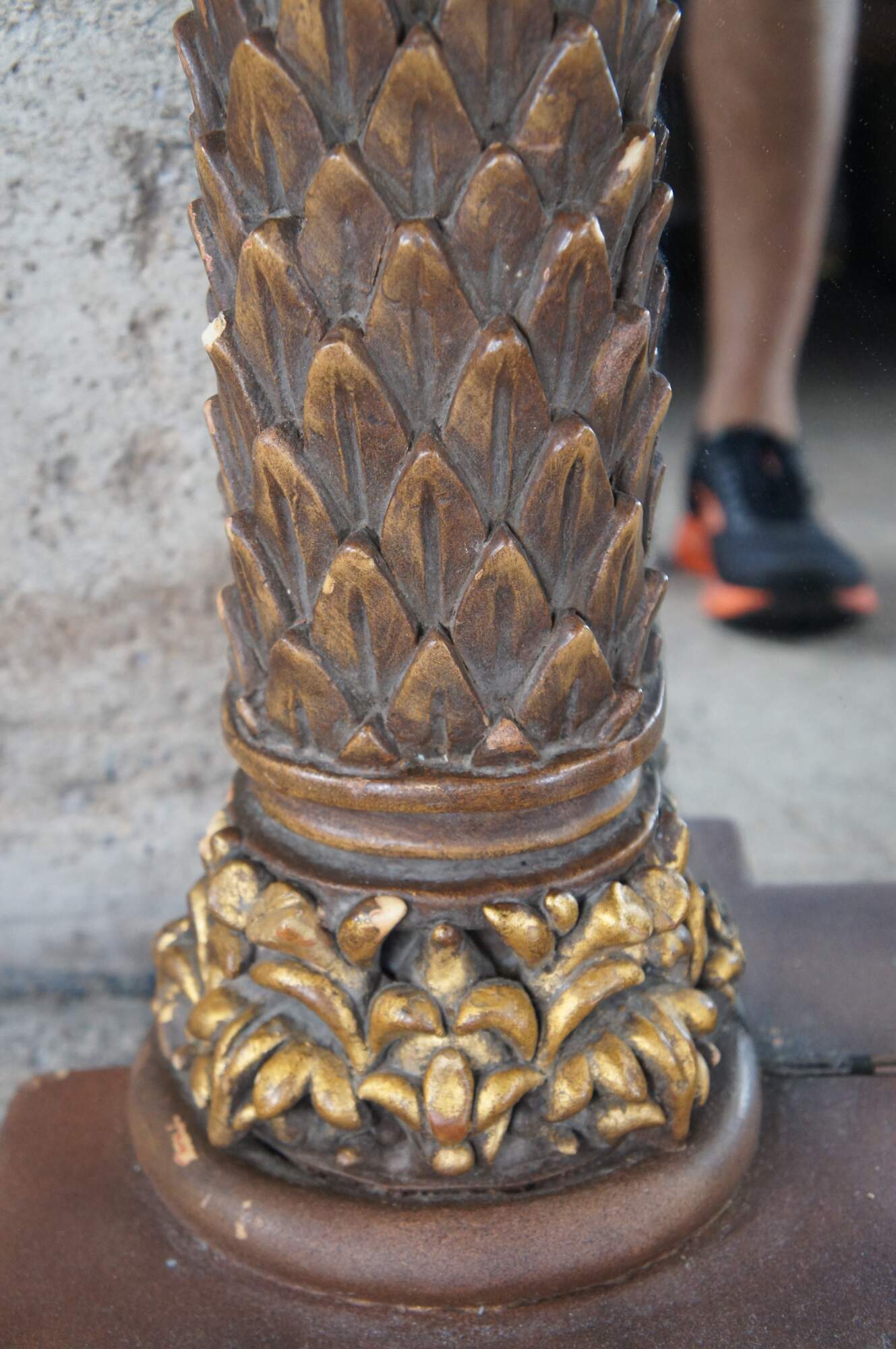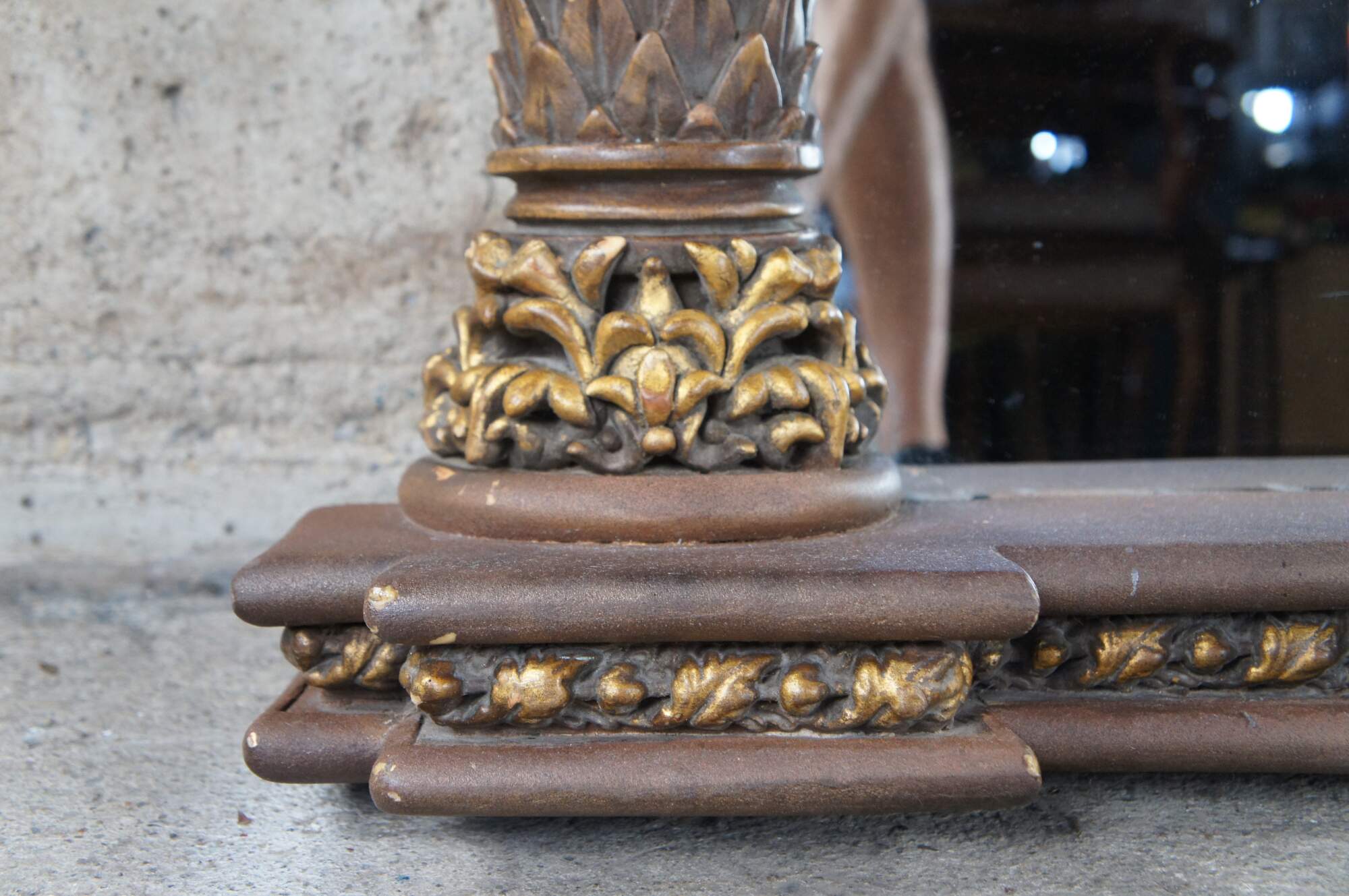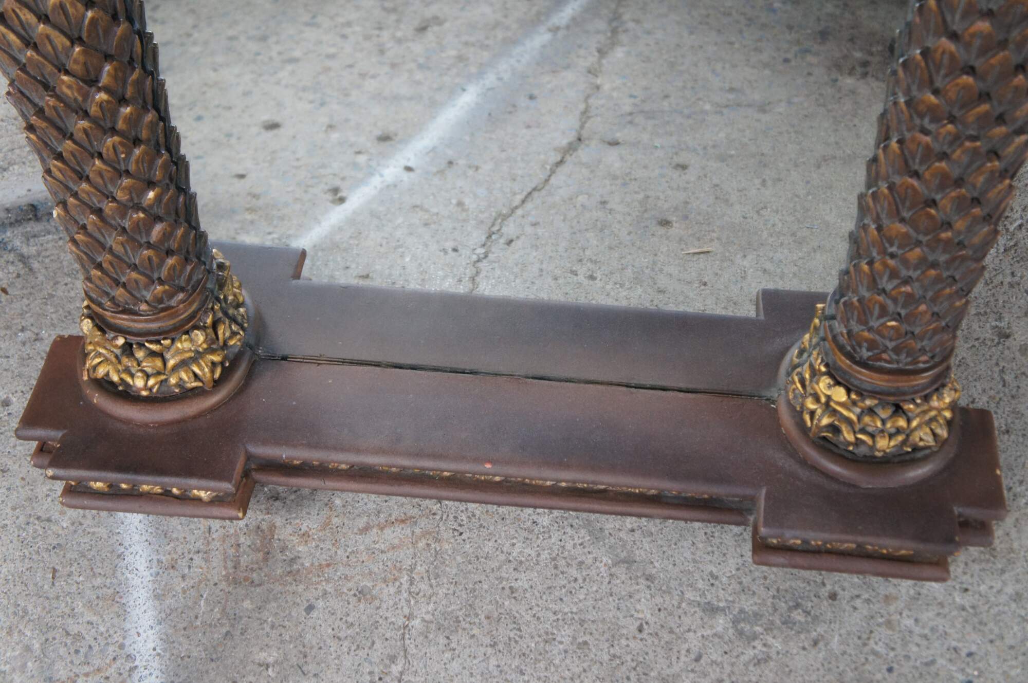 Good vintage condition, wear and distressing from age and use, scuffing, few missing trim piece tips on columns.