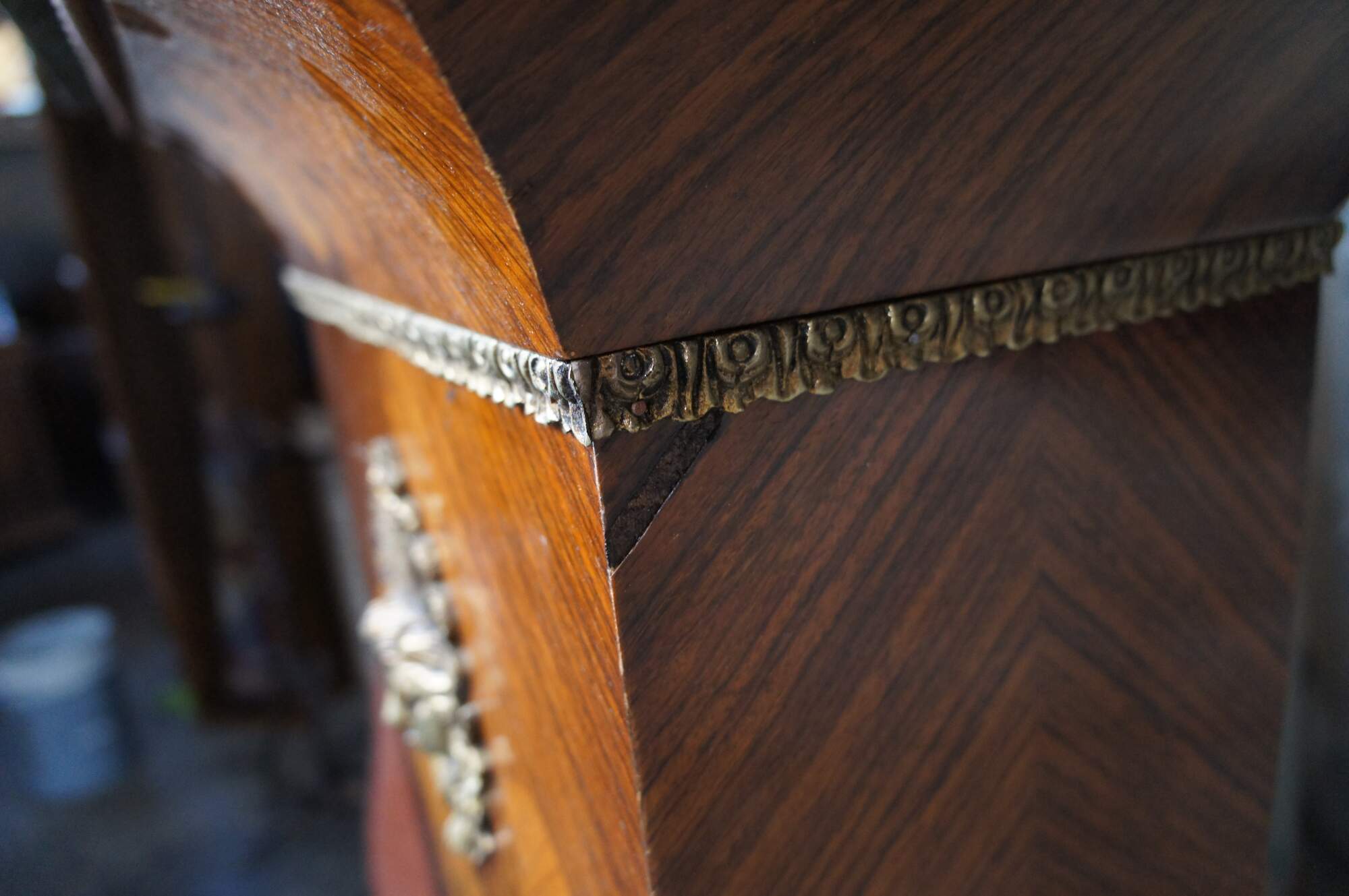 Good vintage condition, wear and distressing commensurate with age and use, marking / missing veneer, past repair to corner of one marble.