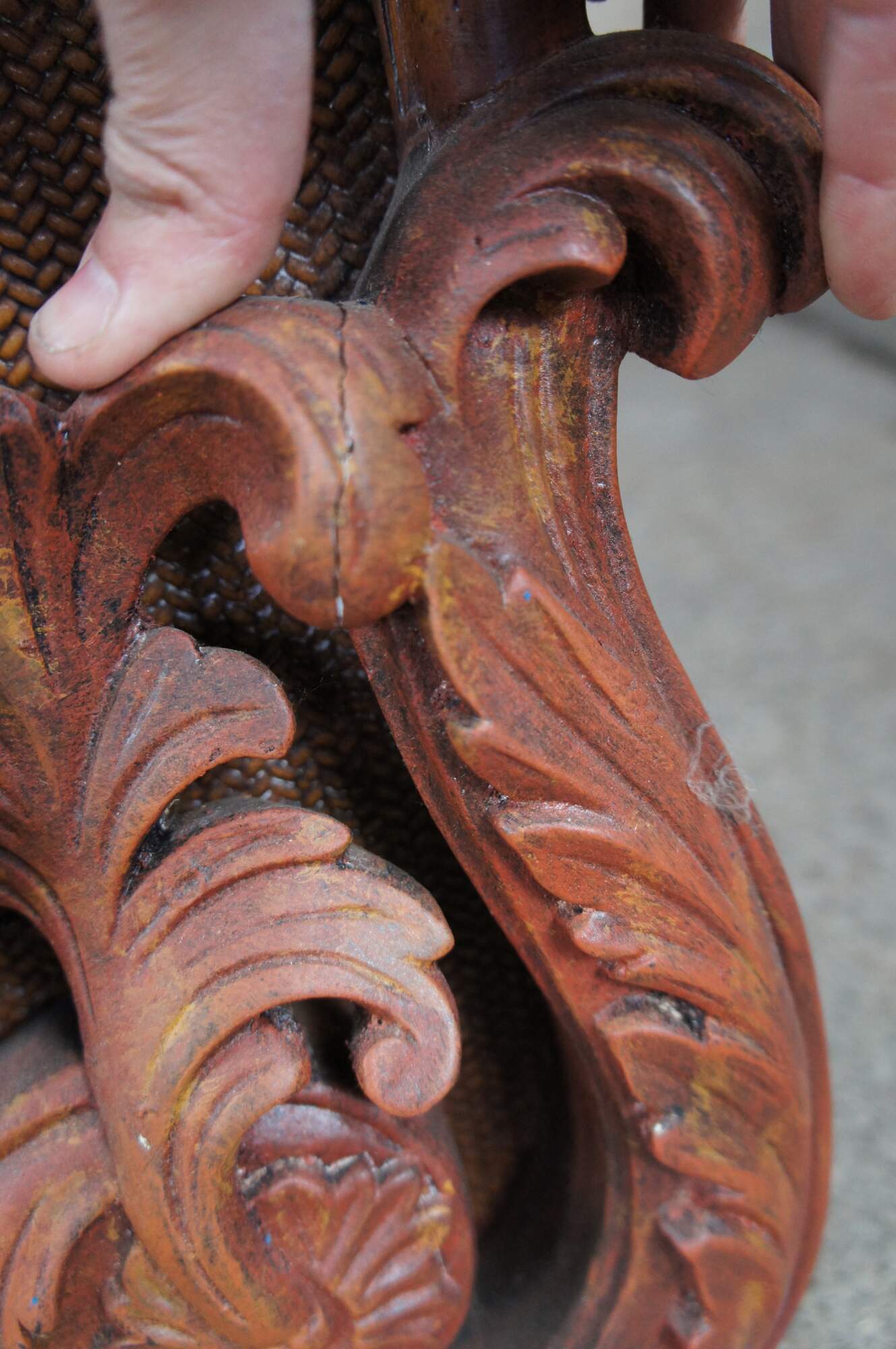 Very Good; Gently used, small split on lower right side of foliate motif
