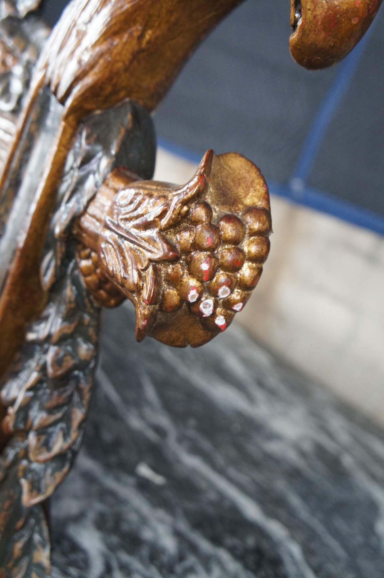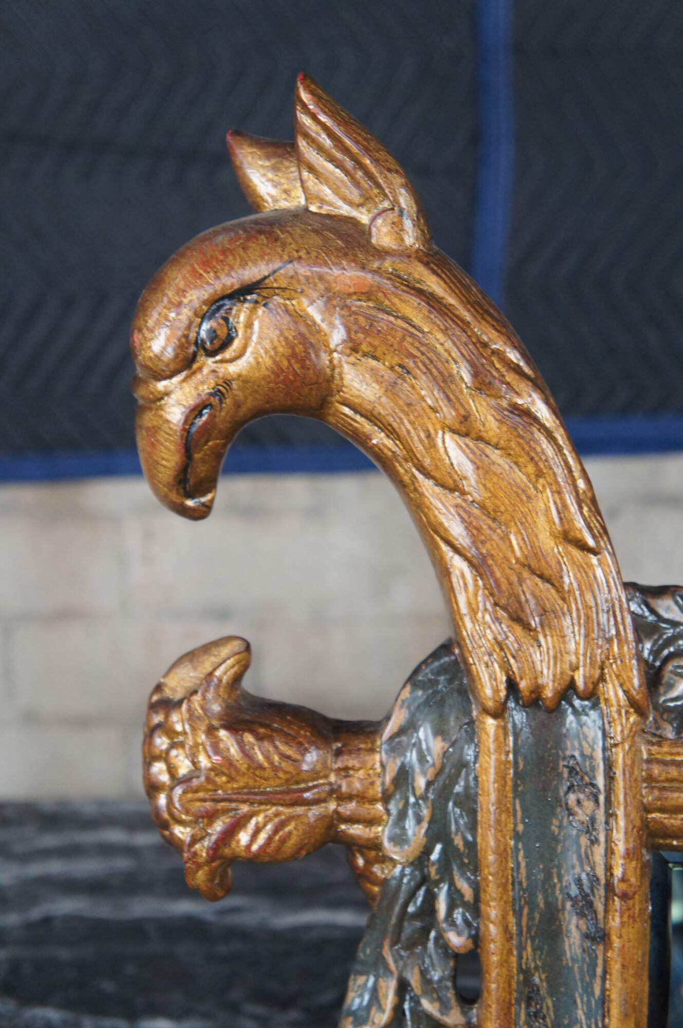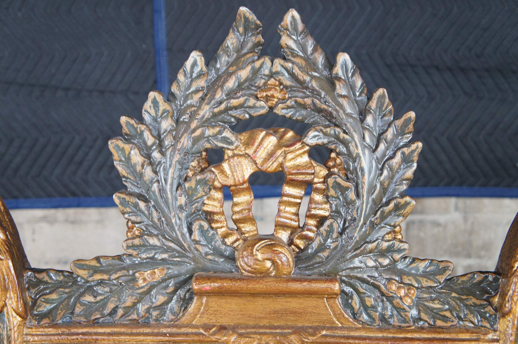 An elegant Louis XVI inspired wall hanging mirror by Alfonso Marina, circa late 20th century. Made from mahogany with ornate painted details. Features a lyre shape with ornate central wreath flanked by figural griffon heads. The body of the mirror showcases berry and acanthus motif. Exceptional design and craftmanship by world renowned furniture craftsman Alfonso Marina. Great for use as an over mantel, wall hanging or vanity mirror.