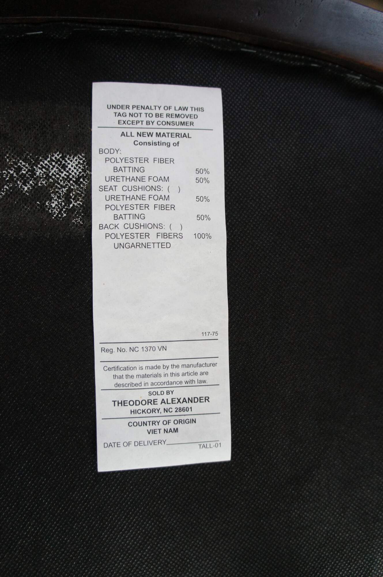 24"x 25.5" x 48.5"h, seat 30.5", arms 37.75"h