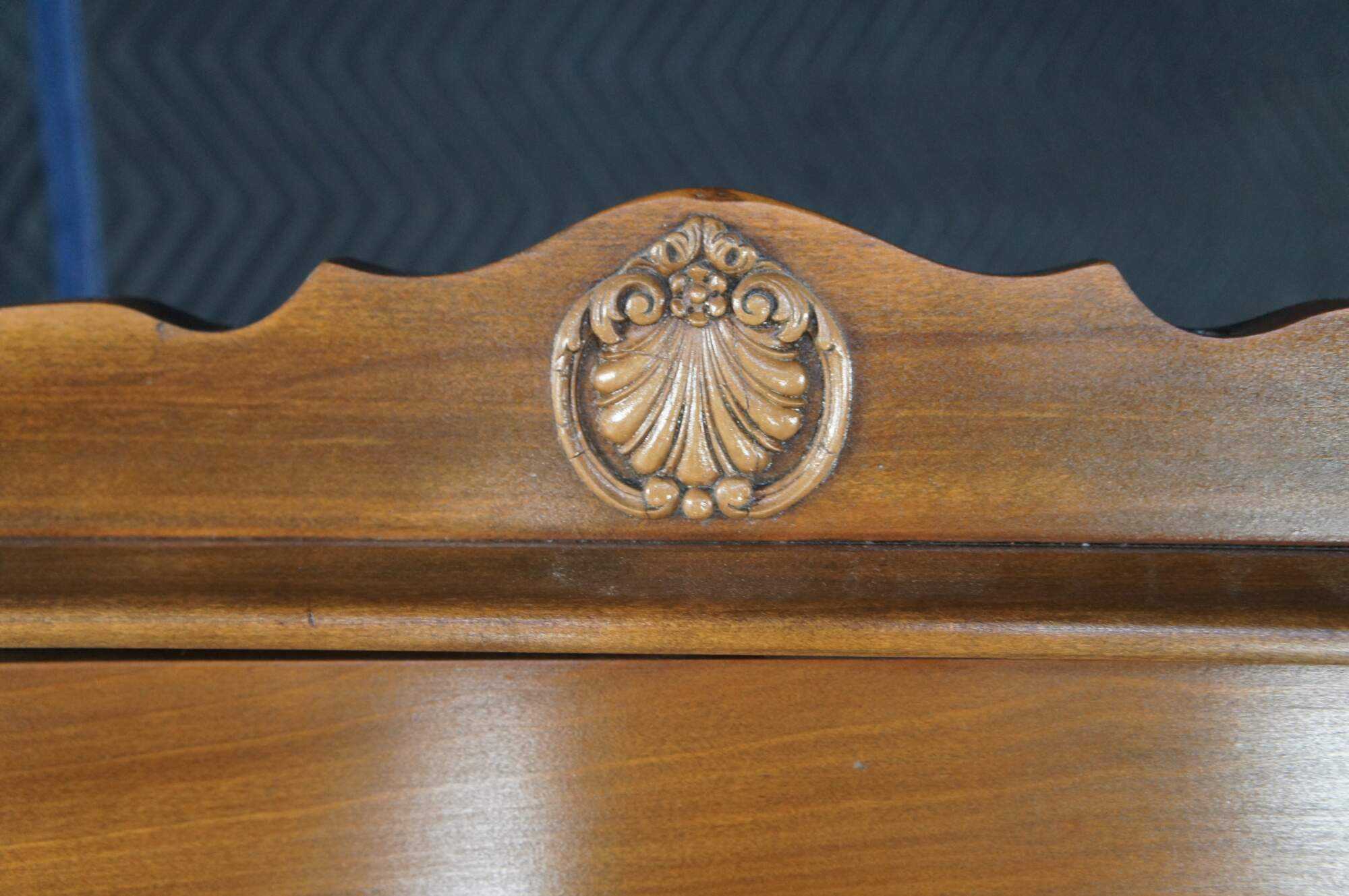 Antique Victorian china display hutch / bookcase / cupboard. Made of walnut featuring queen anne styling with shell design crown, serpentine fretwork door, oval panels. and cabriole legs with slipper feet.
