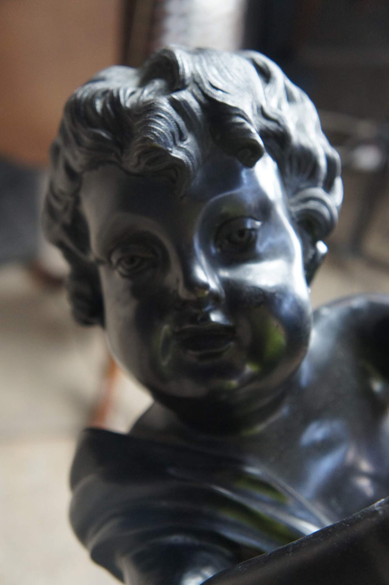 Good Condition; Patina / Corrosion from use and age. Missing Torchieres that originally went in their hands, Missing Embellishments