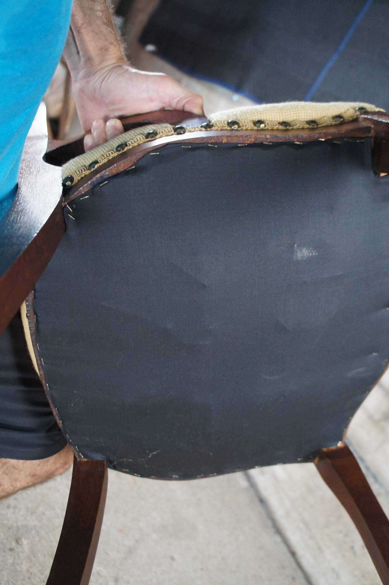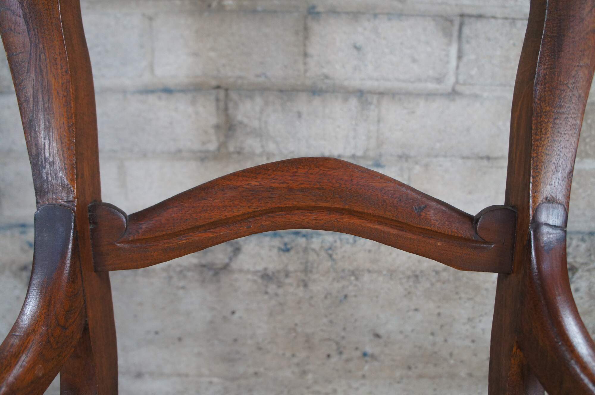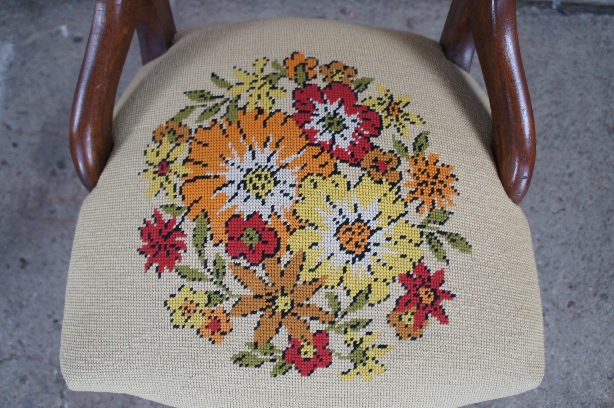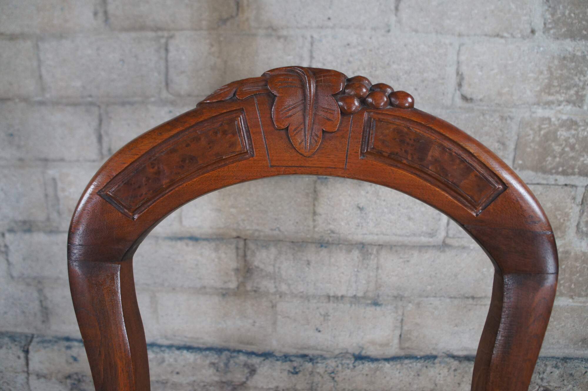 Antique Victorian parlor or dining chair. Made of walnut featuring a balloon back with leaf and berry crown and floral needlepoint seat with nailhead trim.