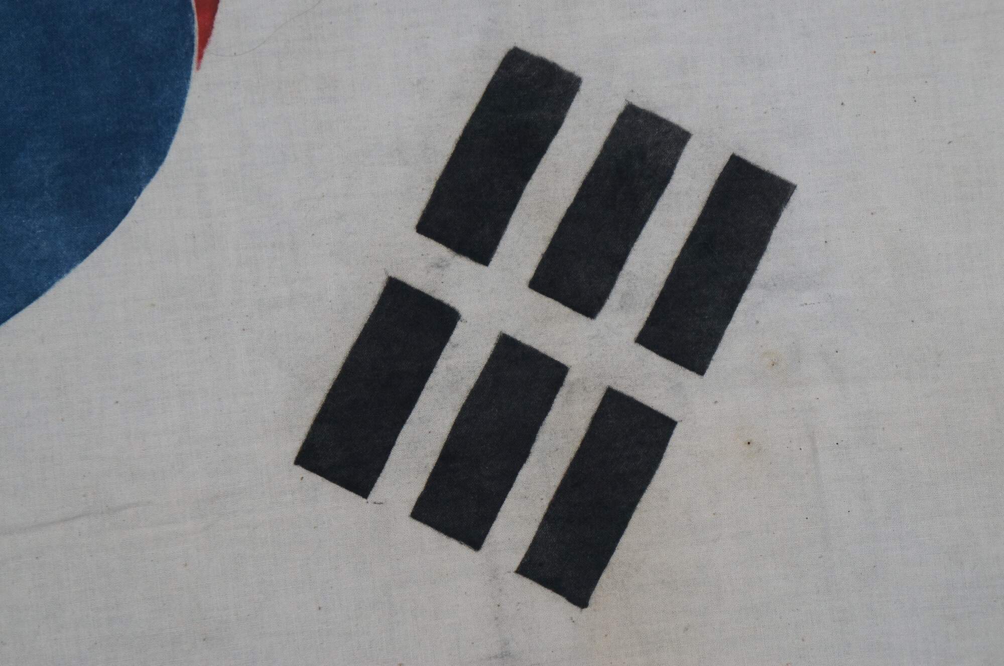 Rare original vintage South Korean / Korean War era flag, circa 1950's. White cotton with screen printed design.