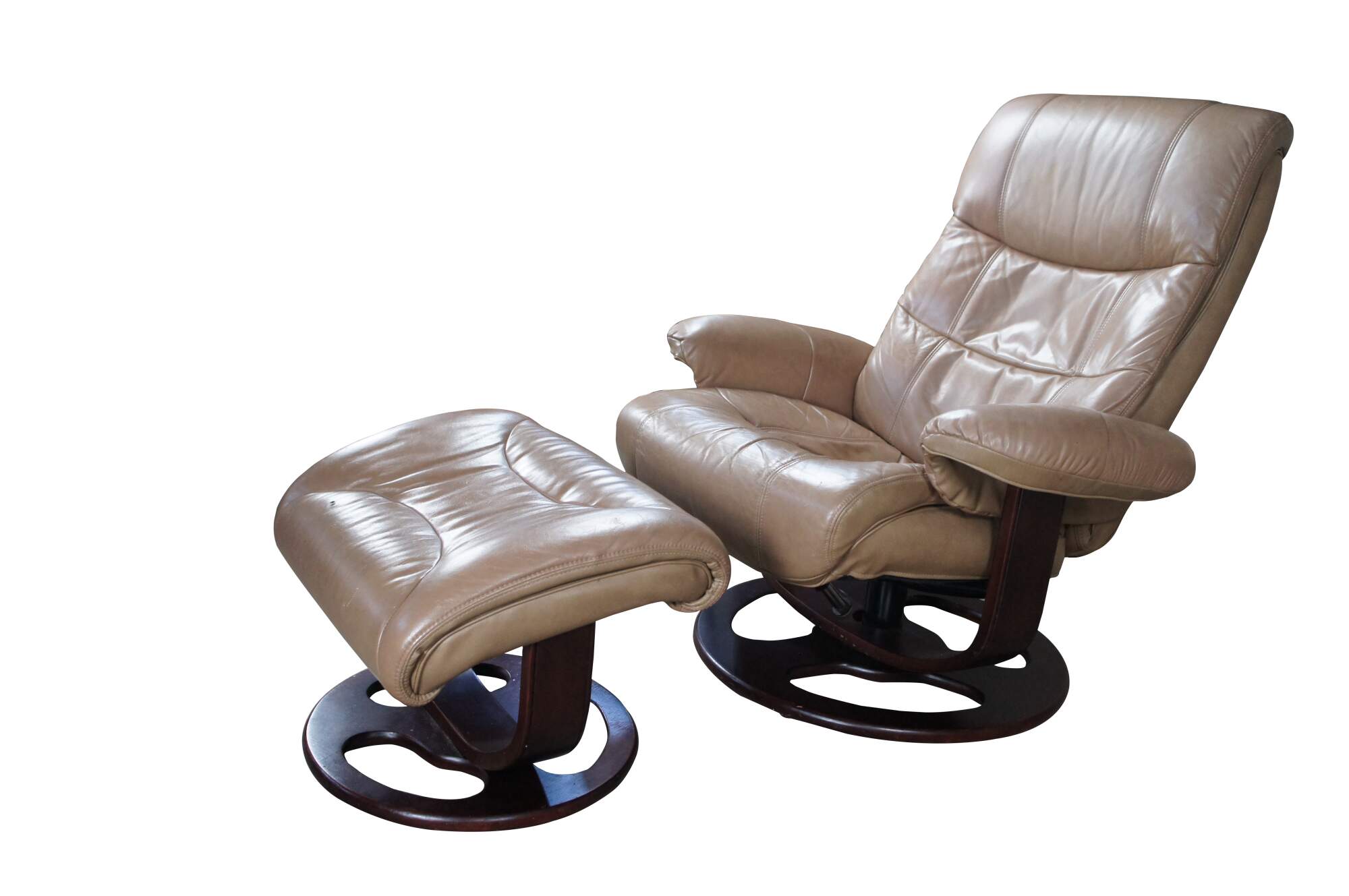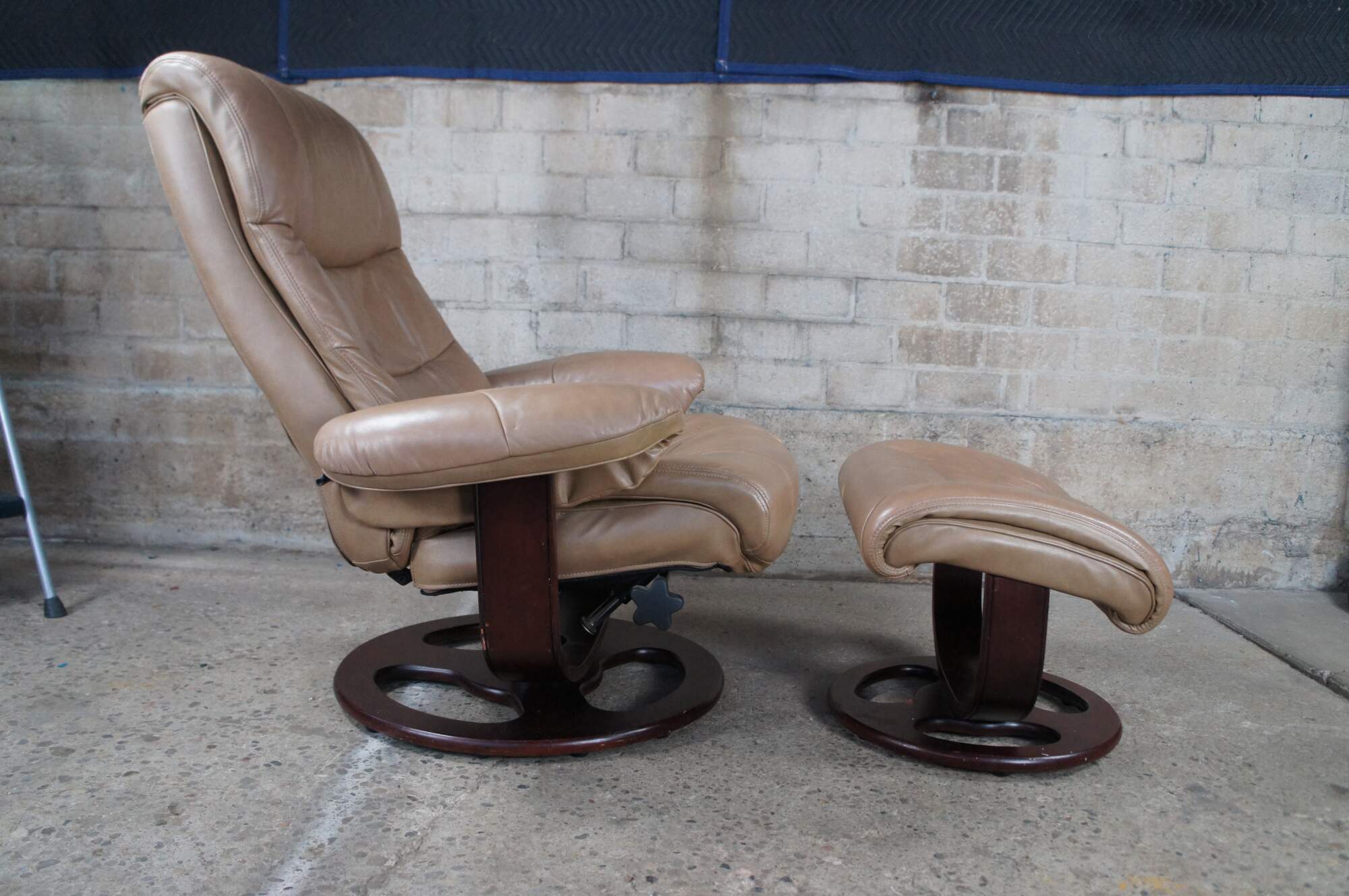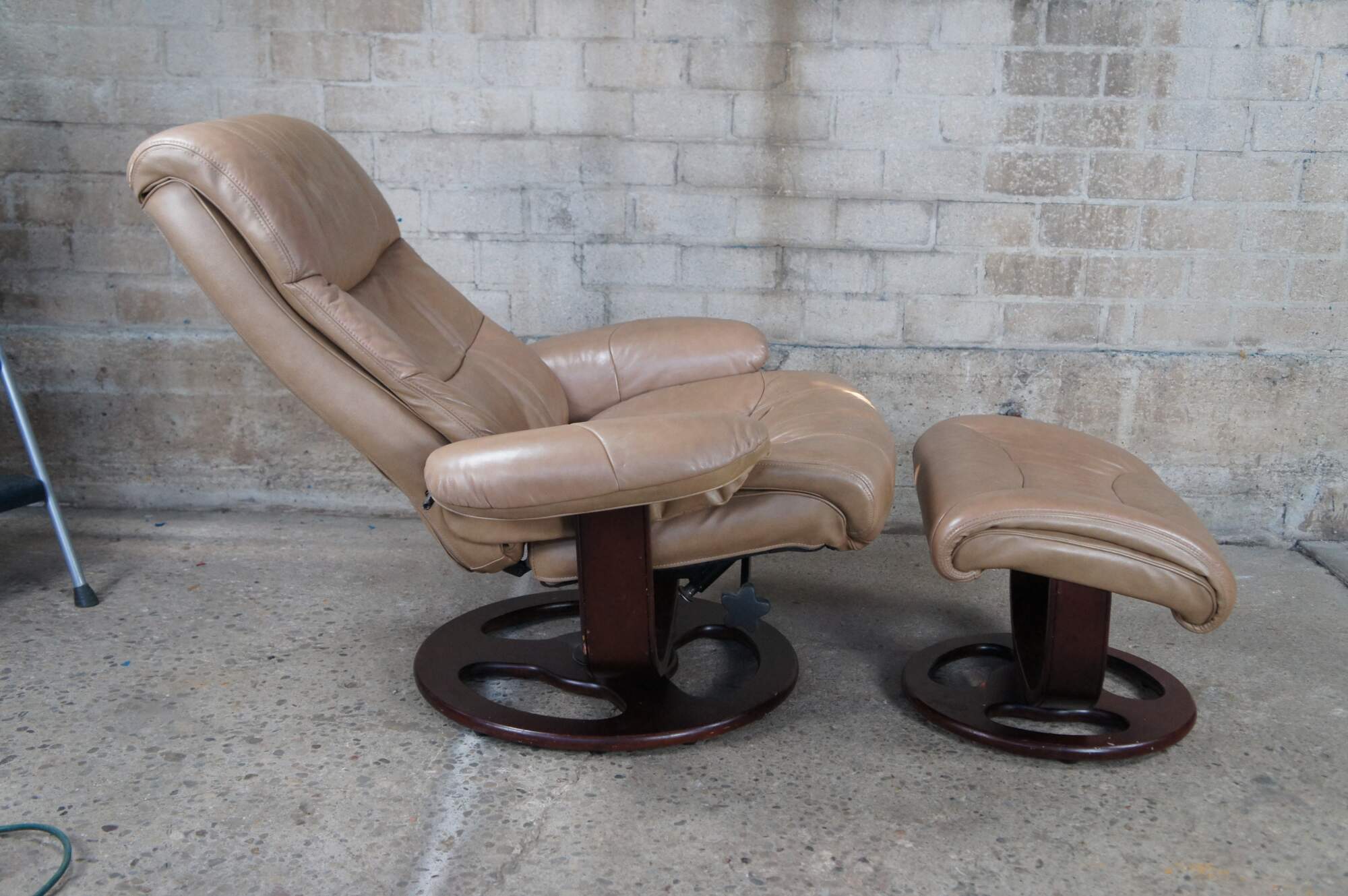 Vintage Lane Furniture stressless bonded leather reclining swivel armchair and ottoman.