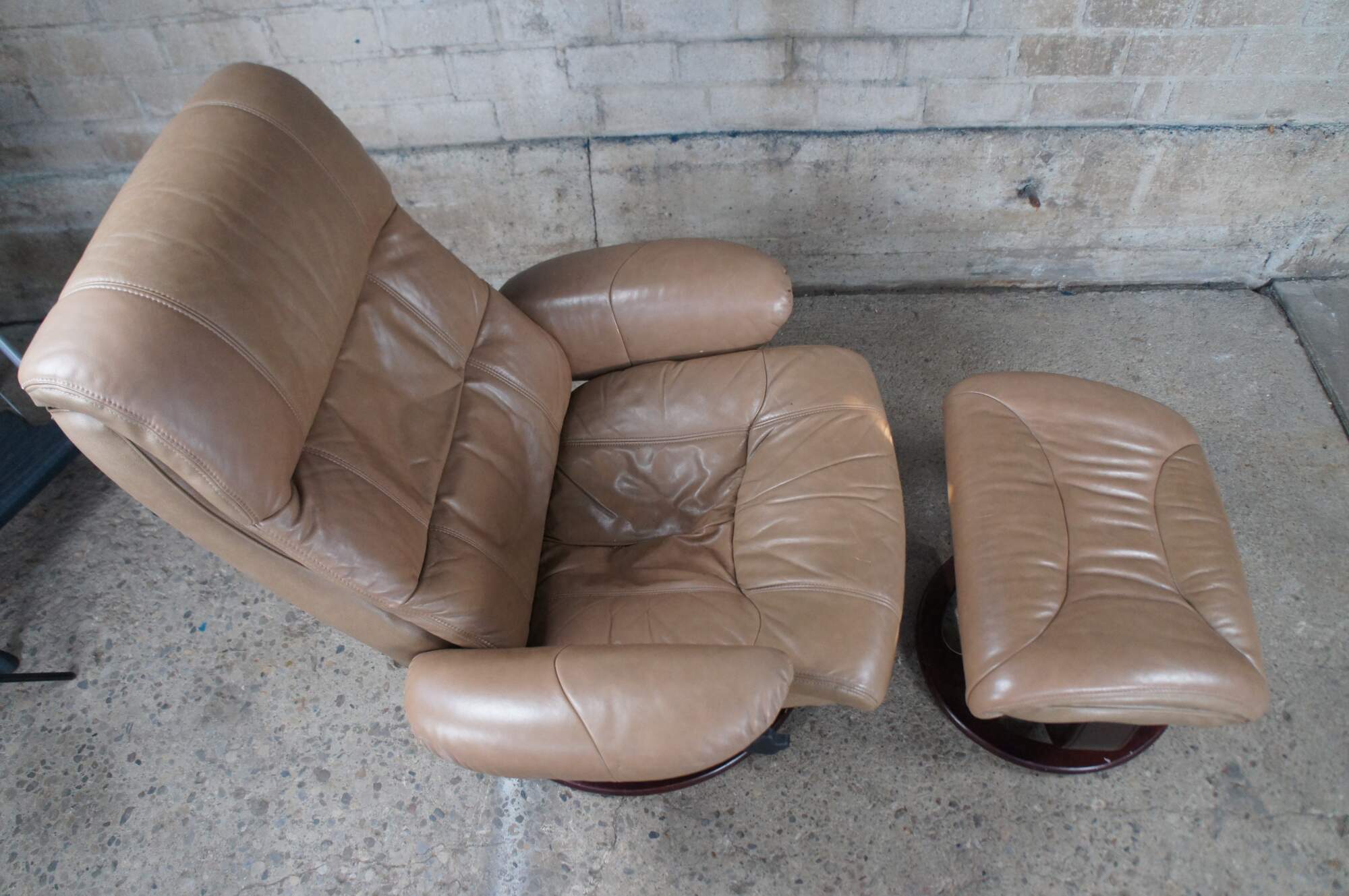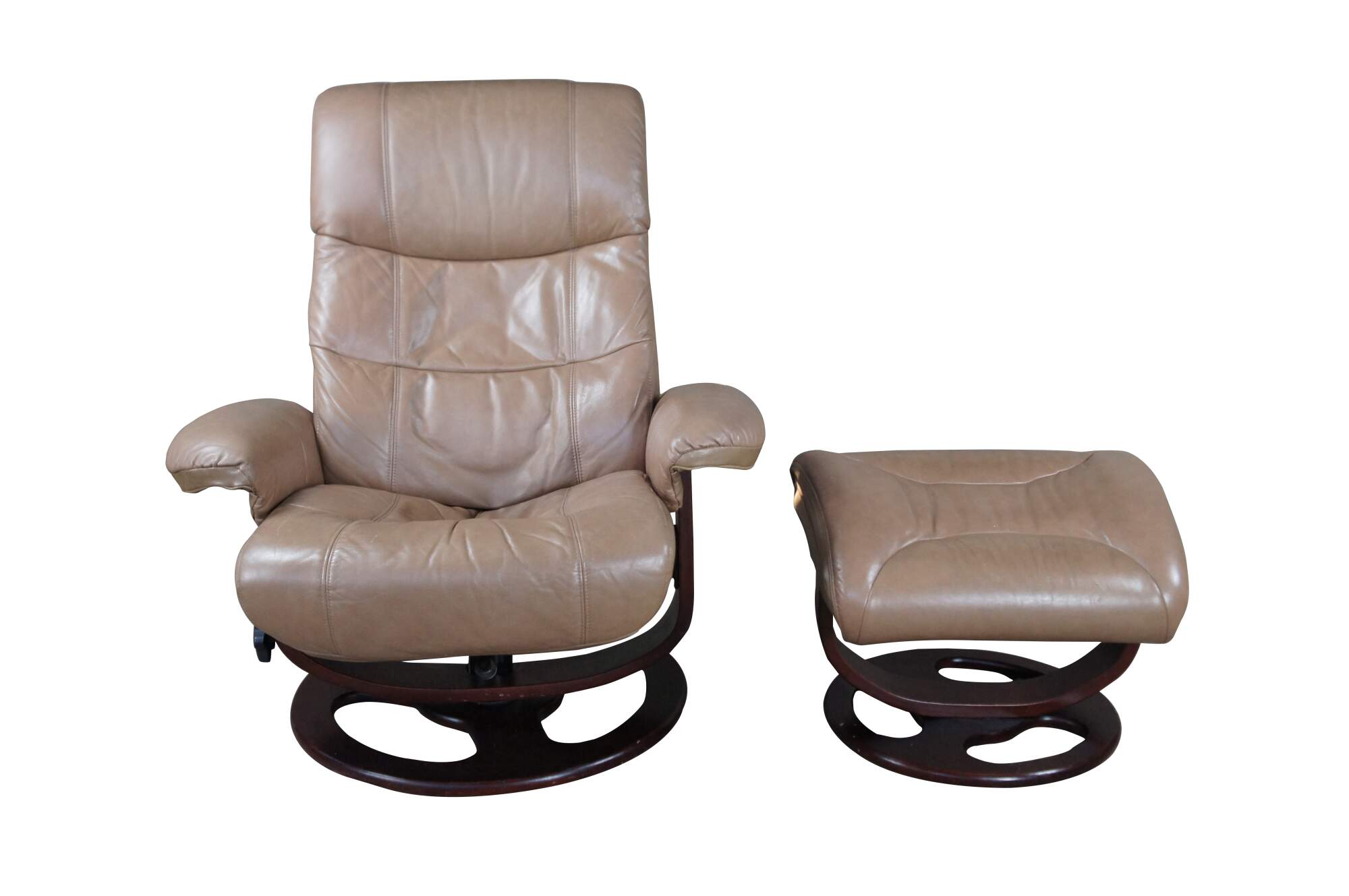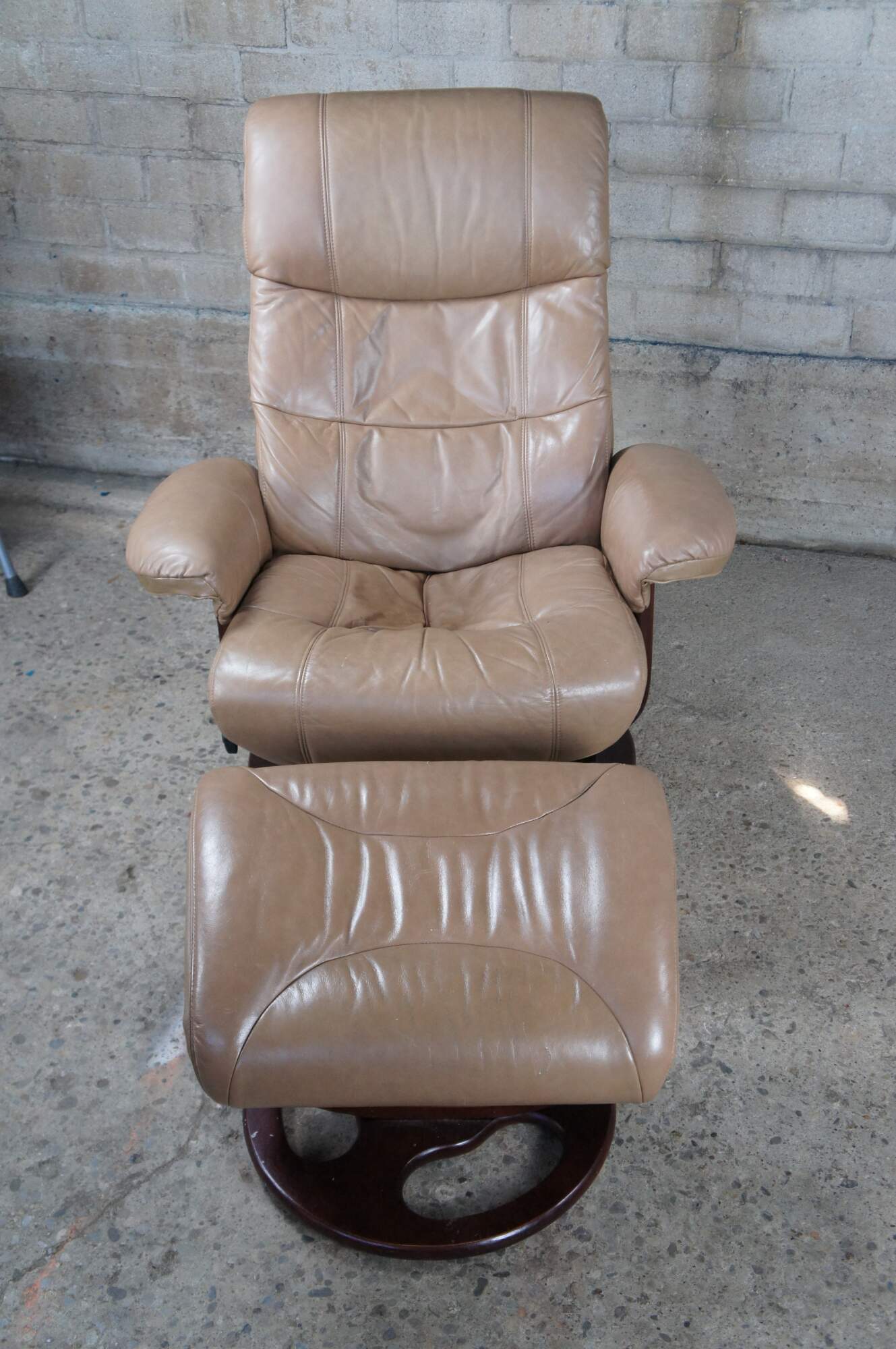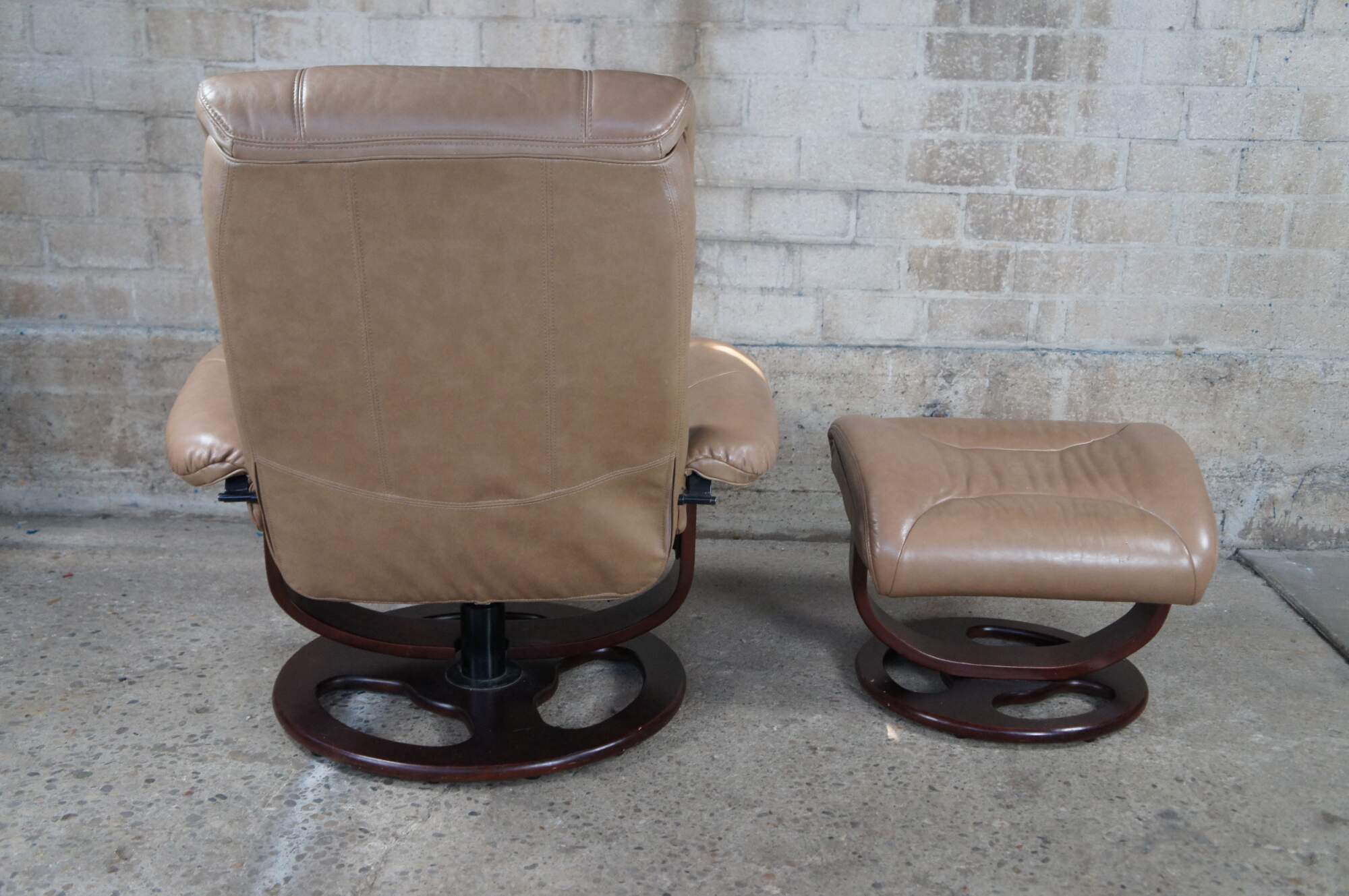 Vintage Lane Furniture stressless bonded leather reclining swivel armchair and ottoman.
