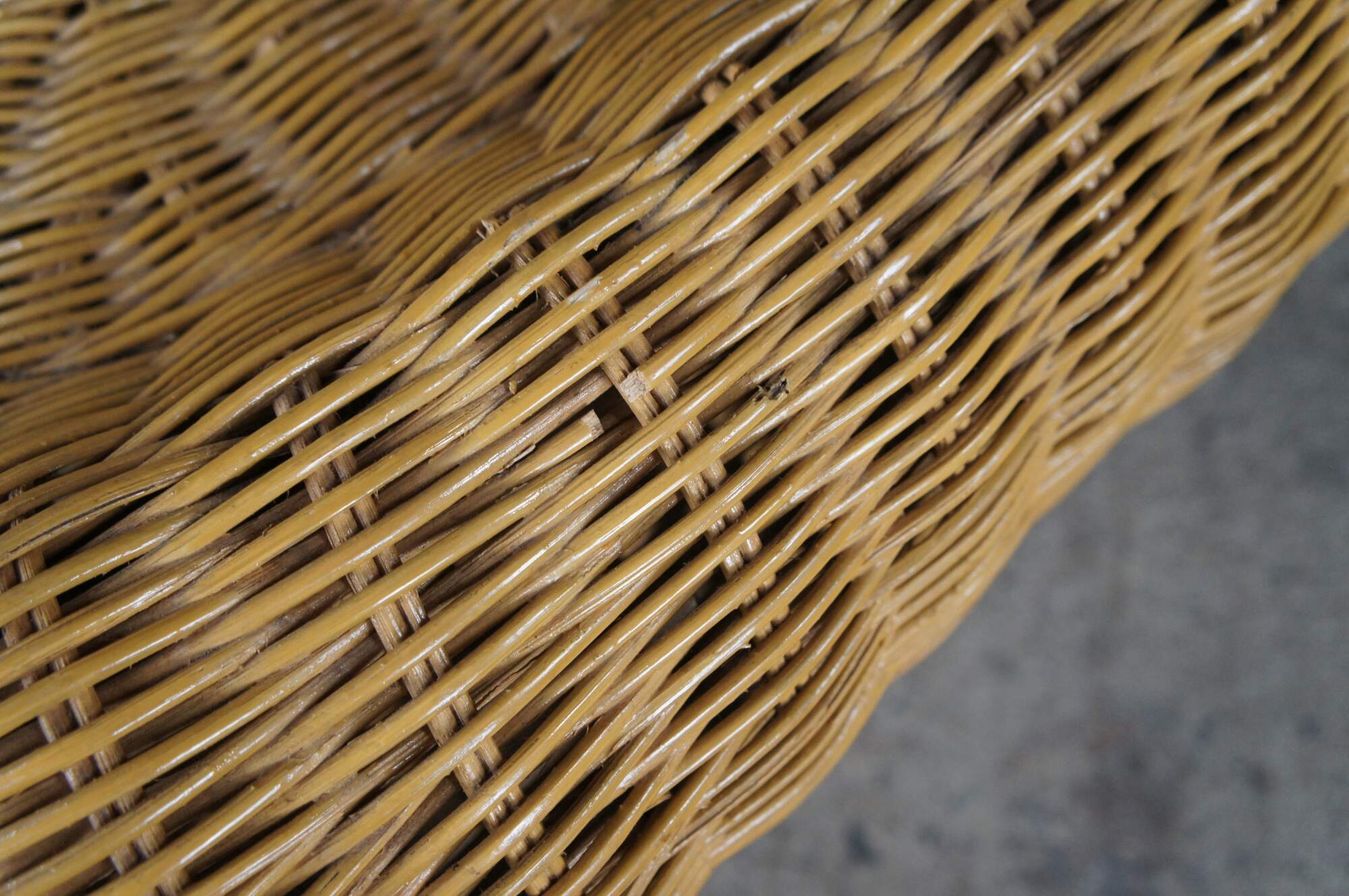 Good vintage condition, wear and distressing from age and use, some broken wickers.
