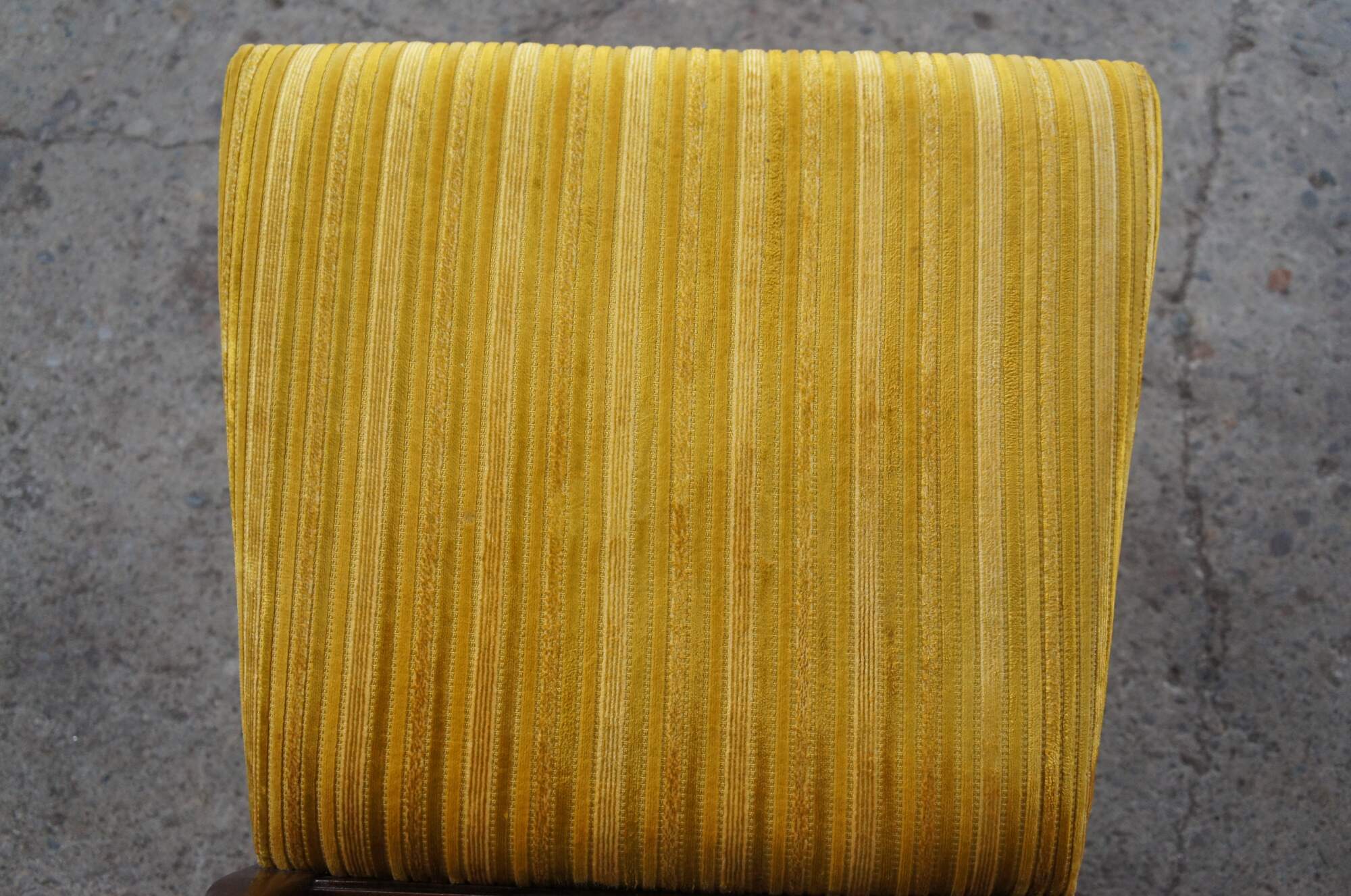 Circa 1980s Ethan Allen Georgian Court Dining Chairs. Made from solid cherry in Queen Anne styling. Features a shaped crest rail over vase shaped splat leading to seats supported by cabriole legs with pad feet. #11-2611