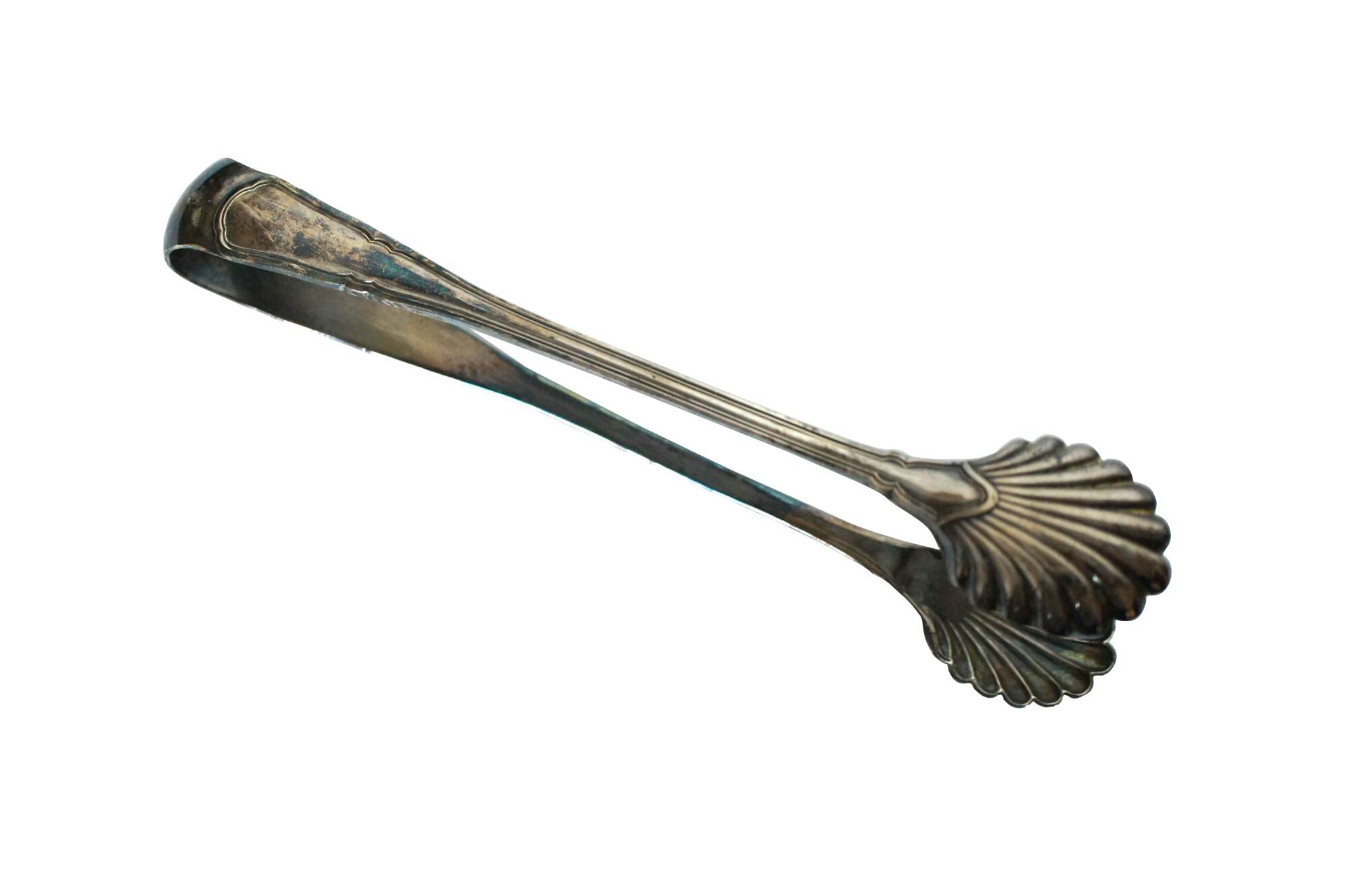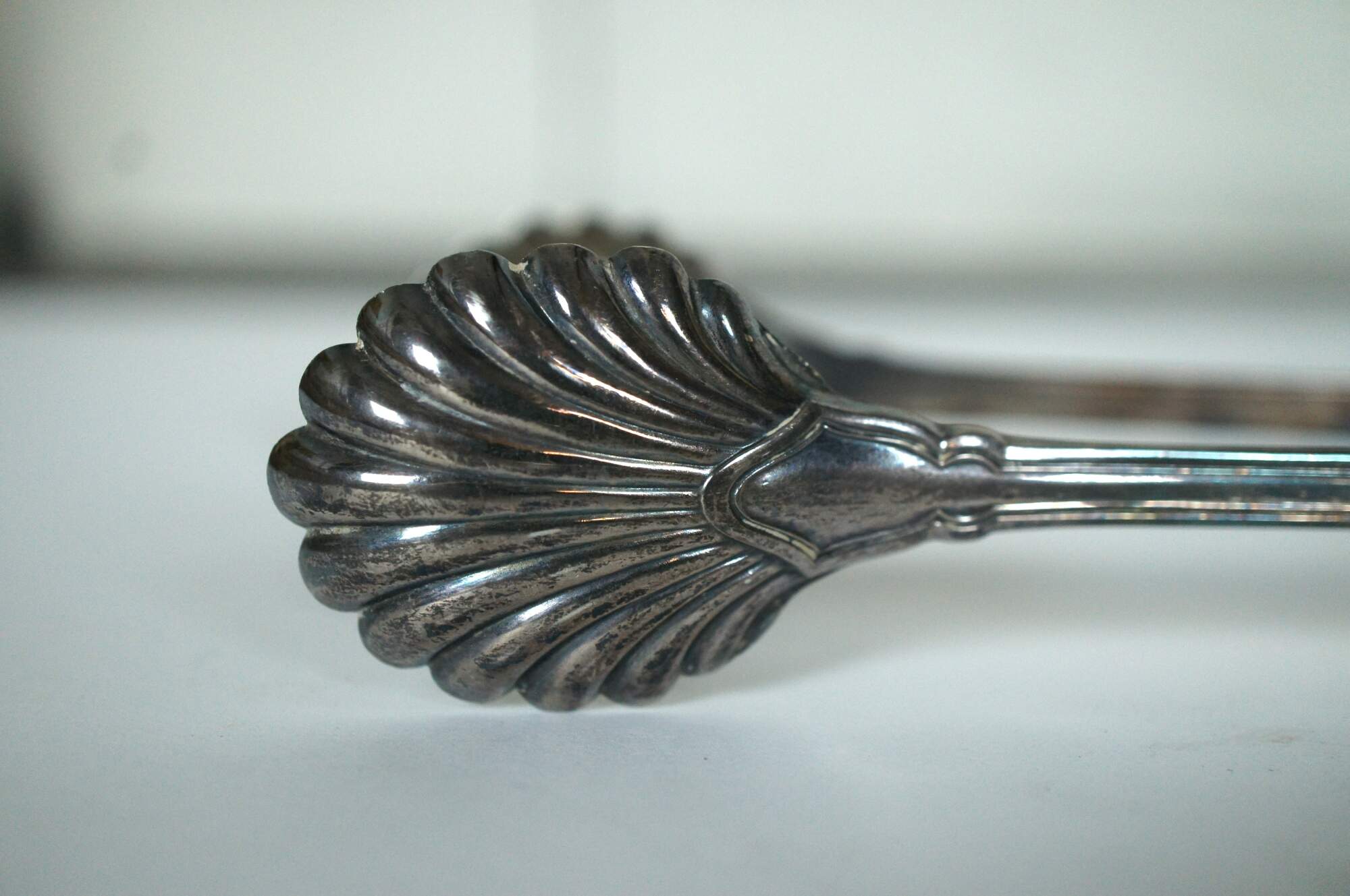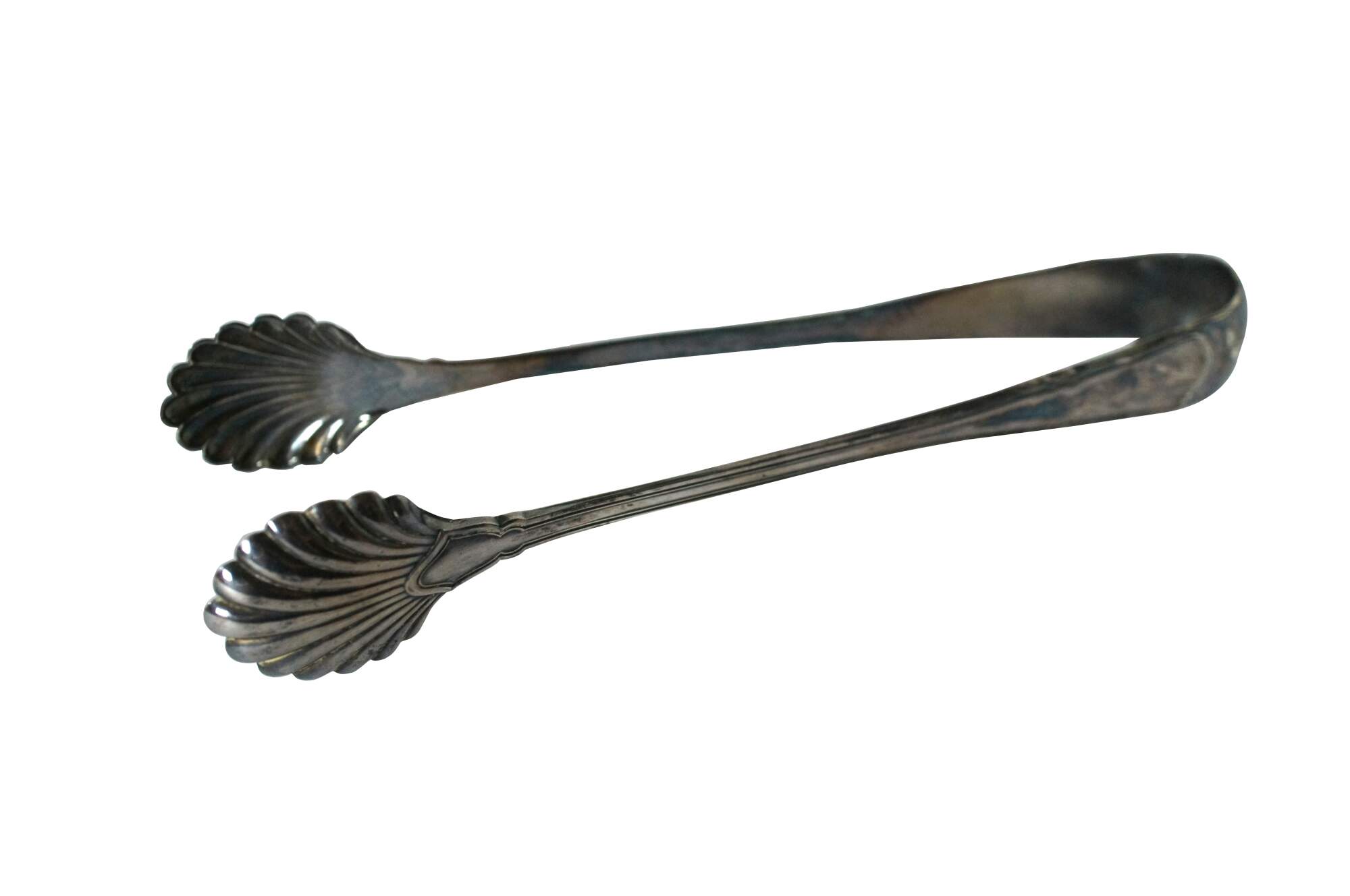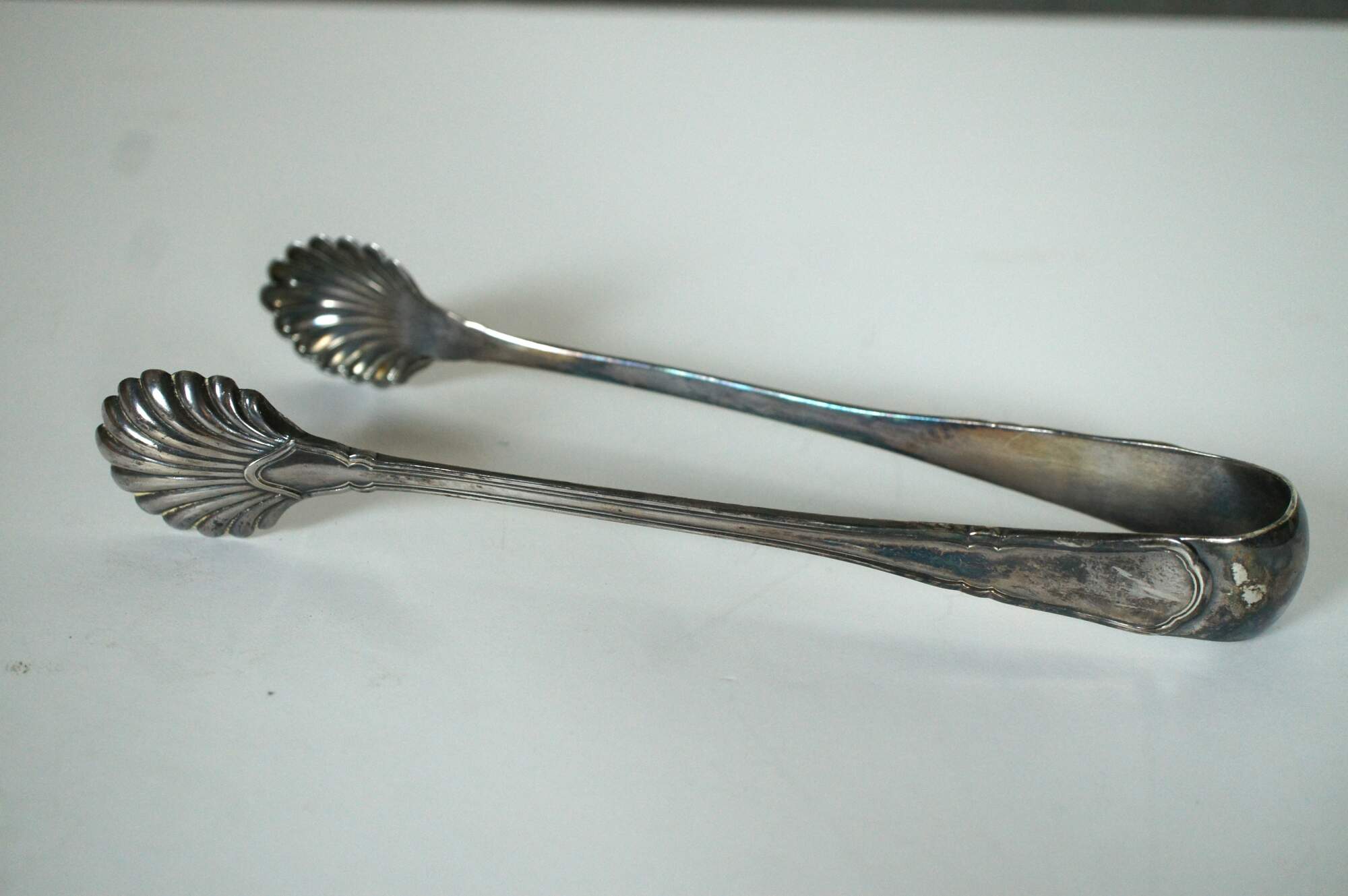 Vintage Tiffany & Company sterling silver serving tongs with scallop shell ends. Made in Italy.