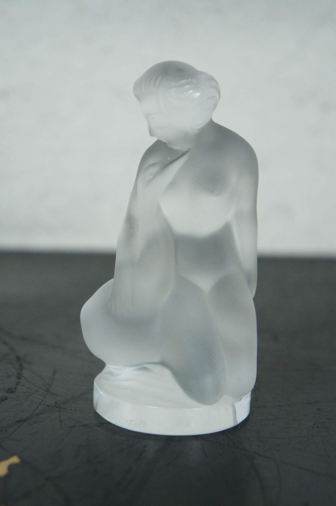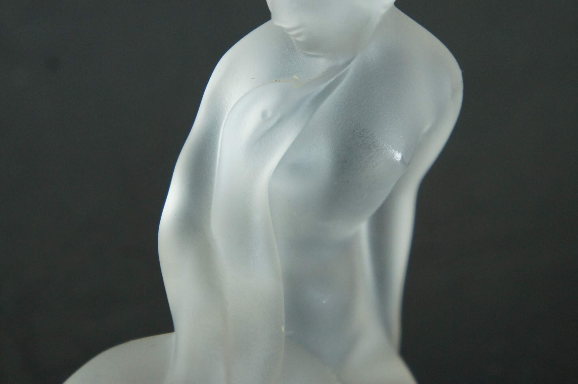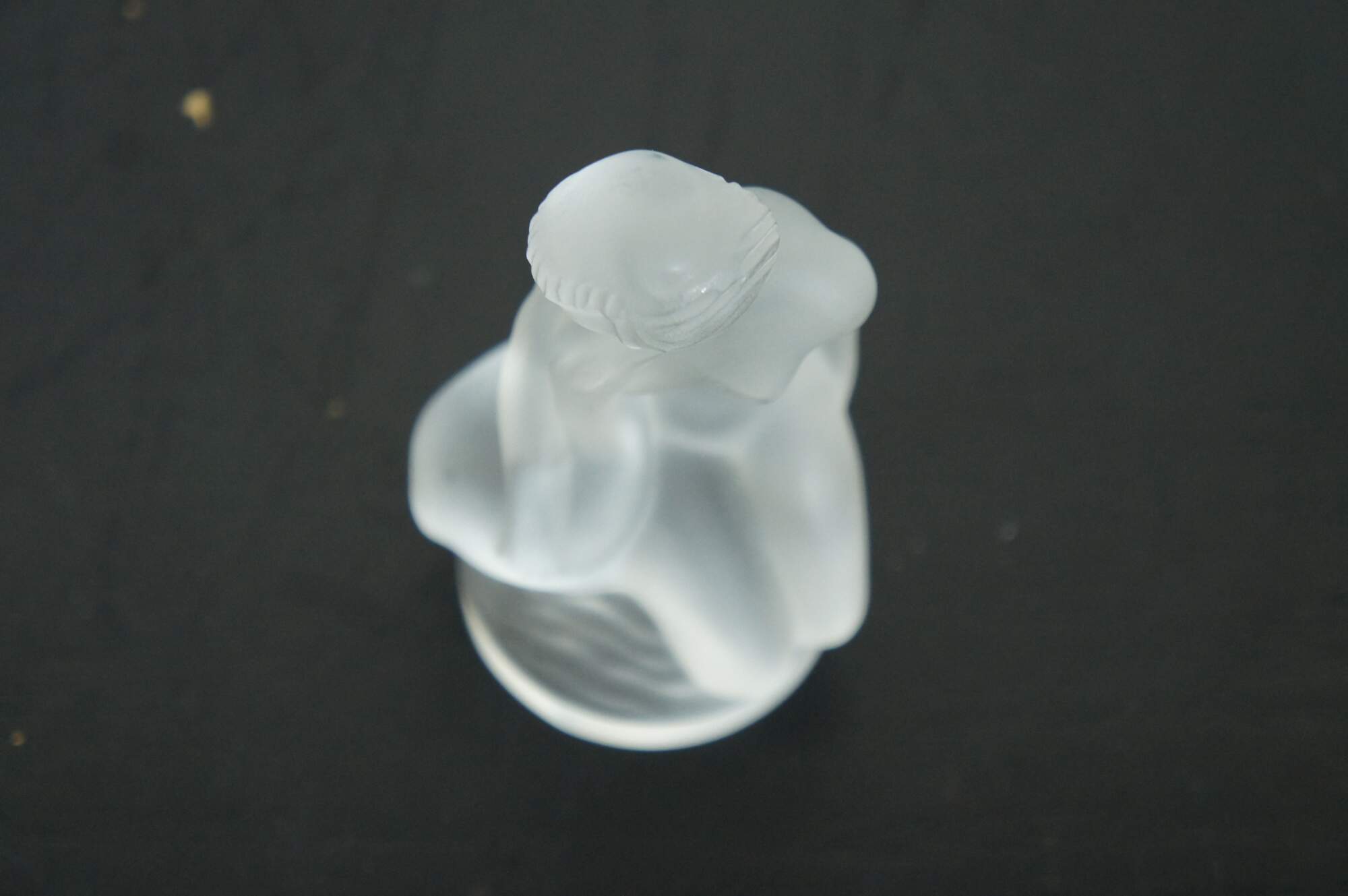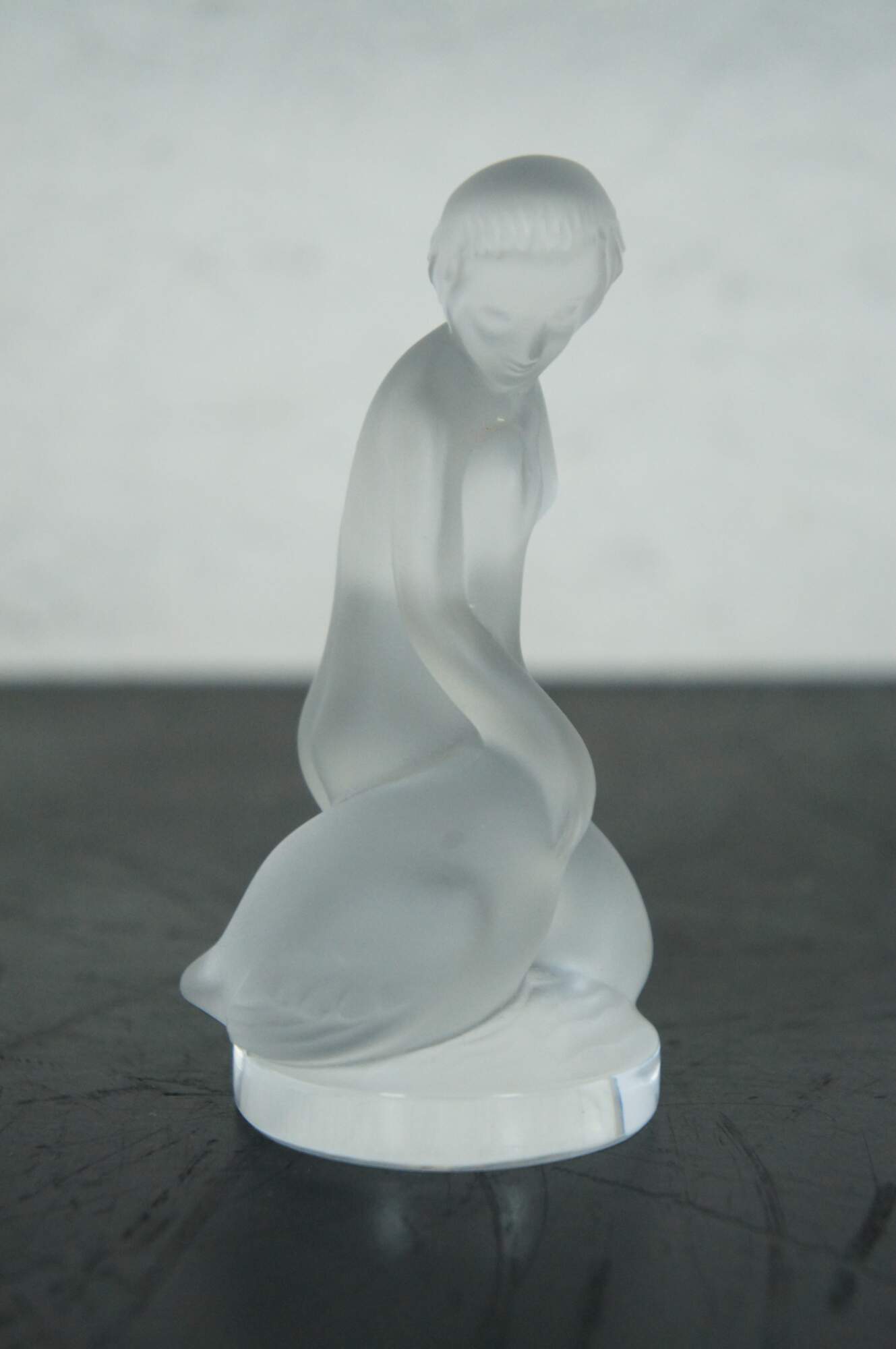 Late 20th century Lalique French frosted crystal figurine depicting the ancient Greek myth of Leda and the Swan. Signed on base.