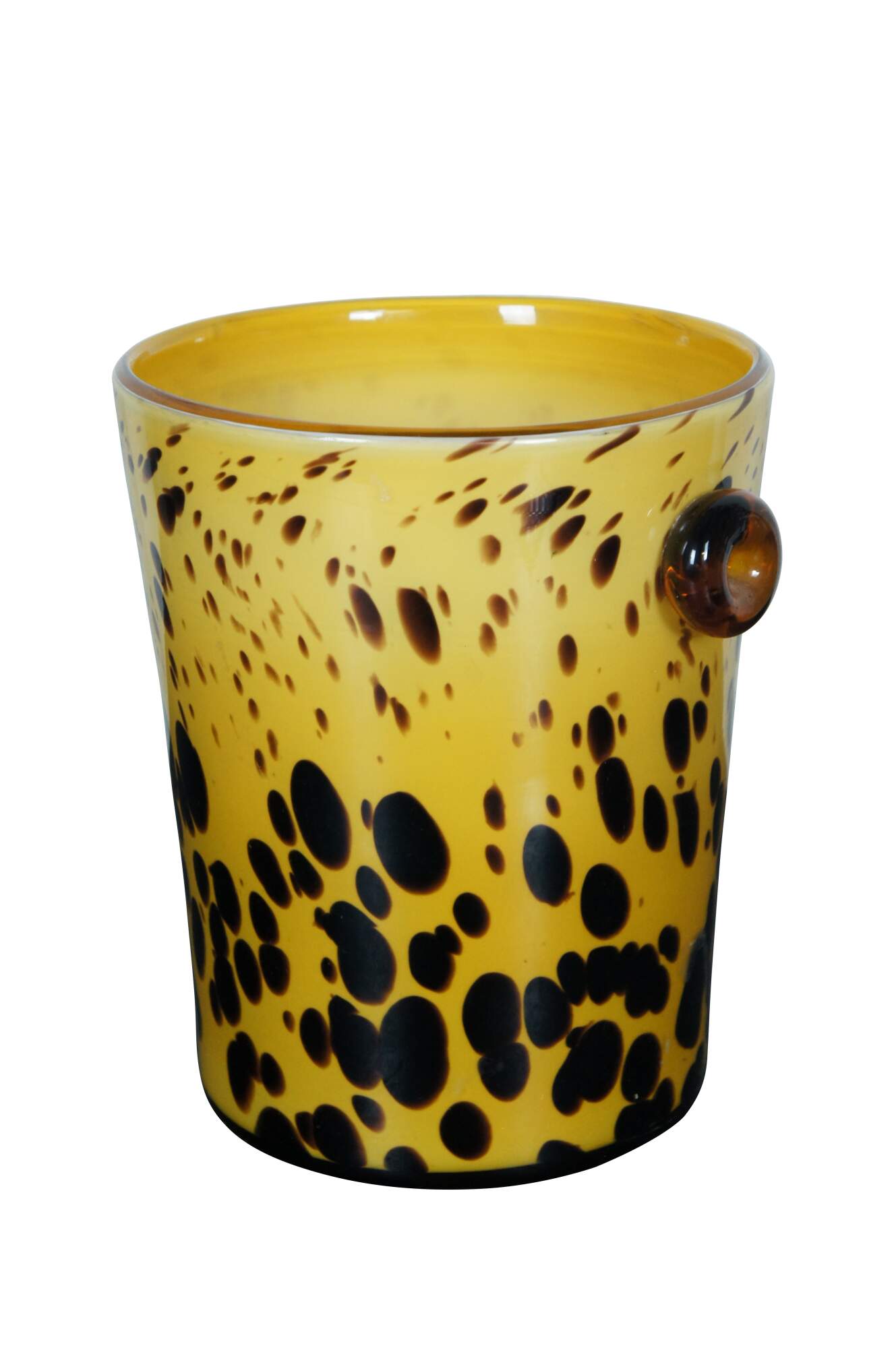 Mid century modern Italian Azzura Maestri Vetrai Murano art glass ice bucket / champagne chiller / waste / trash can featuring a beautiful butterscotch with chocolate tortoise shell / spotted Leopard pattern. Polished pontil.