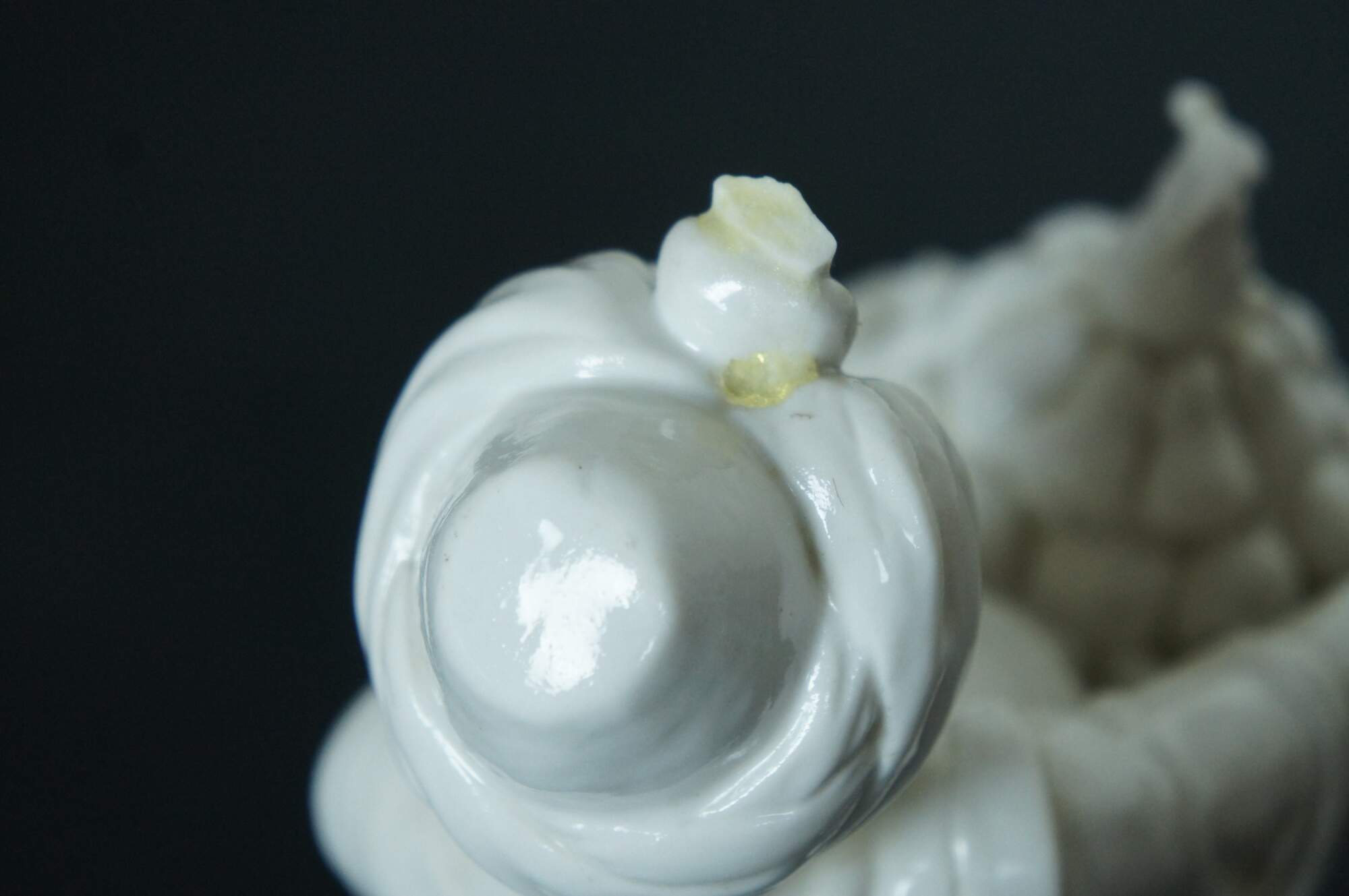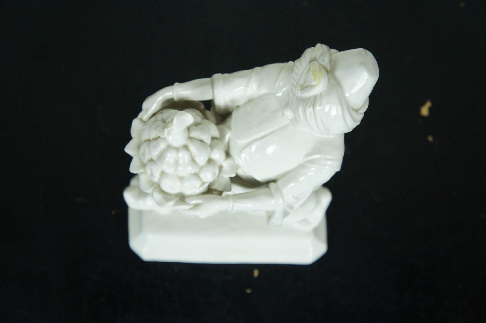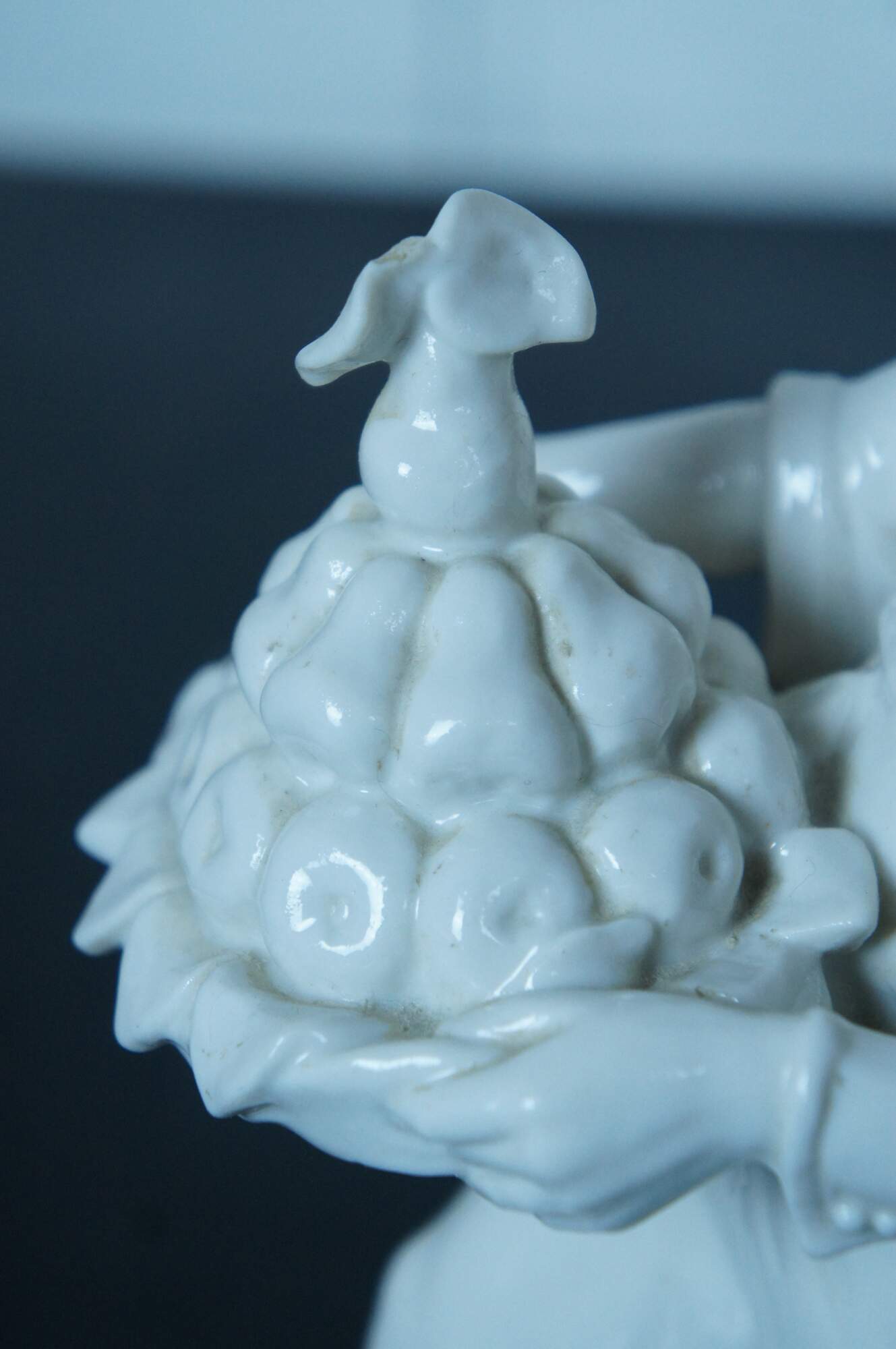 Antique circa 1936 white porcelain statue / figurine of a moor / Turk carrying a tray of fruit by Hugo Meisel (German sculptor/artist, 1887-1966). Produced by Schwarzburger Werkstatten fur Porcellankunst.