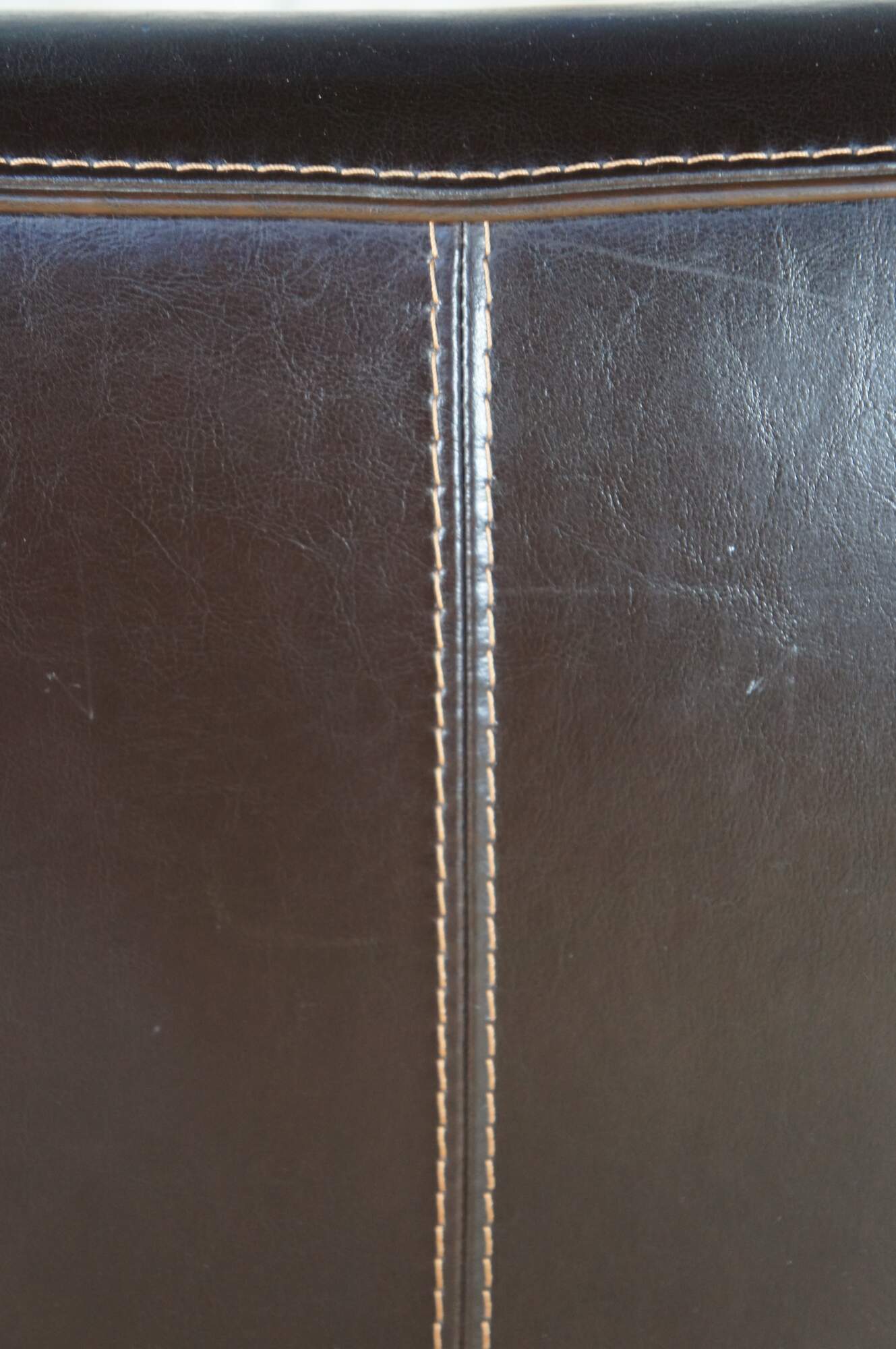 Vintage Italian Art Deco style club / lounge / arm chair featuring high sloped arms and brown leather upholstery.