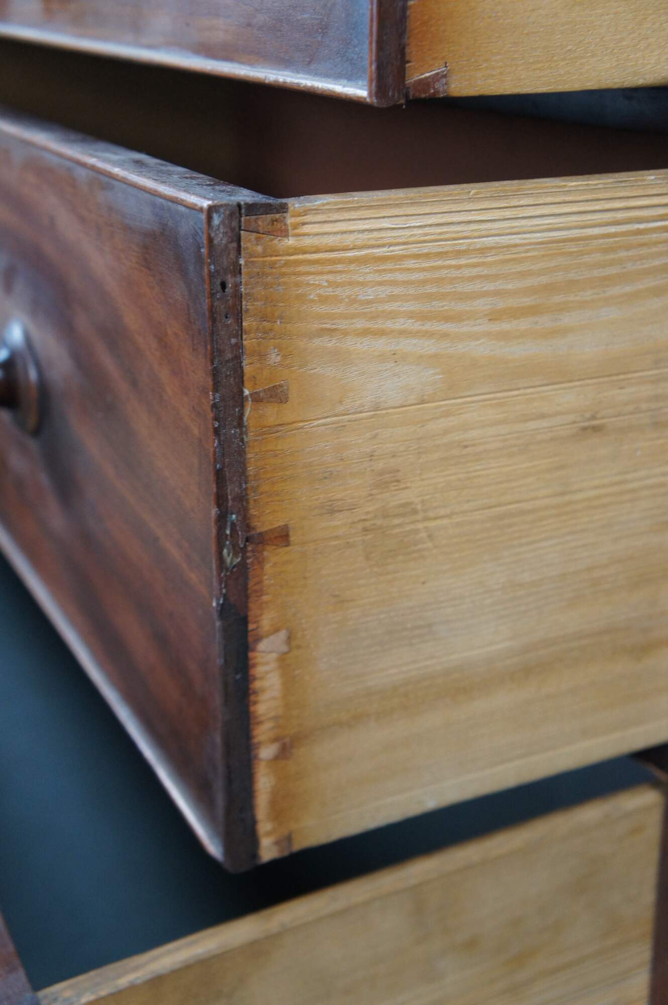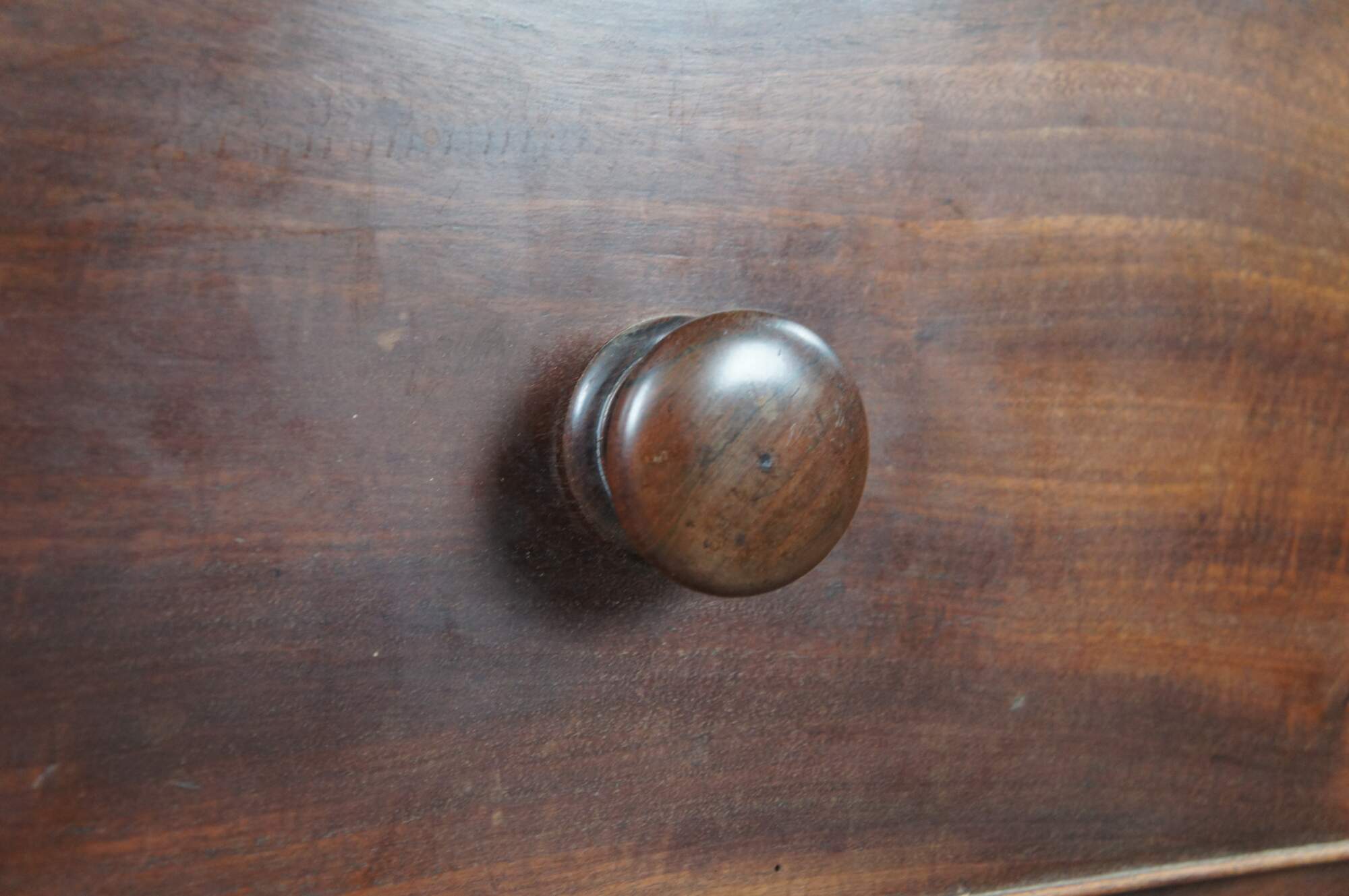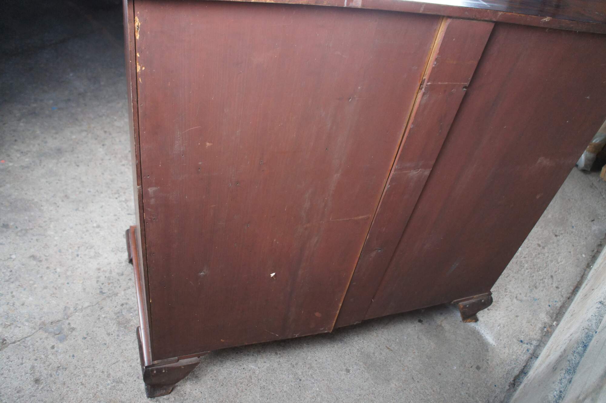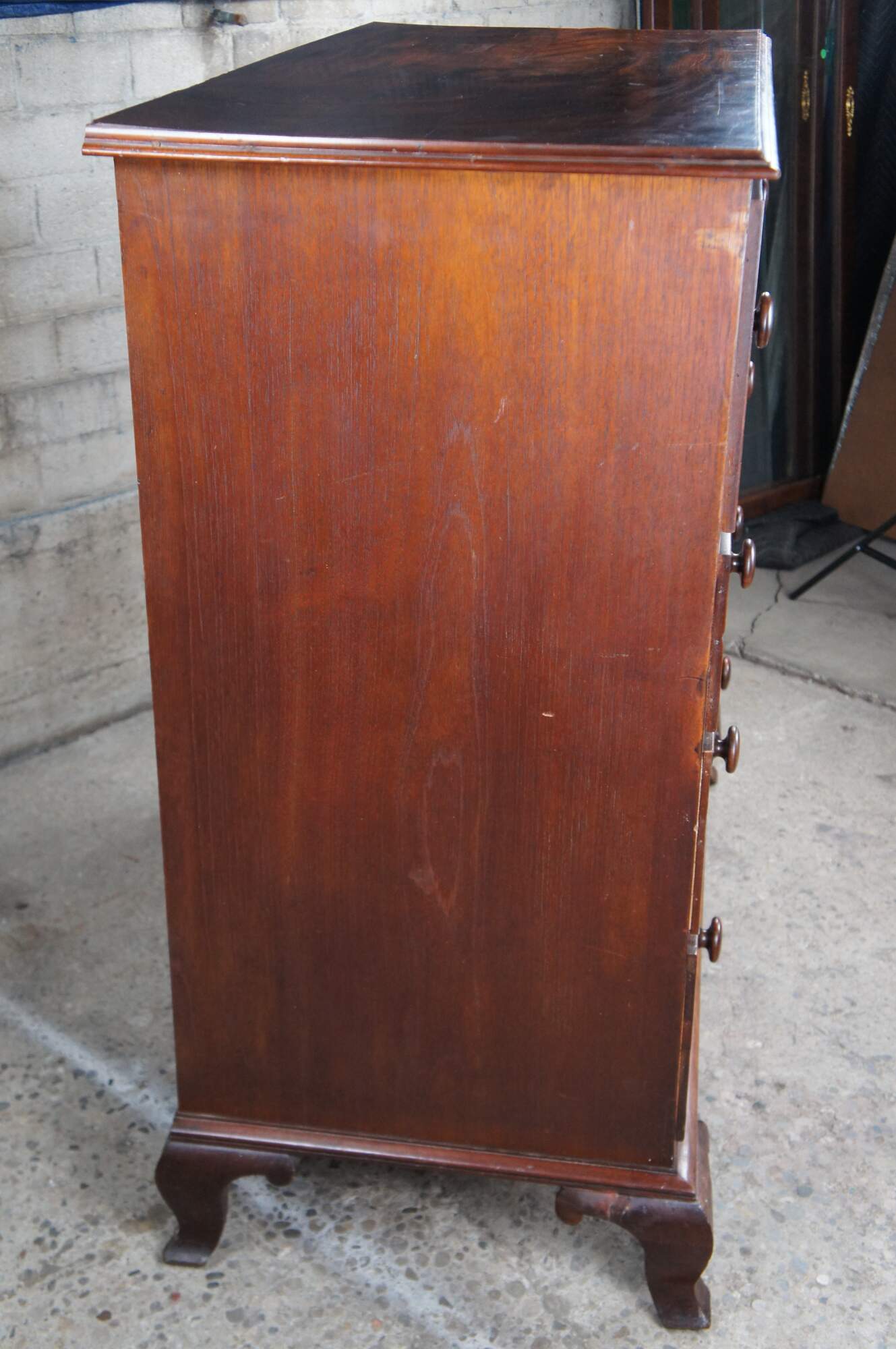 Antique 19th Century Georgian mahogany chest of drawers. Features four drawers with a large cross banded upper drawer. Drawers are made from pine, hand dovetailed and include escutcheons. The case is supported by ogee bracket feet.