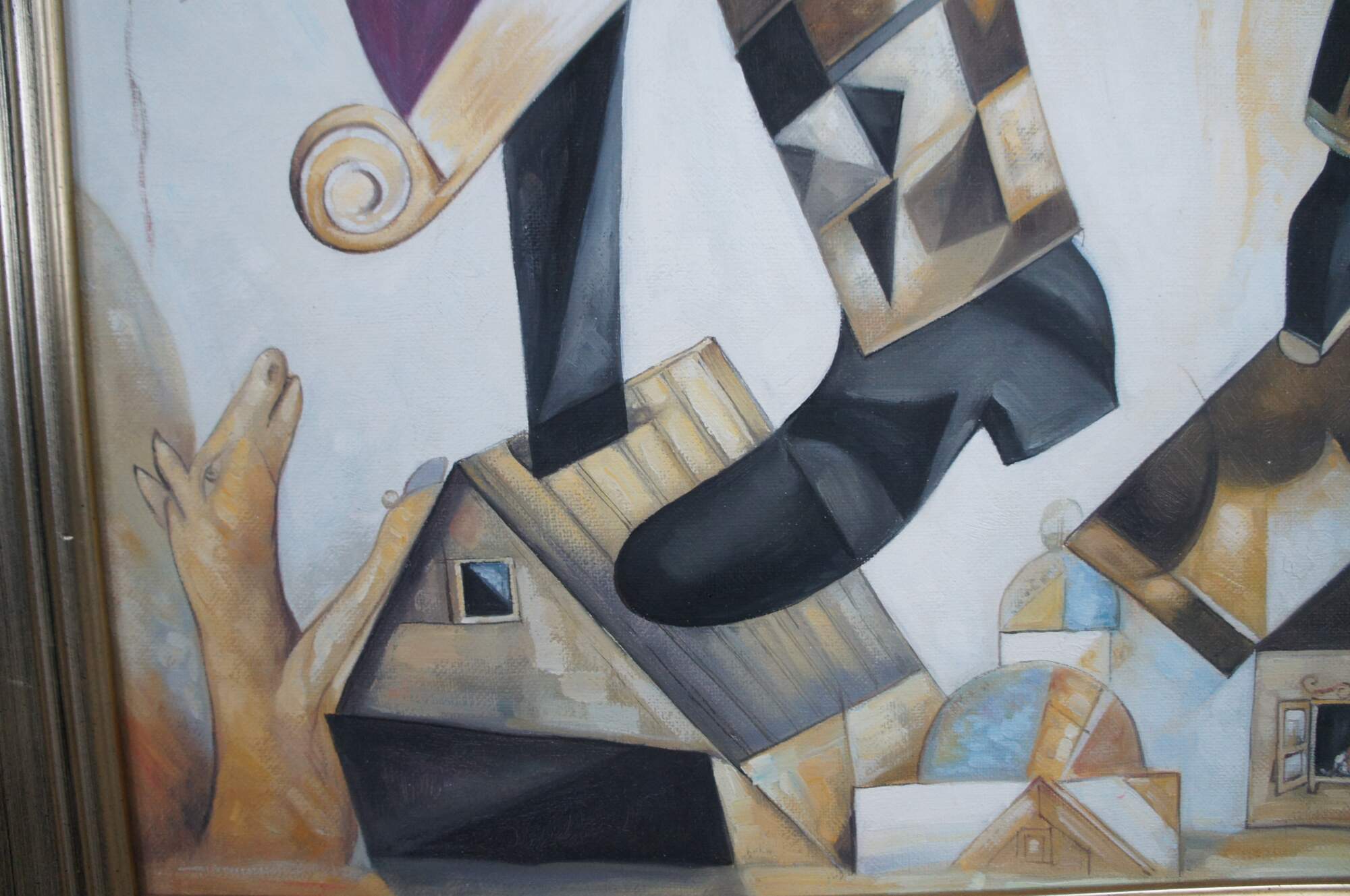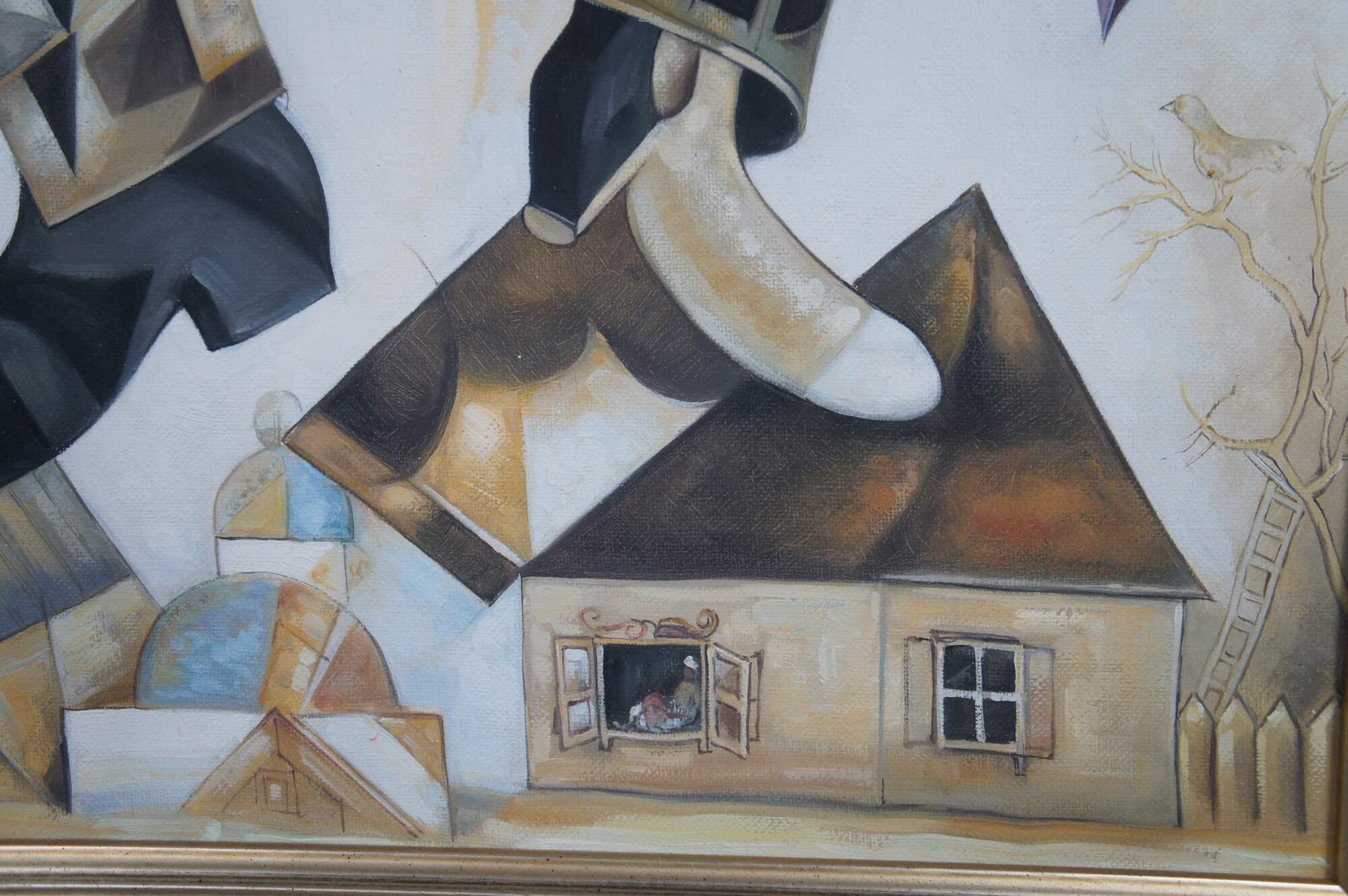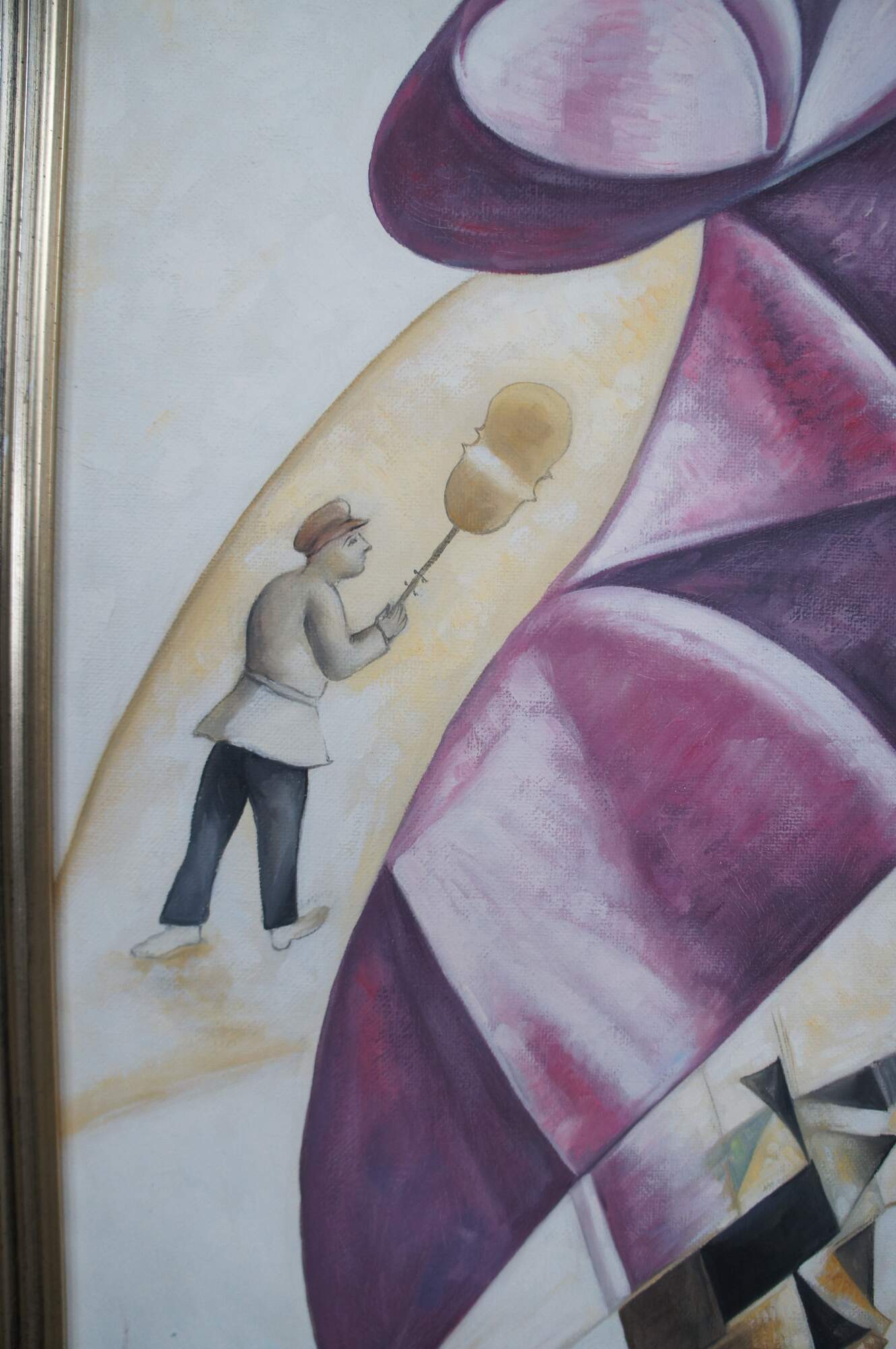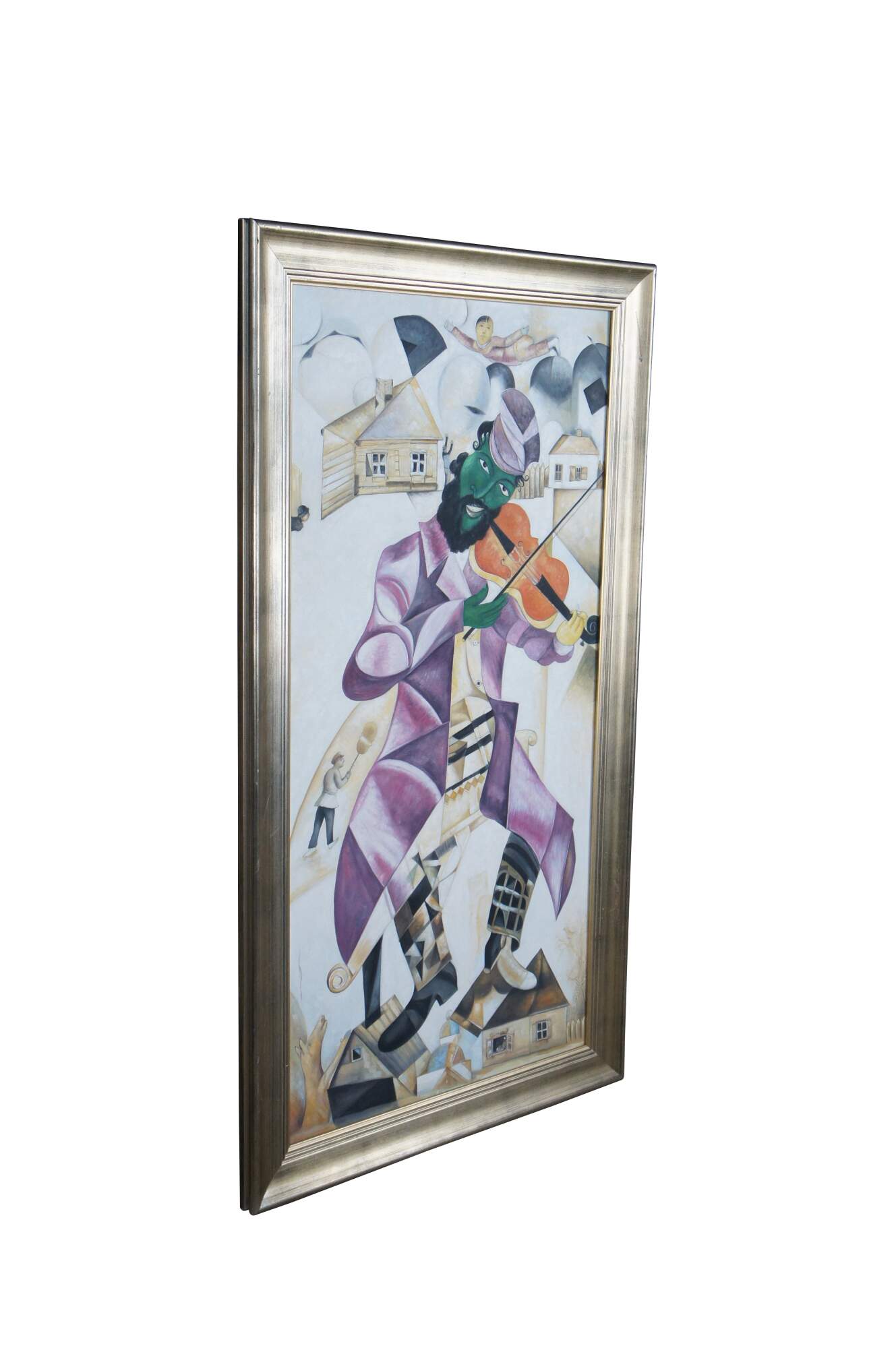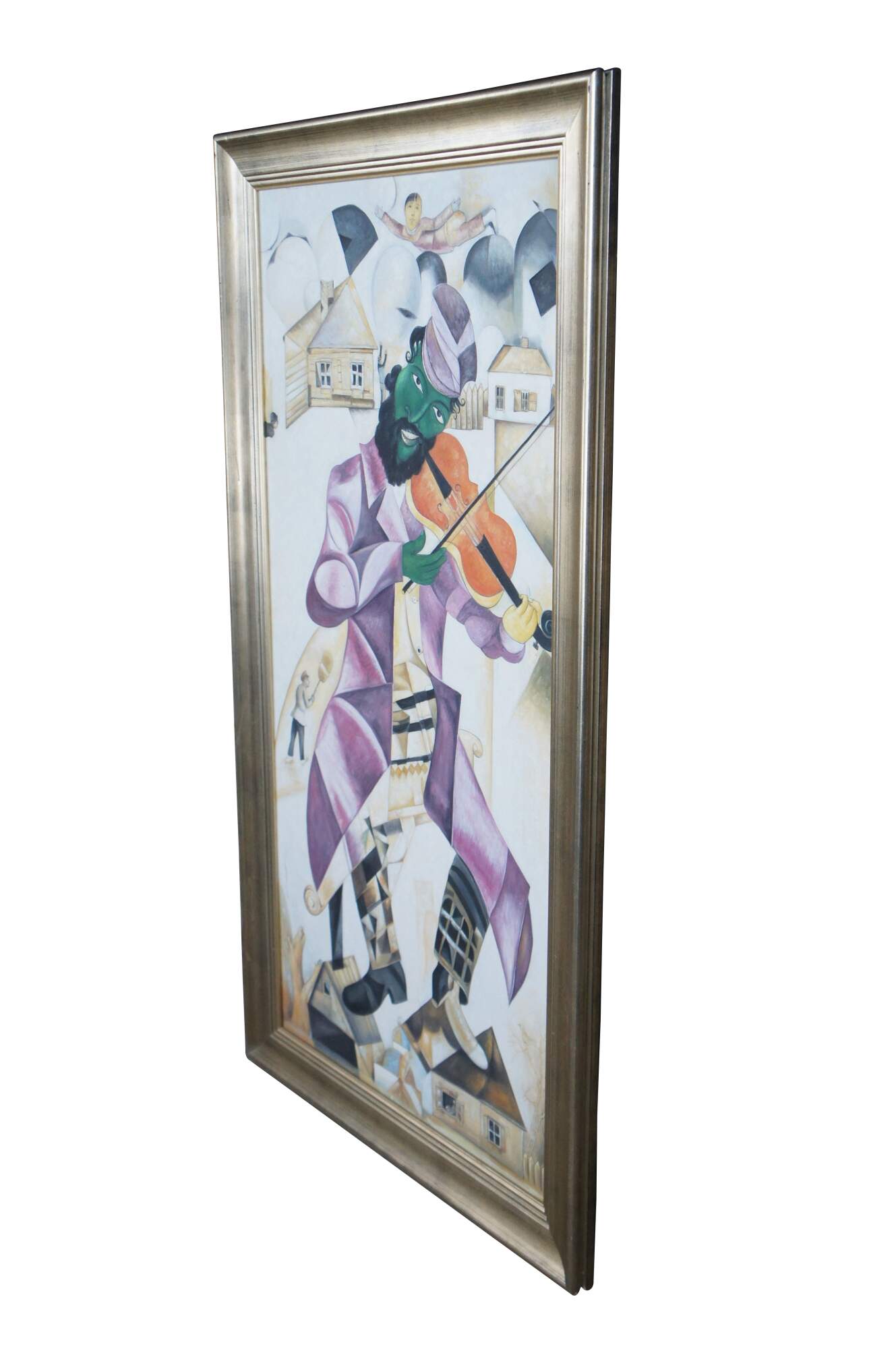 An exquiste reproduction after Marc Chagall's, Green Violinist. Aptly Titled "The Green Fiddler", circa last quarter 20th Century. The painting is about 3/4 the size of the original andexecuted with remarkable similarities. Beautifully colored and detailed. The canvas is unsigned.