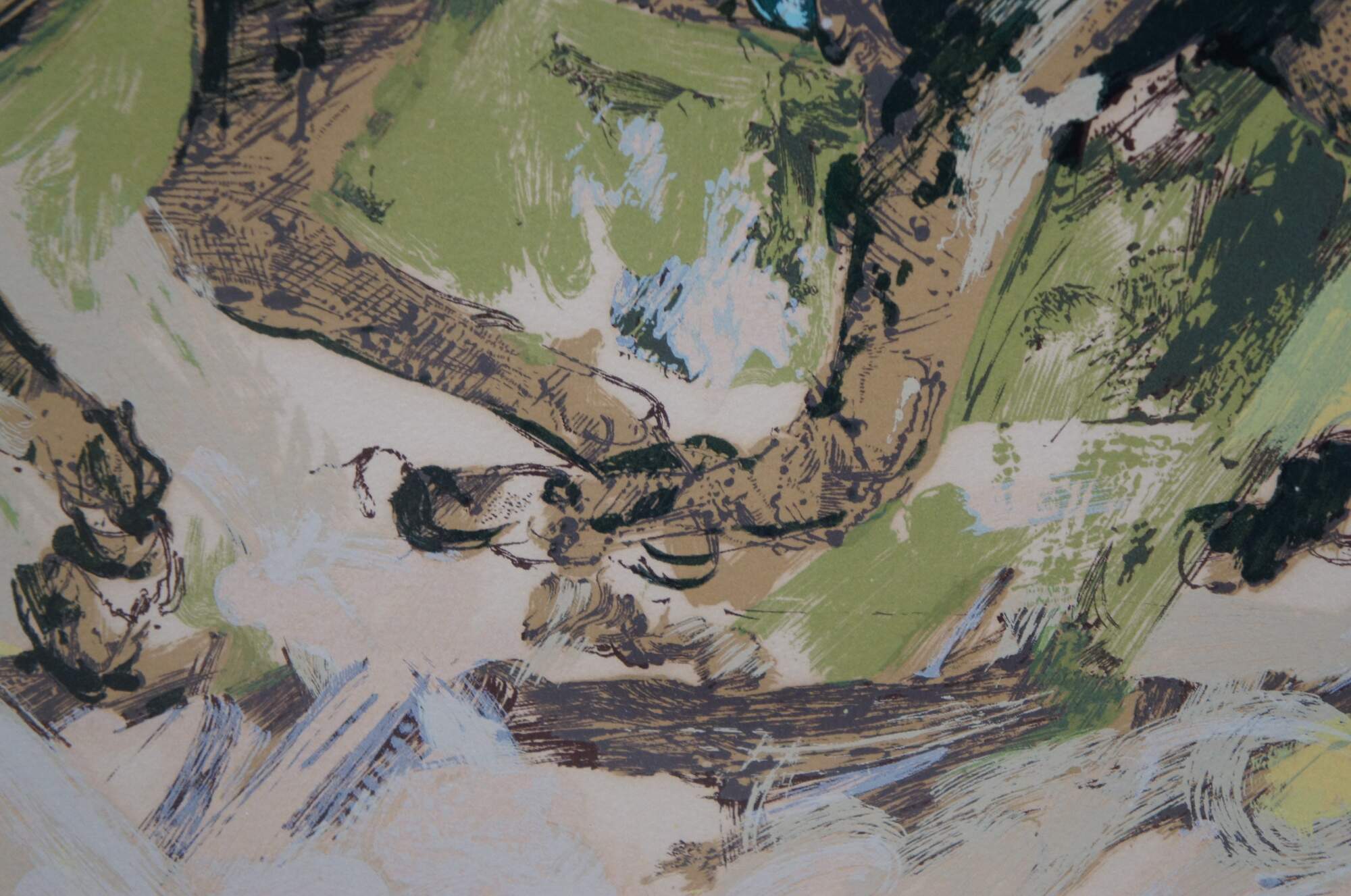 "Wayland Moore American Artist: b. 1935-2022. He is a native of Belton, S.C. and a graduate of the Ringling School of Art and Design in Sarasota, Fla., according to his biographical sketch. "His commissions and assignments have brought him international acclaim as an artist who has captured the excitement of events such as the Winter and Summer Olympics, America''s Cup, U.S. Open, the Masters, P.G.A., U.S. Olympic Hall of Fame, Maccabiah Games of Israel, Davis Cup and many other international events. Moore has exhibited in numerous one-man shows throughout the United States and Europe. His original works and limited edition prints hang in private and corporate collections and he is listed in Who''s Who in American Art. The artist''s studio has been the hot and dry bush of Africa, often only yards away from lions, zebra and wildebeest; and his palette has captured the excitement and intrigue of the white waters of Alaska, Montana rodeos and European landscapes. In addition to Moore''s reputation as an artist, he conducts workshops and has taught painting in evening classes at Emory University for 15 years. His concept of teaching art to federal inmates earned him a commendation from the White House. He is in demand as a lecturer and is a powerful storyteller whose company is always treasured, whether it be in offices, galleries or around a warm campfire." Wayland David Moore, whose expressionistic paintings of dramatic action and brilliant color define an era in sports art, died on Monday, November 7, 2022, at his home in Decatur, GA. He was 87." (Source: Art Brokerage)