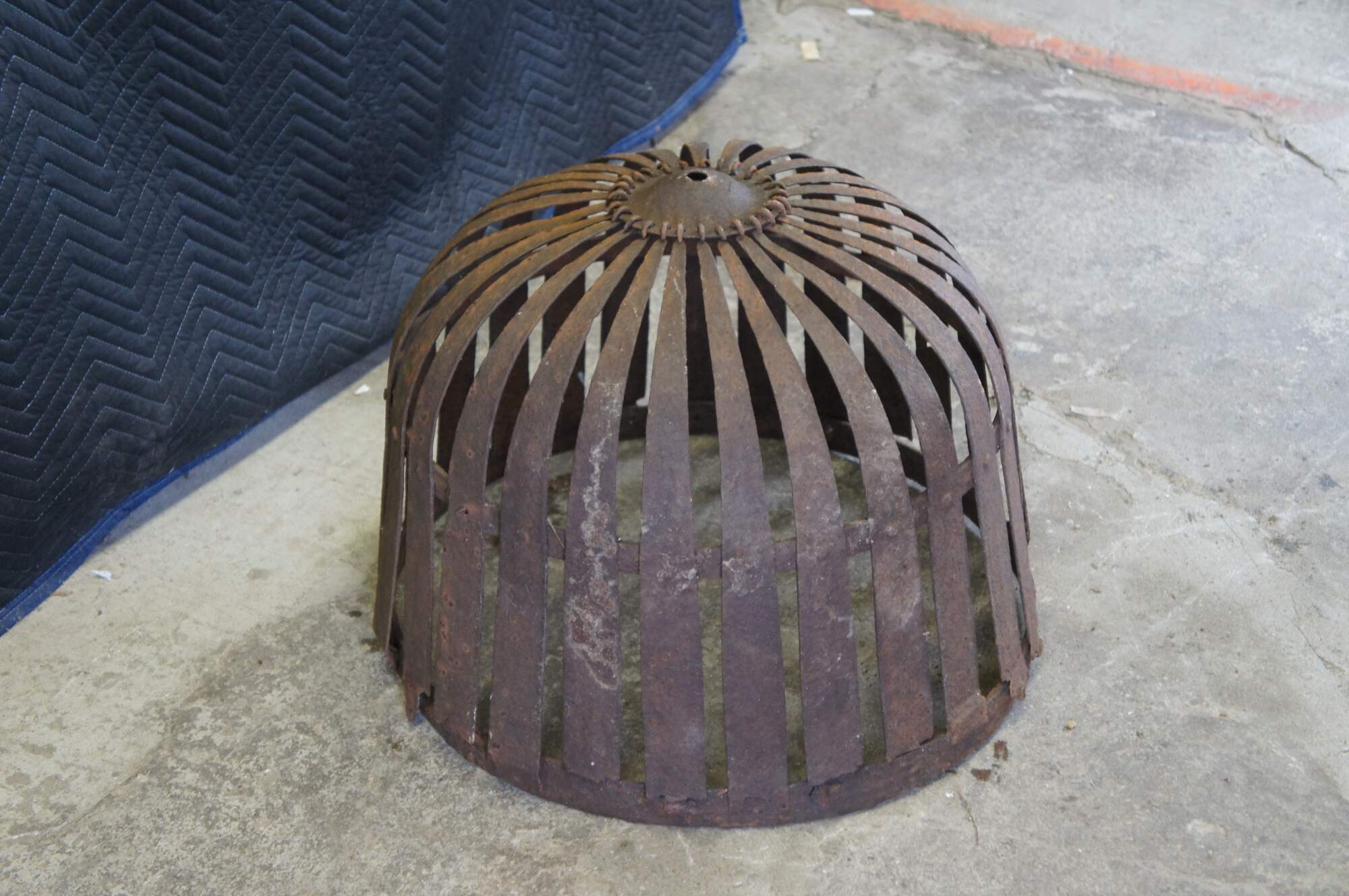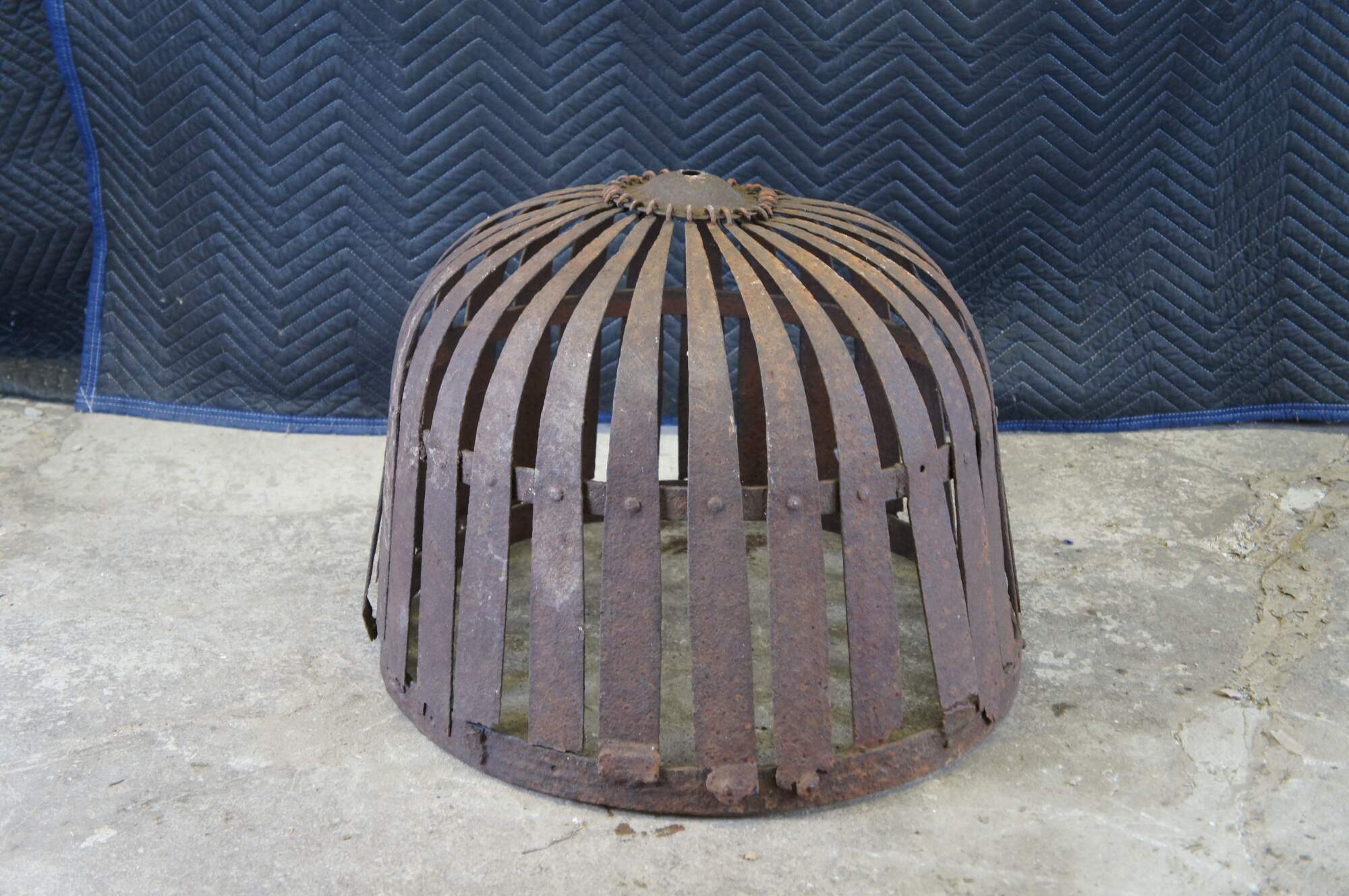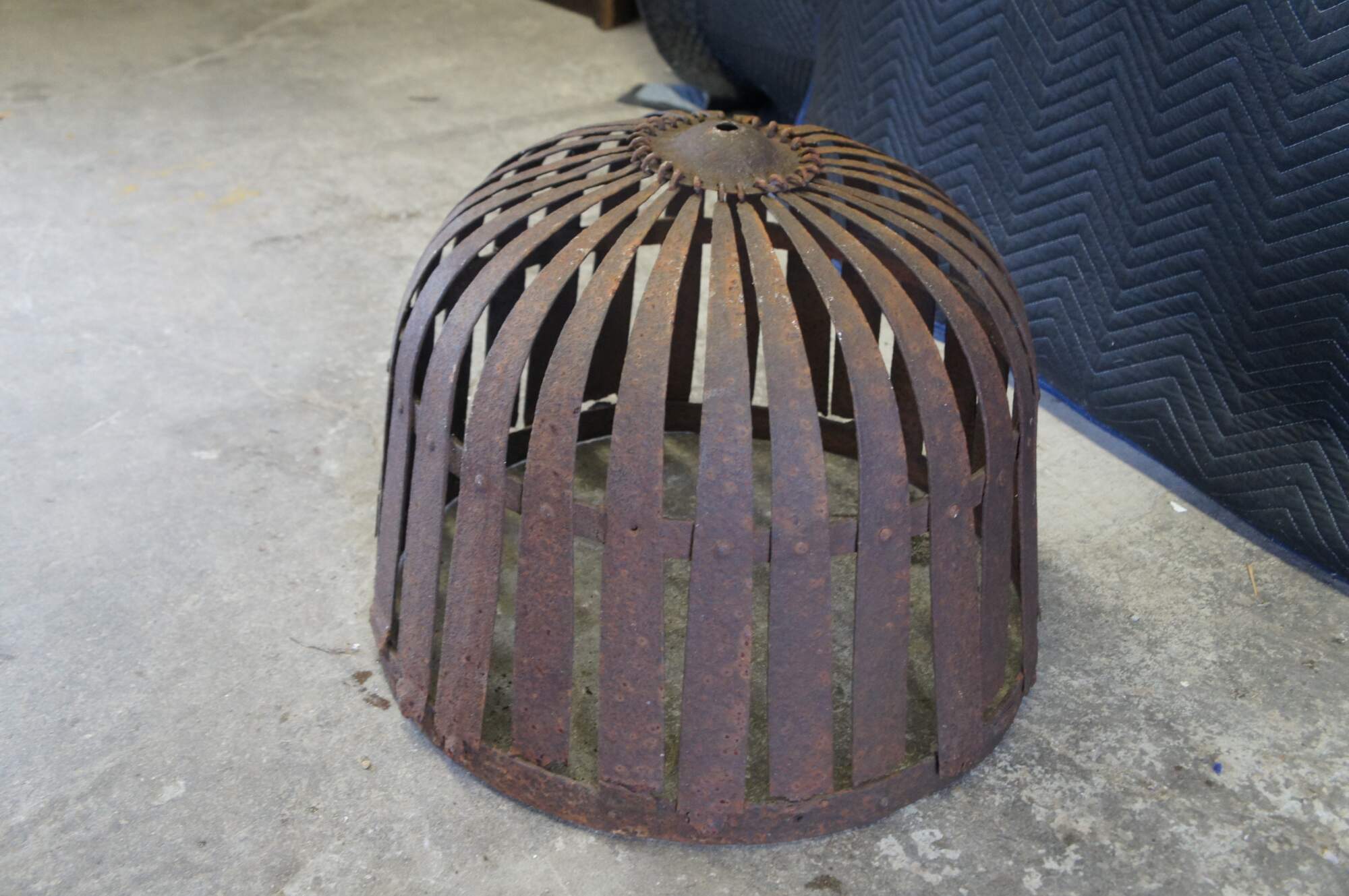 Large antique rustic / primitive farmhouse basket / hay feeder / garden planter or fire pit. Made of iron featuring a birdcage design.
