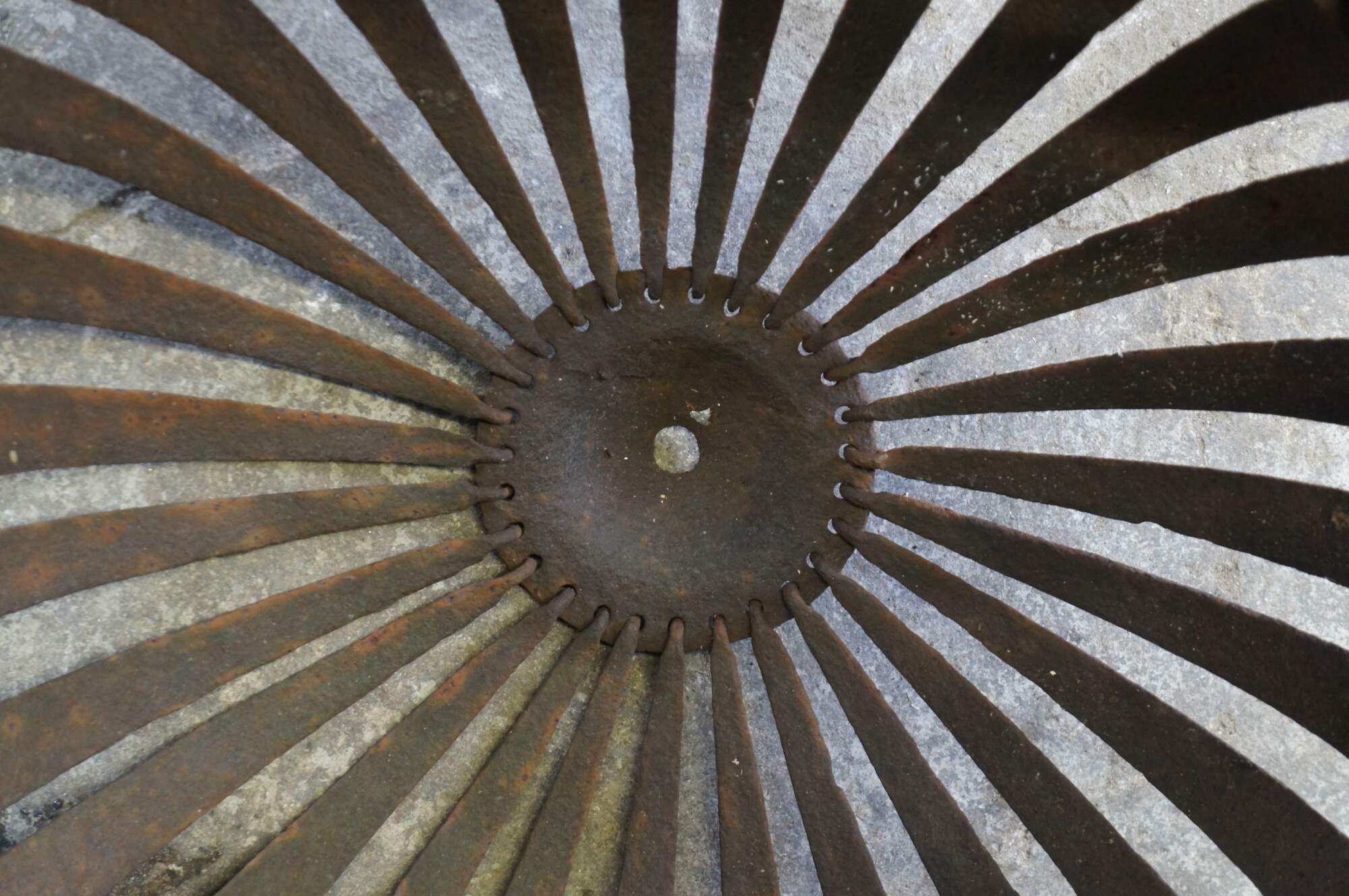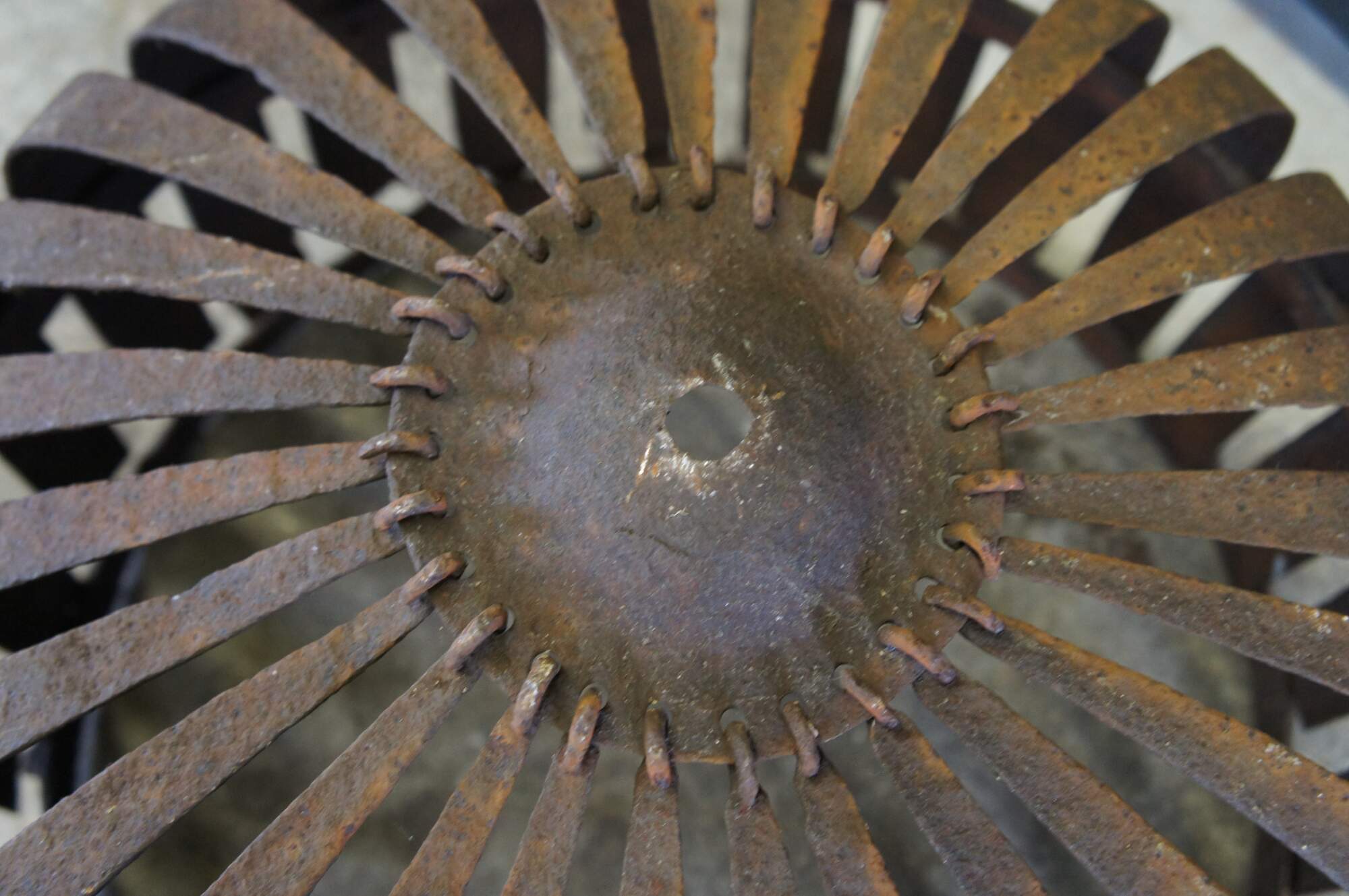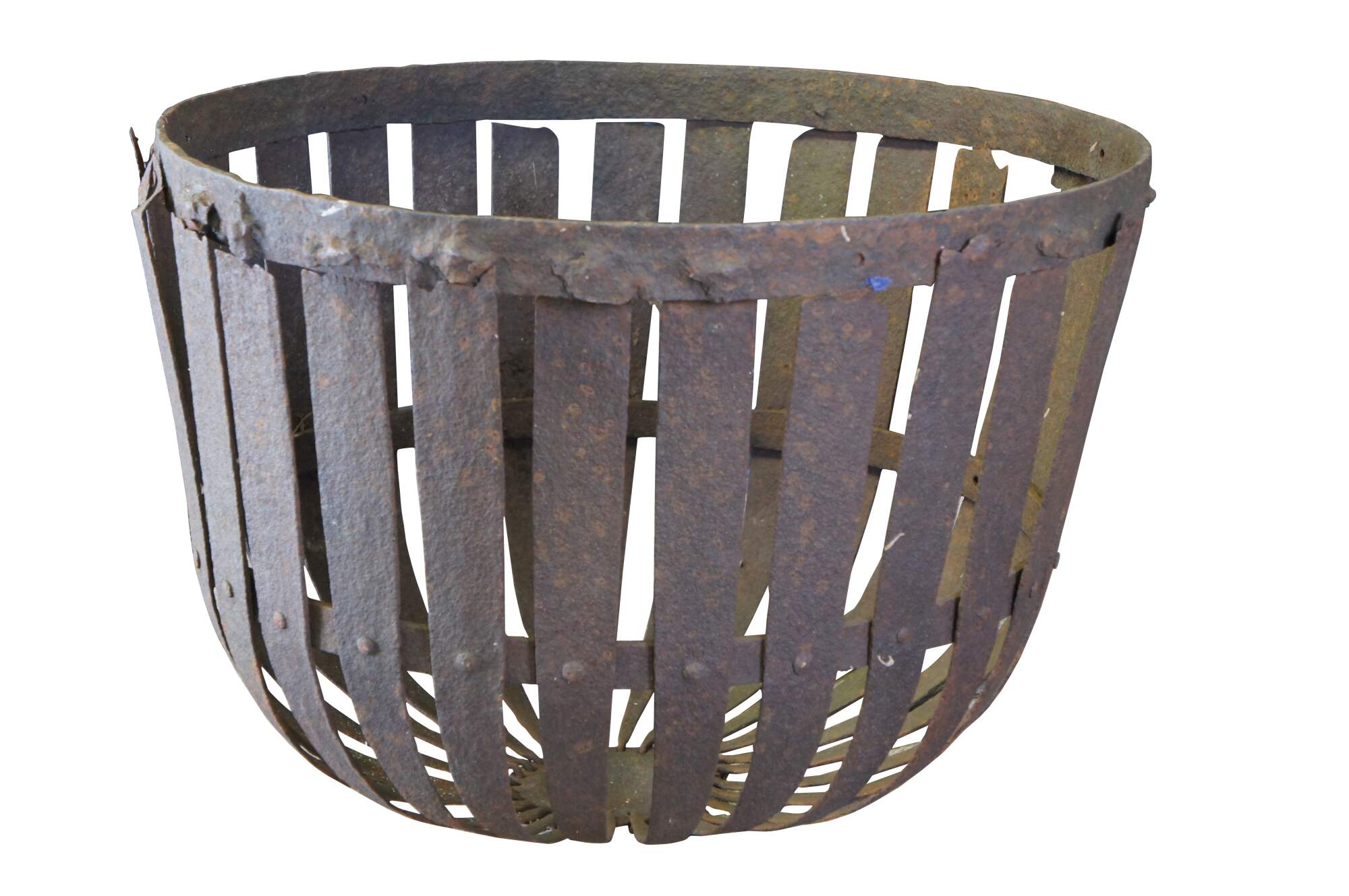 Large antique rustic / primitive farmhouse basket / hay feeder / garden planter or fire pit. Made of iron featuring a birdcage design.