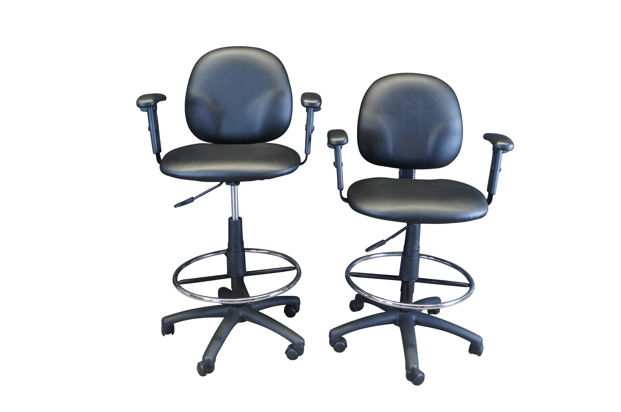Three vintage Norstar Office Products drafting armchairs / counter or bar stools / high desk chairs. Swivel, adjustable, rotating.