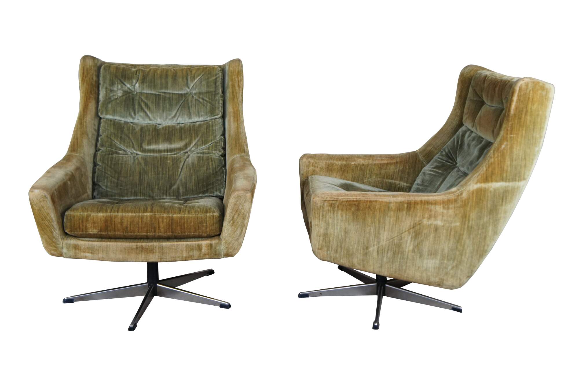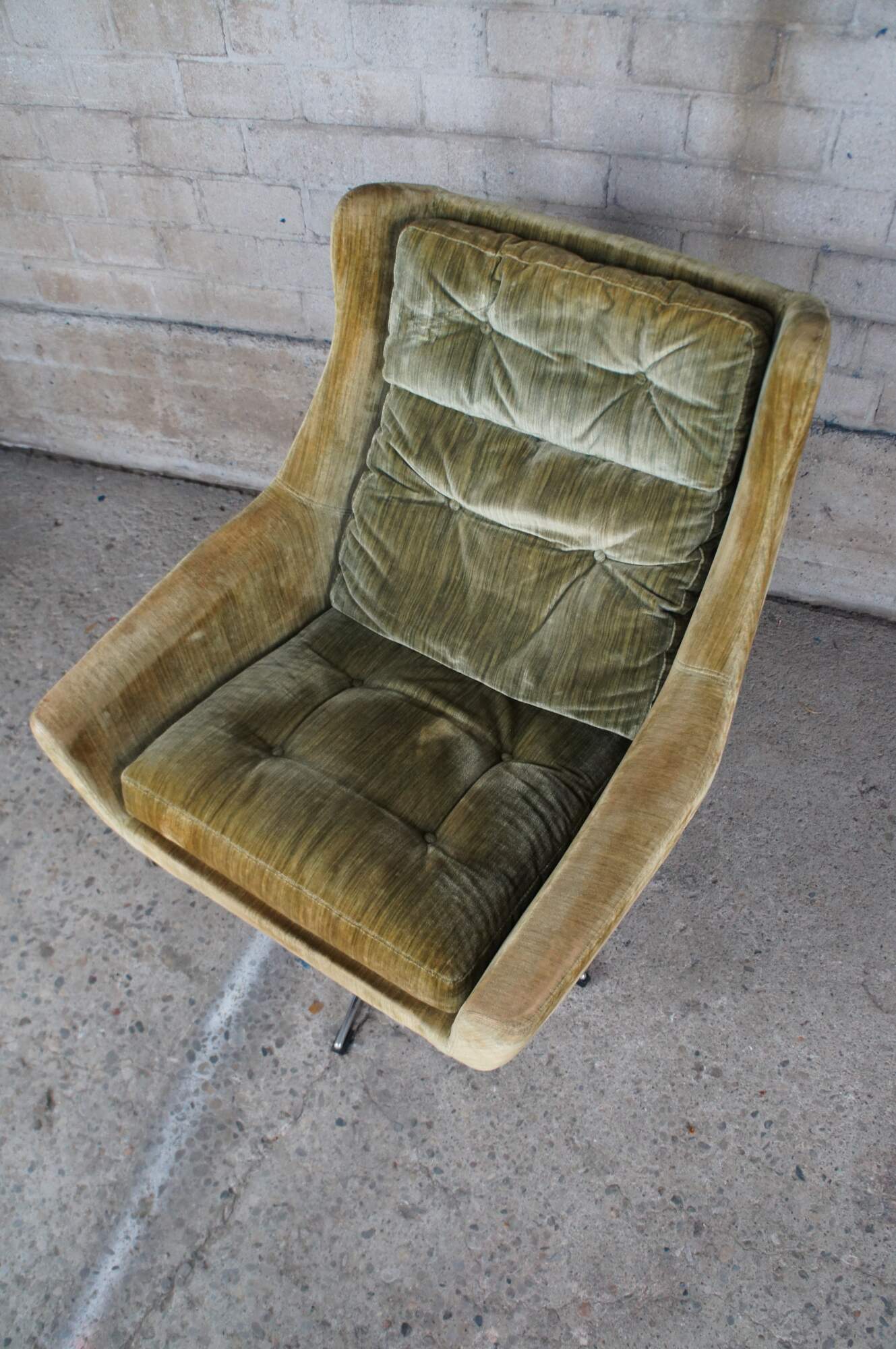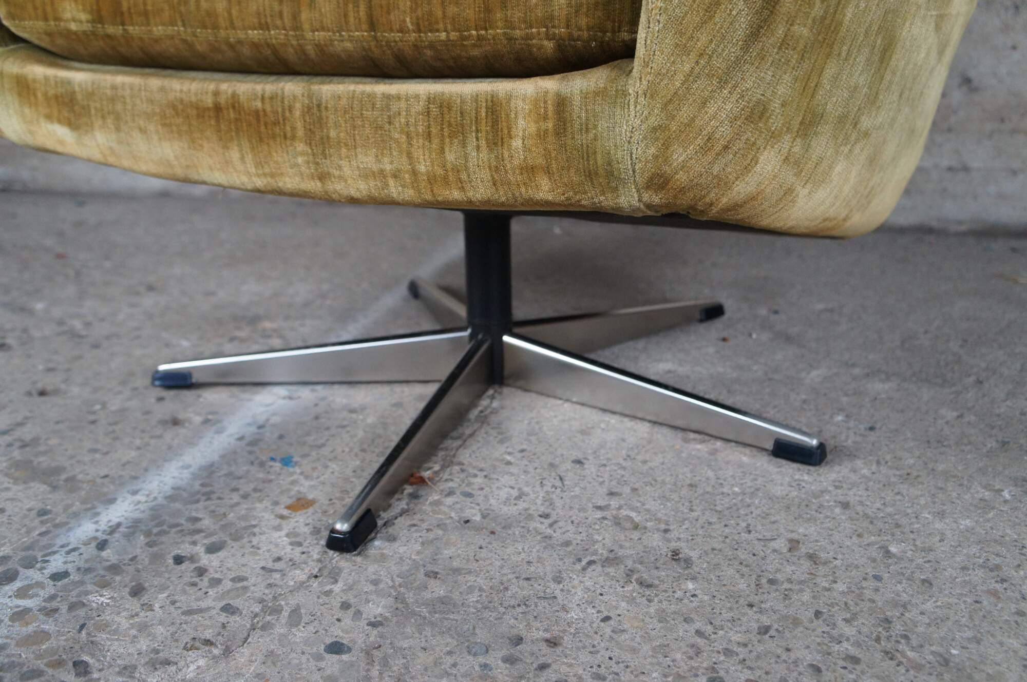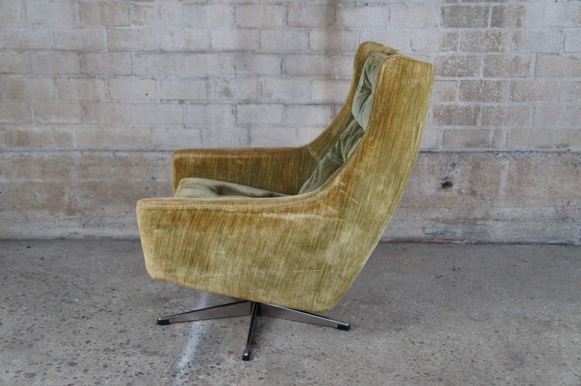 Very comfortable mid century modern John Stuart Eames style swivel wingback arm chairs and ottoman.