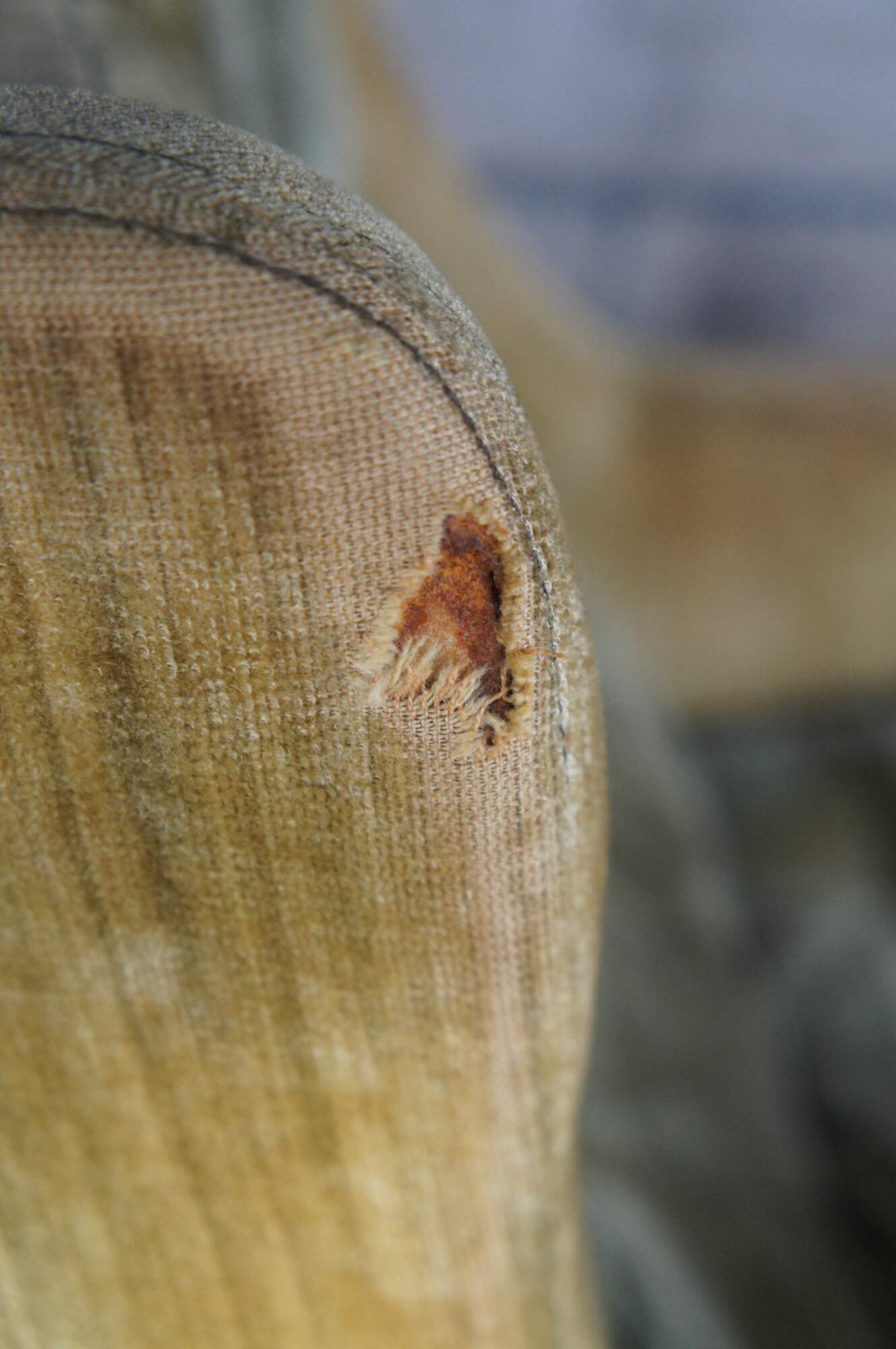 Good overall condition, wear and distressing commensurate with age and use, staining, fading, indents, tear.
