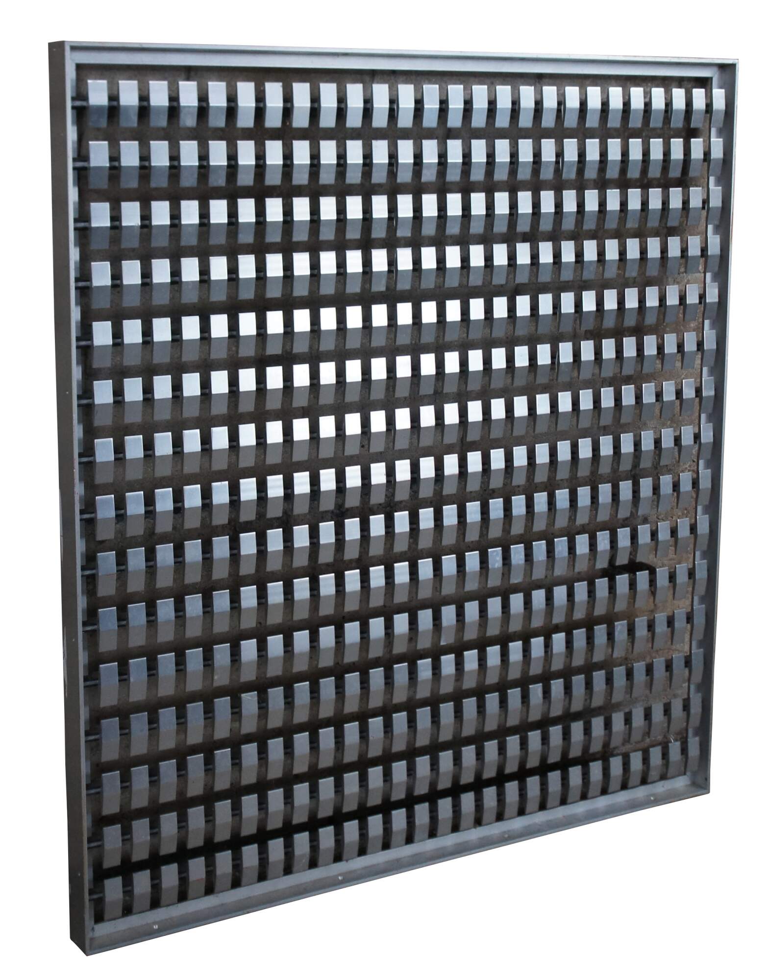 Mid century modern geometric industrial steel artwork panel purchased from the Lexington Public Library auction a few decades ago.