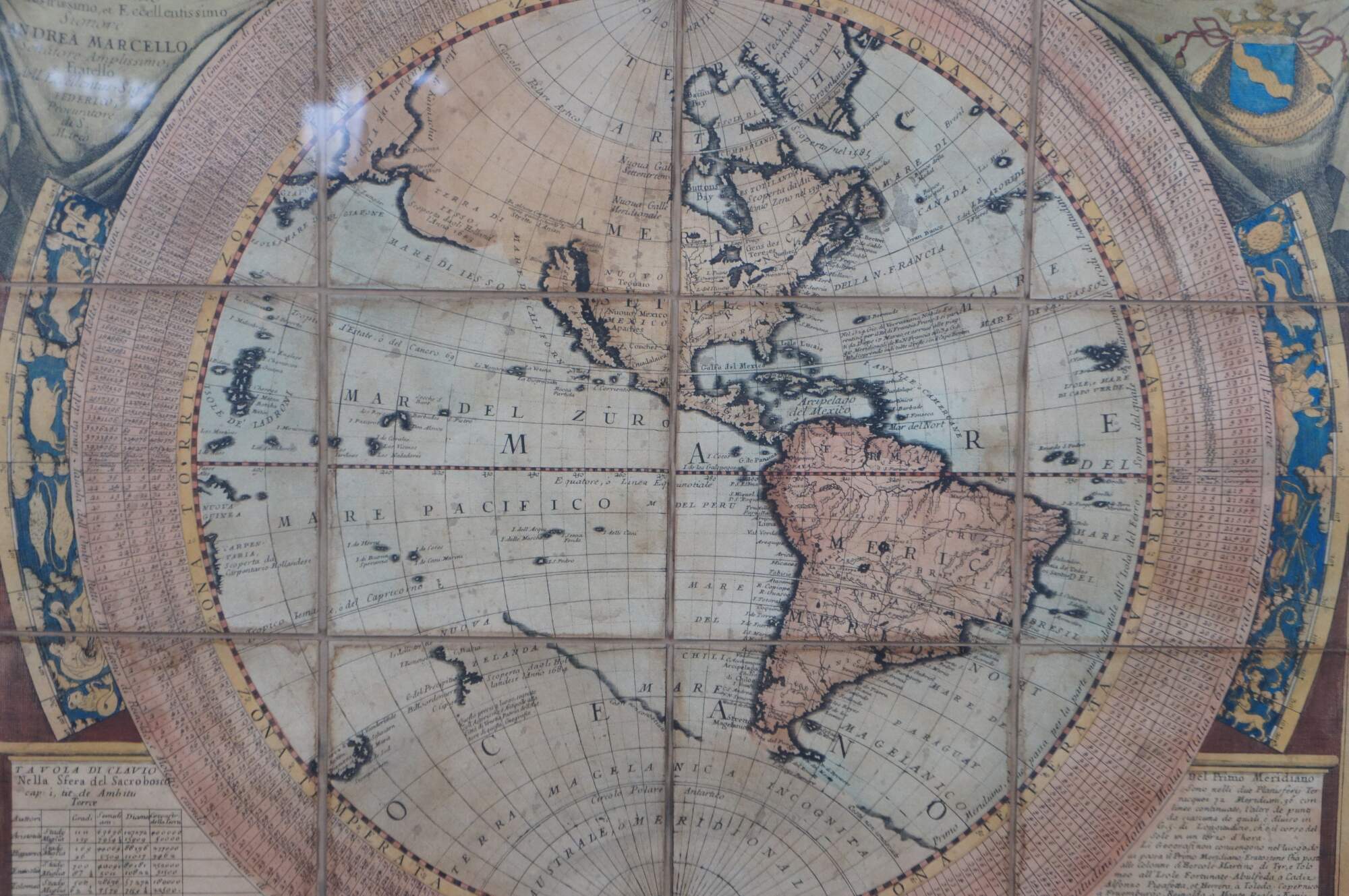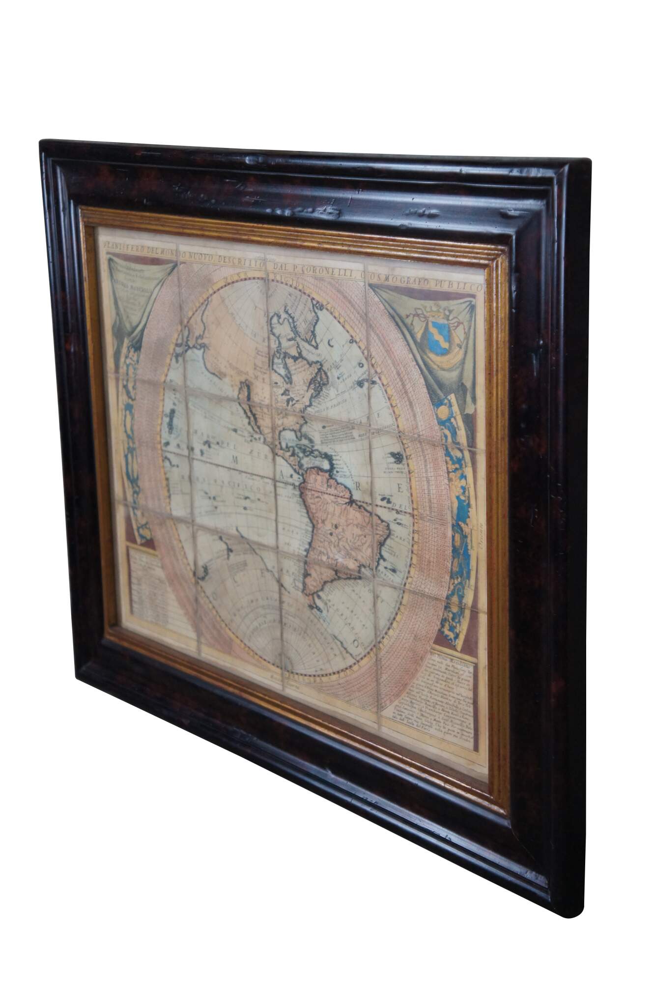 A Framed Reproduction of Coronelli's Map of the New World, Attributed to Trevor James Company. The map shows the Western Hemisphere including the discoveries made by Abel Tasman in Australia and an early image of the New Zealand coastline, plus California as an Island. The treatment of the Northeastern Coast of Asia and Japan are also quite unusual, including a representation of Terra di Iesso, the mythical land bridge which was frequently shown to extend from Asia to Alaska, with only the Straits of Anian separating the two continents.