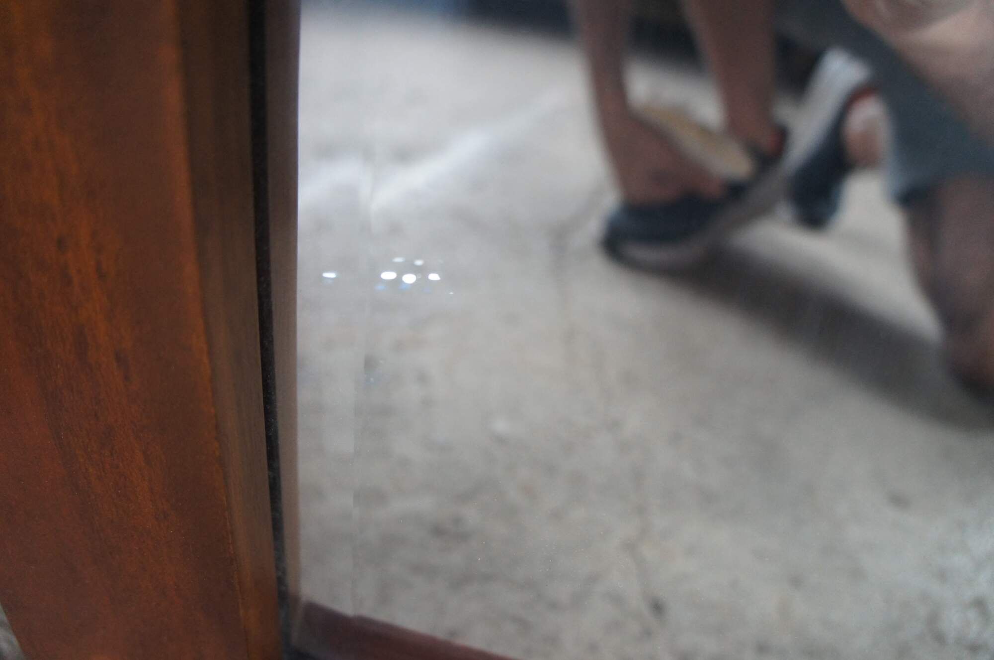 Good Condition; some chipping to the edges of the pediment, as well as back right edge on the base. A few small scratches to the glass.