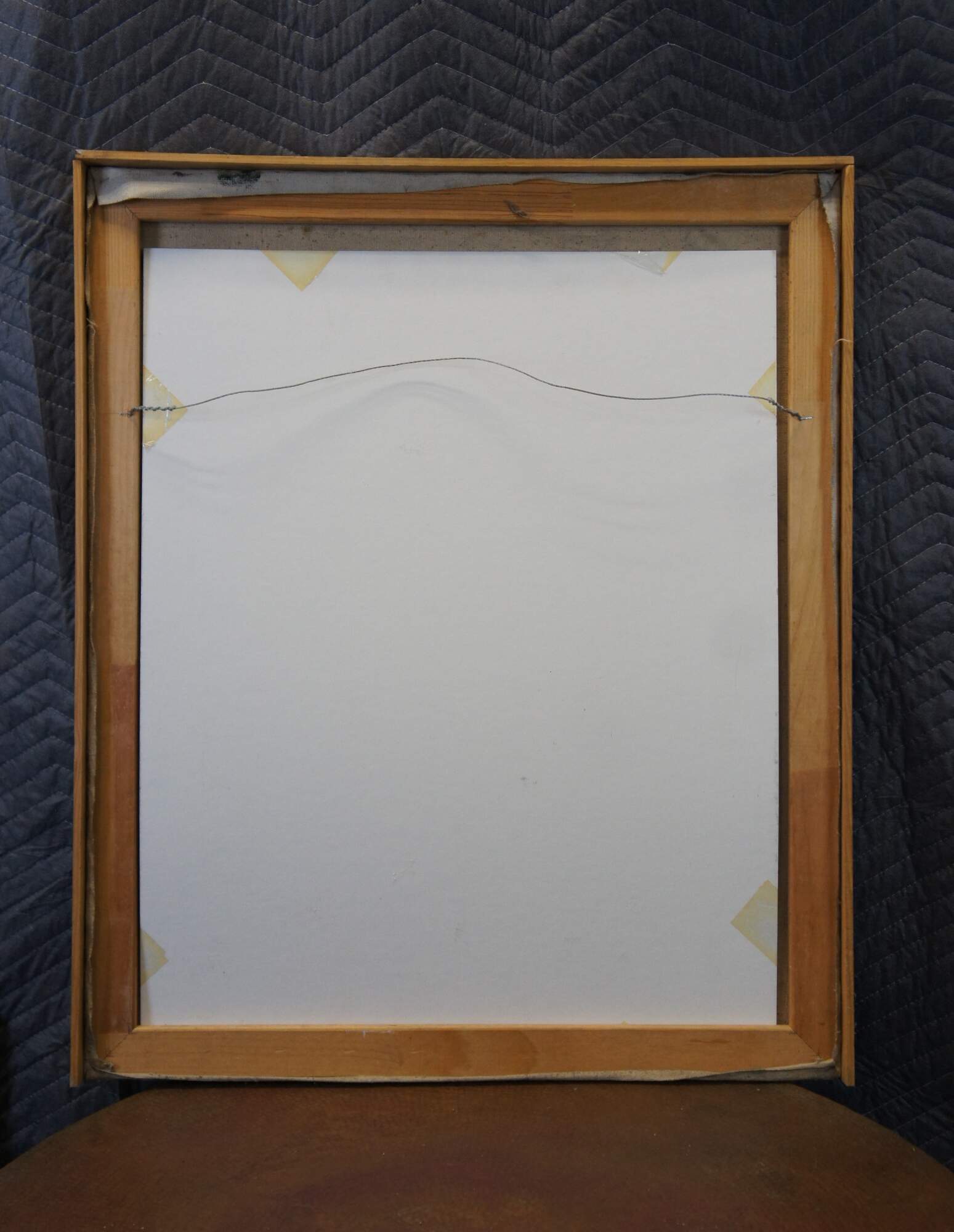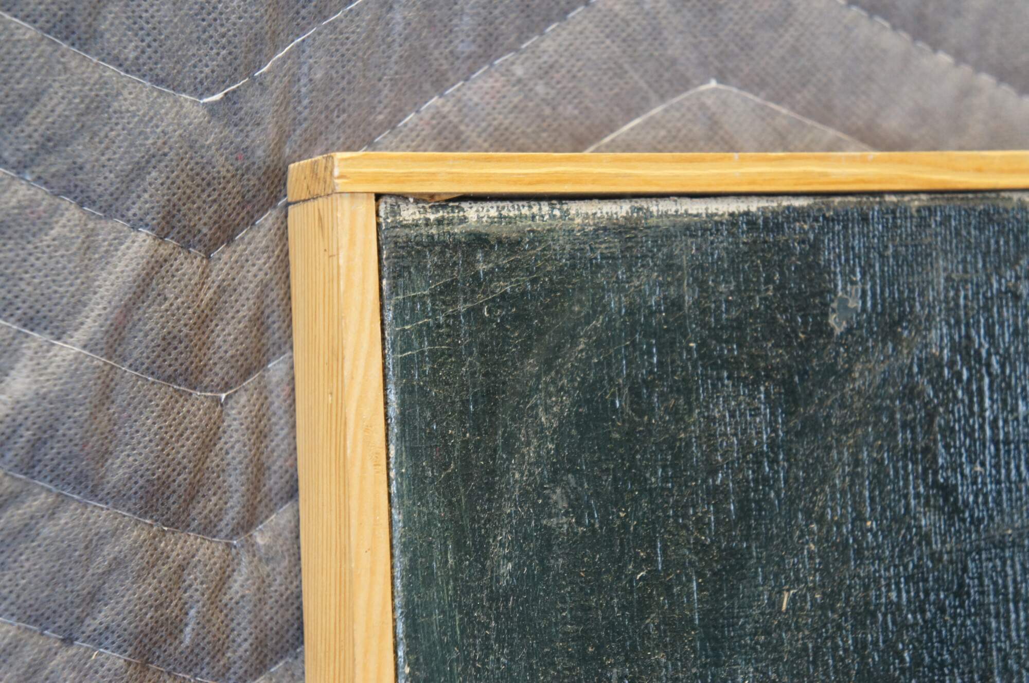 Fair condition, wear and distressing commensurate with age and use, paint loss / rubbing to canvas, some crazing, creasing, missing bottom of frame.