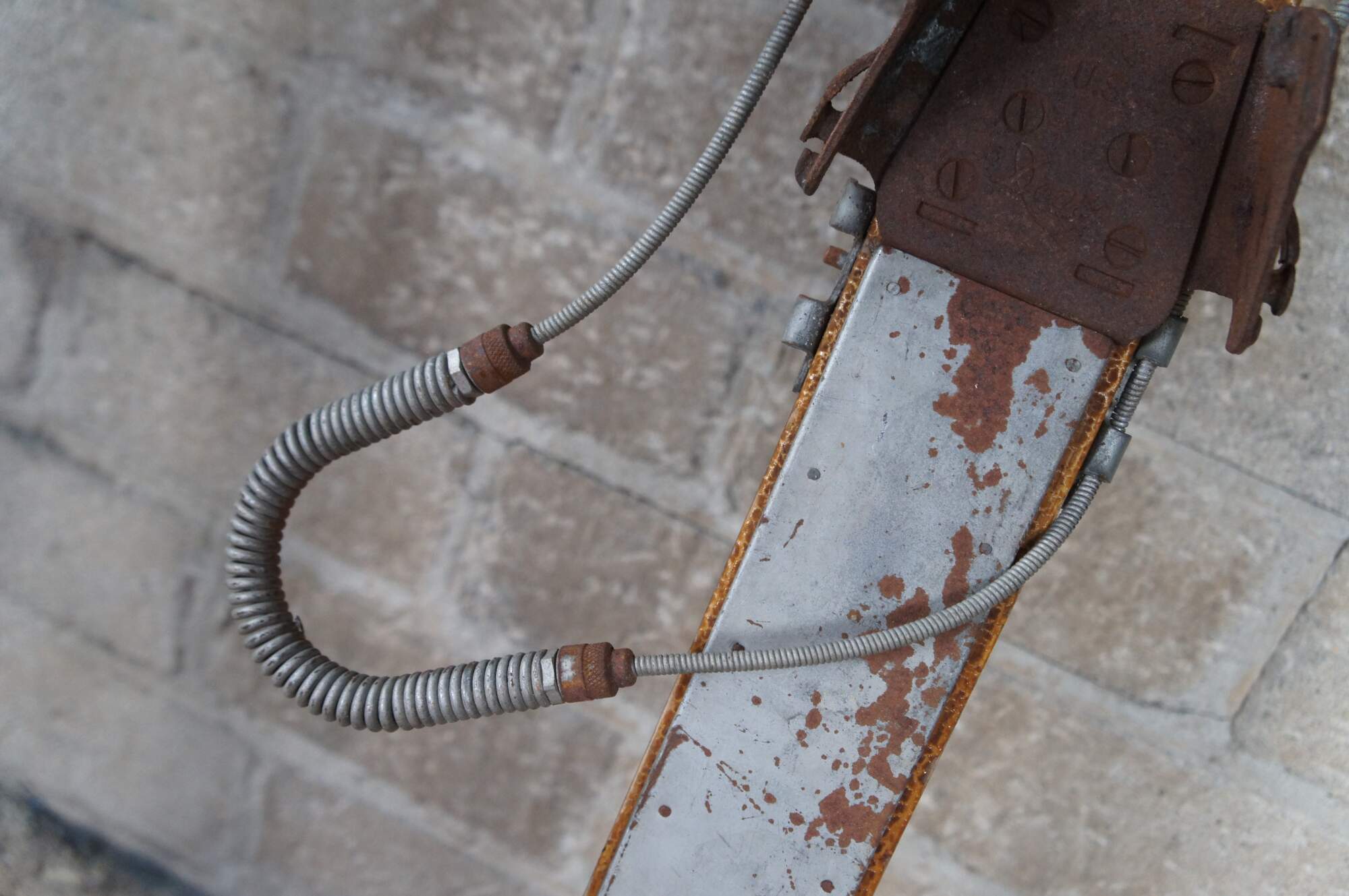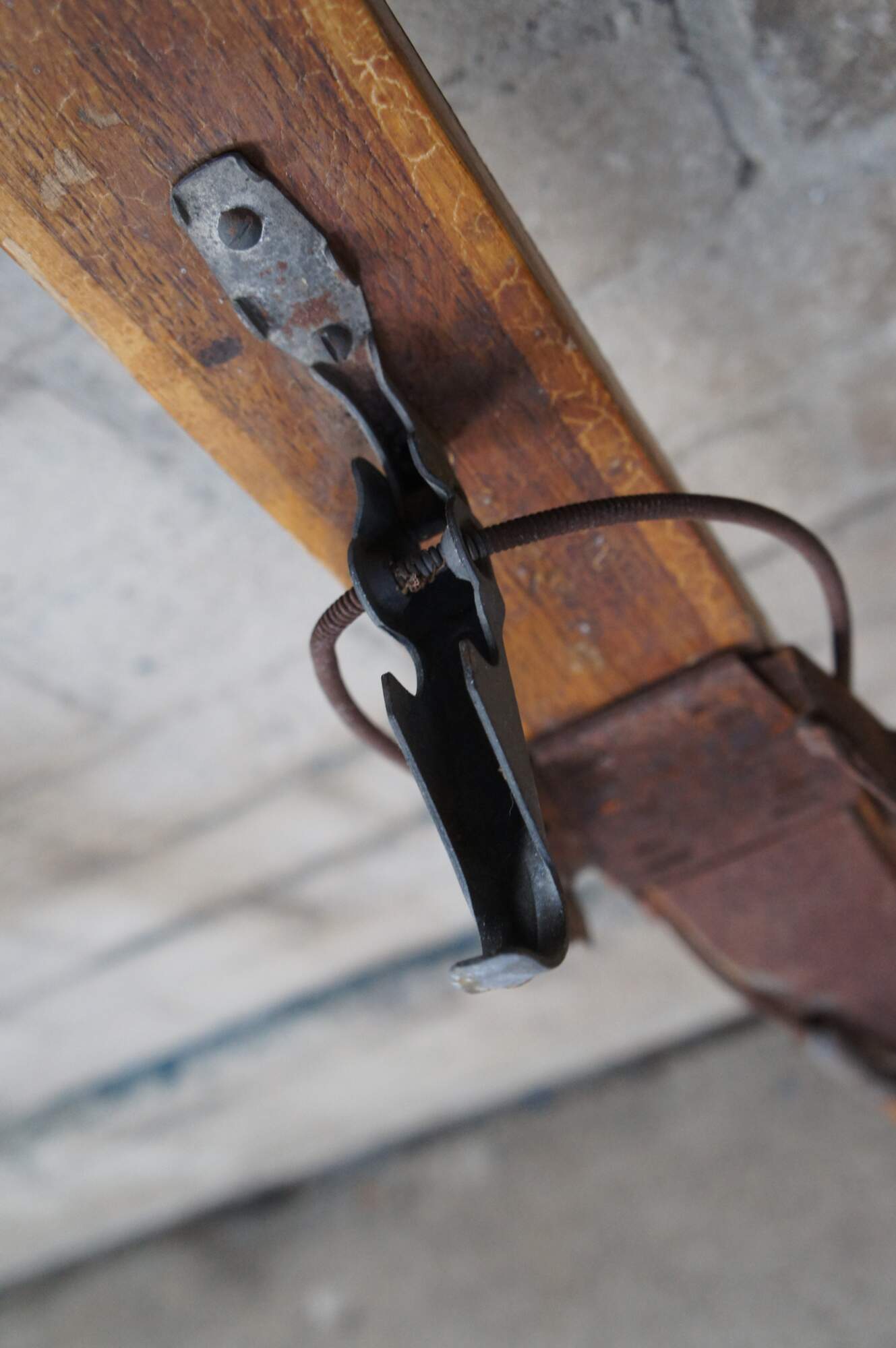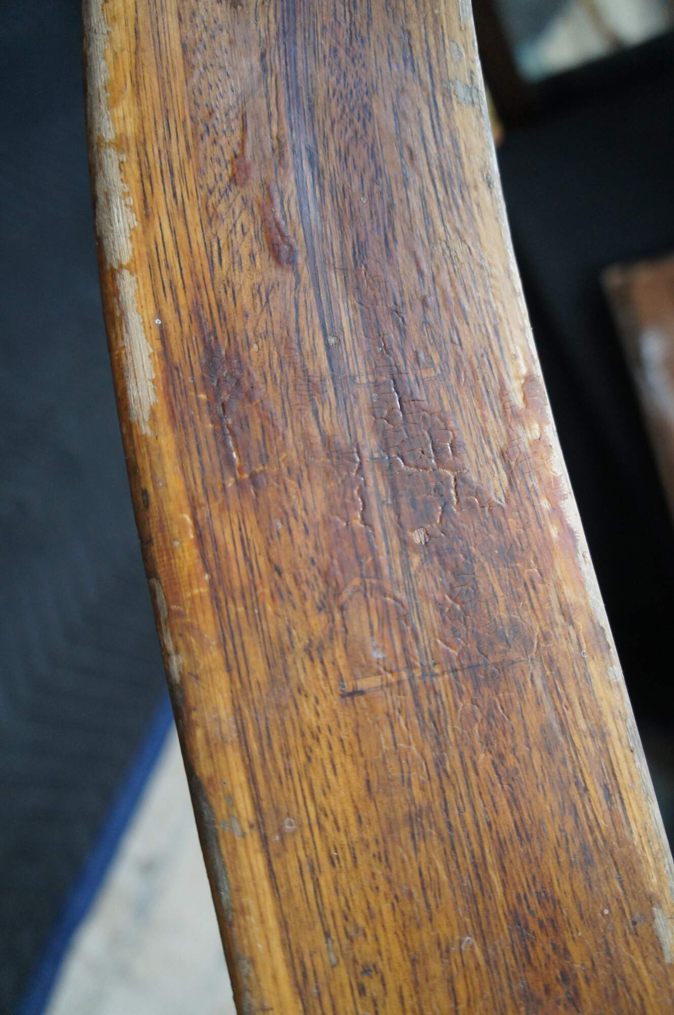 Fair condition, wear and distressing from age and use, finish loss / alligatoring, holes in tips, rusted hardware.