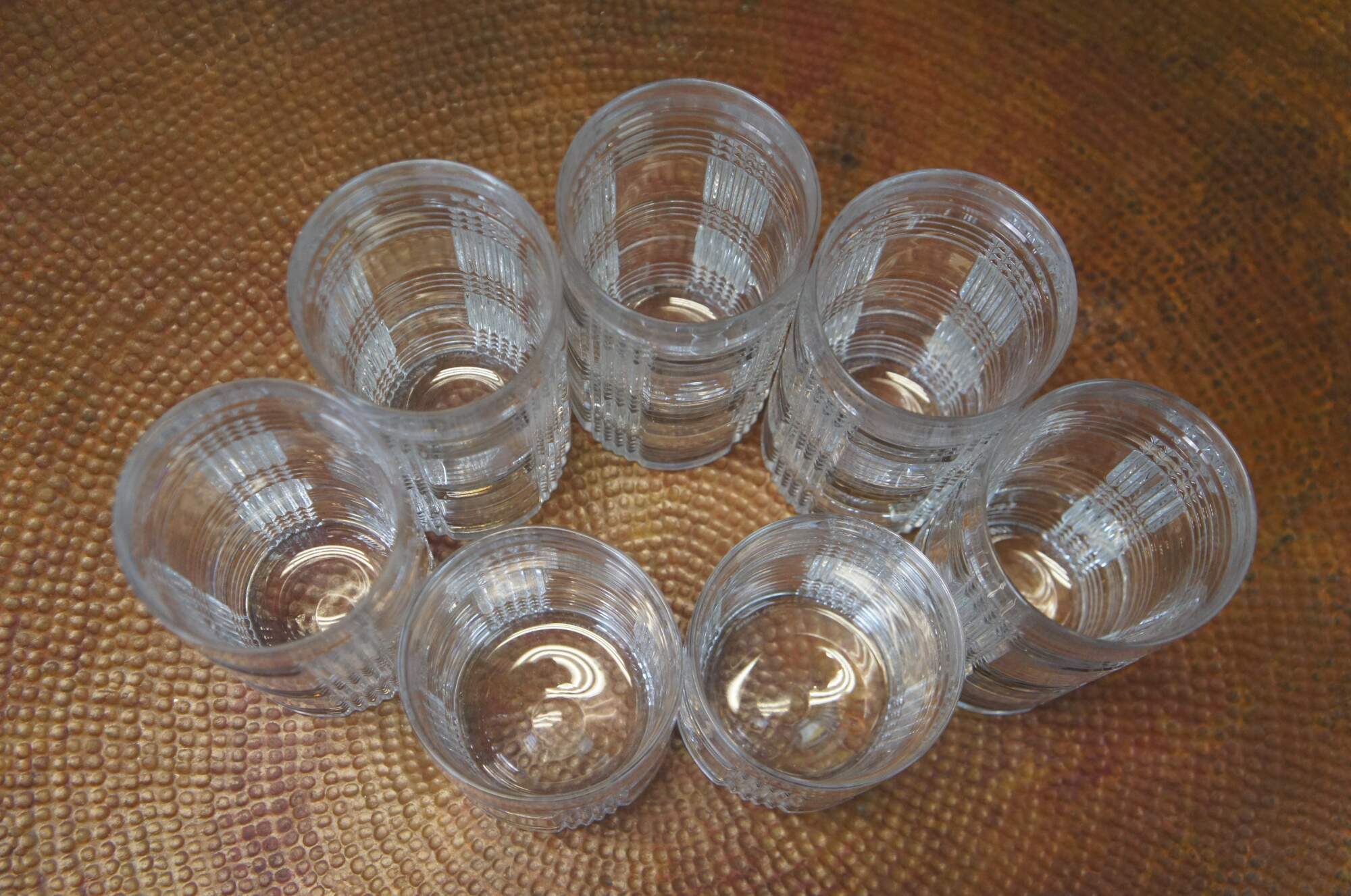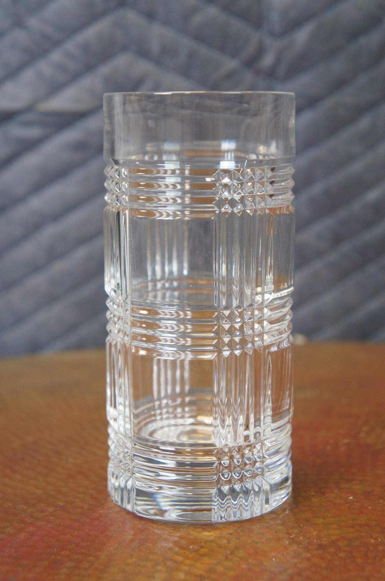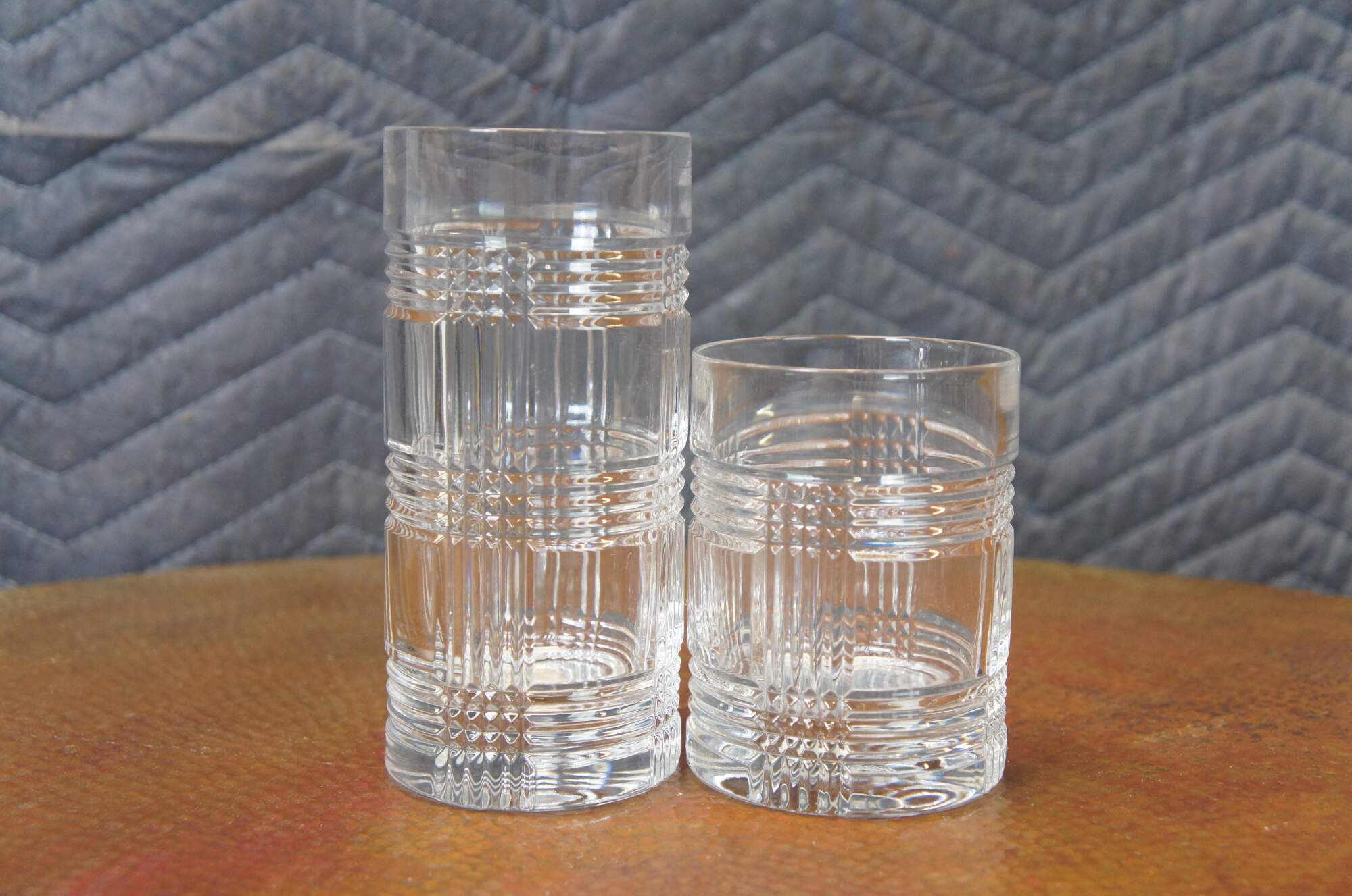 Vintage Ralph Lauren crystal barware in the Glen Plaid pattern. Includes 5 highballs / tumblers and two whiskey / rocks glasses.