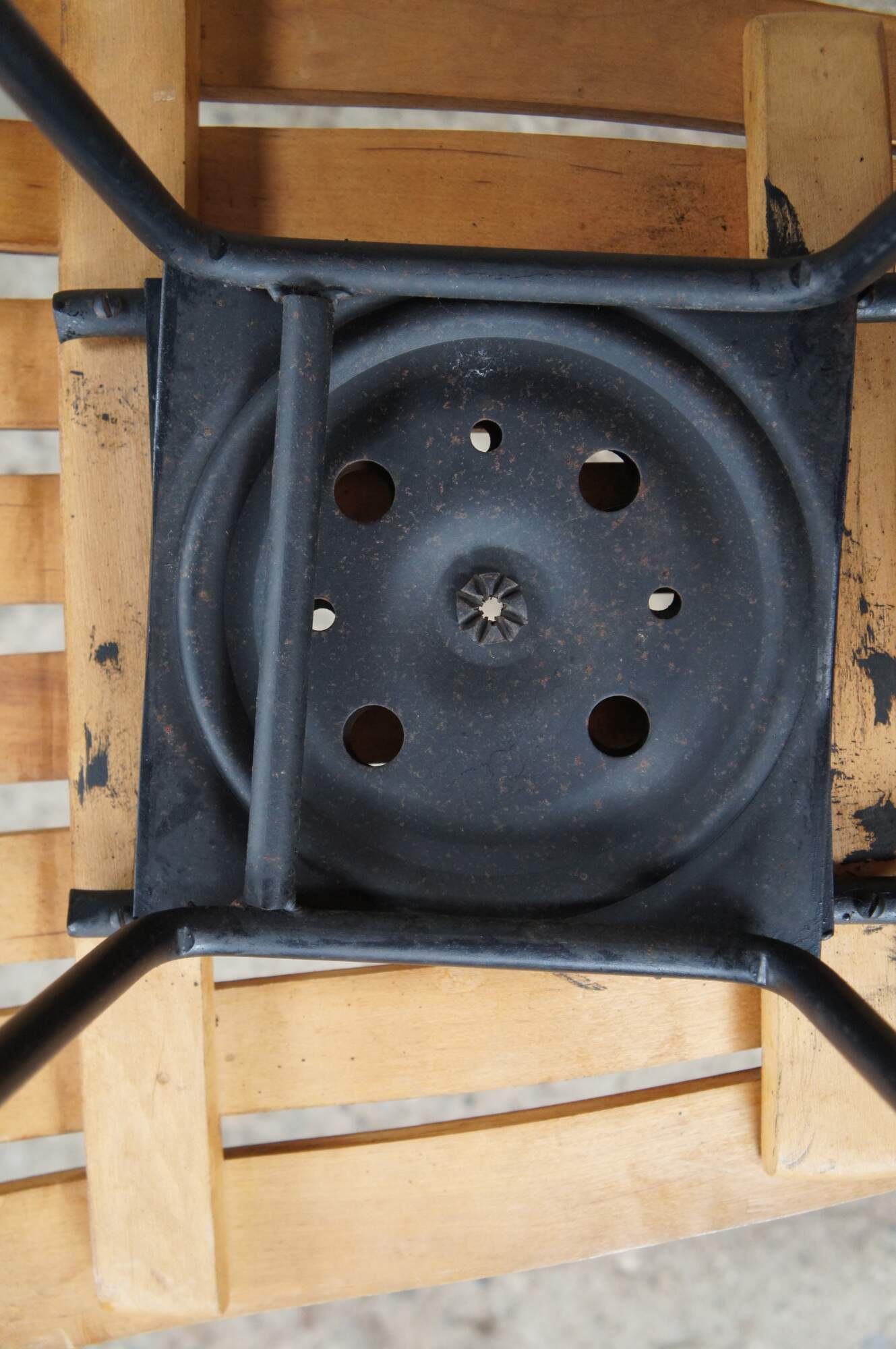 Good Condition; Swivel seats a little tight. One stool missing two feet caps, another missing one.
