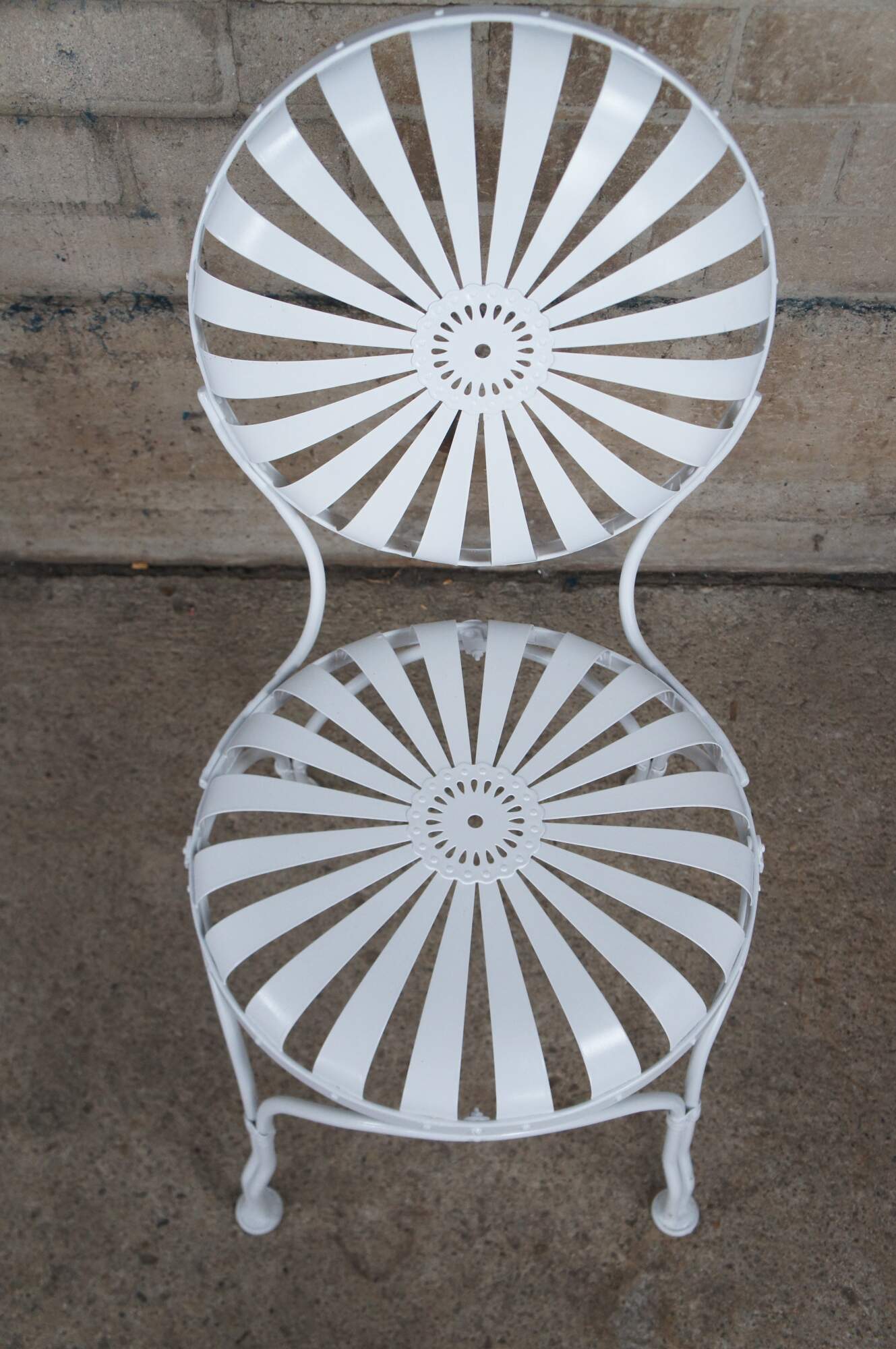Beautiful set of four Francois Carré Art Deco Spring Chairs, circa 1930s. Features a metal frame with sunburst design. Finished in white.