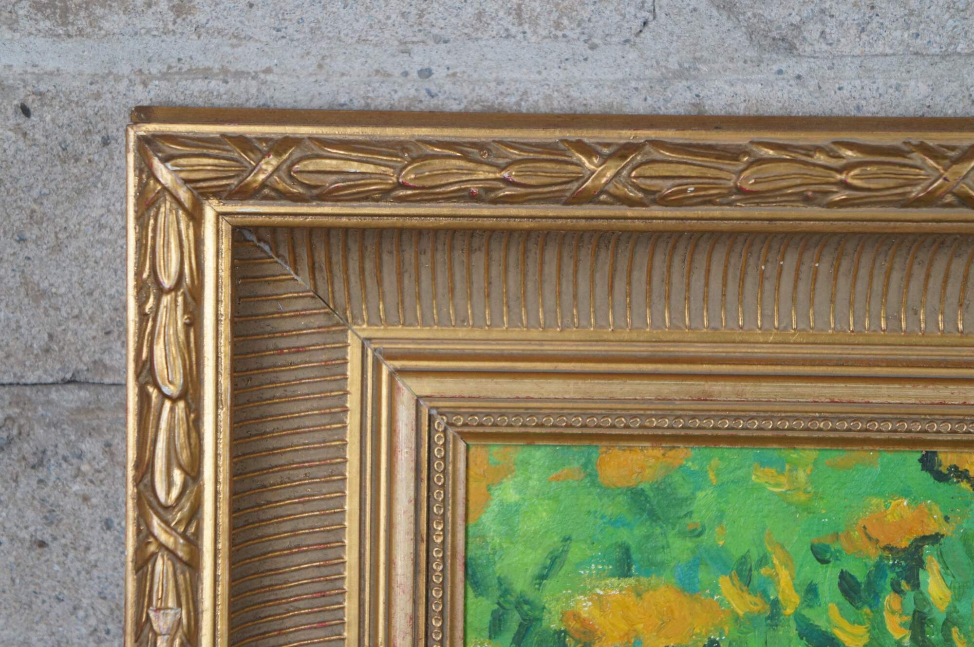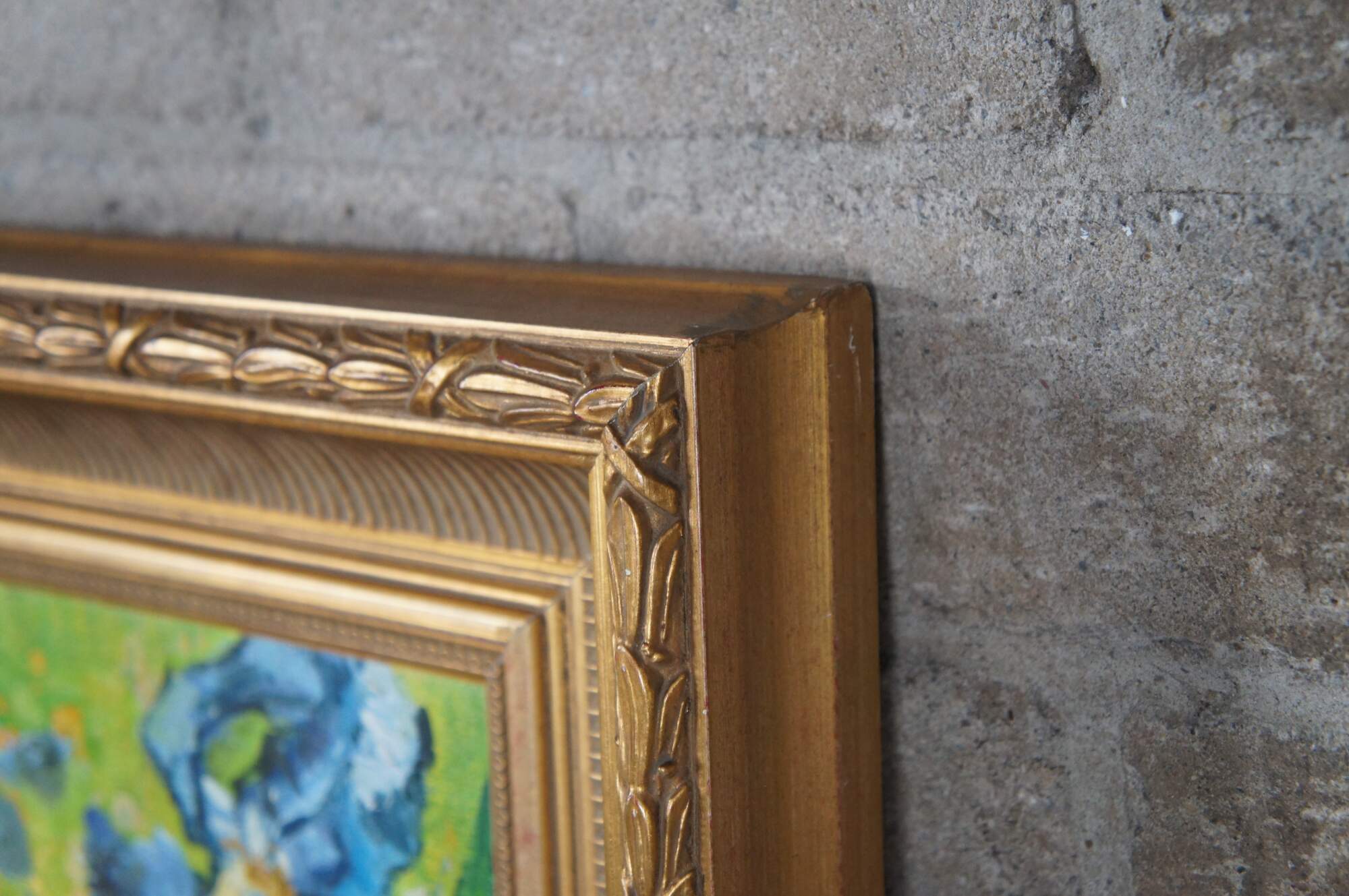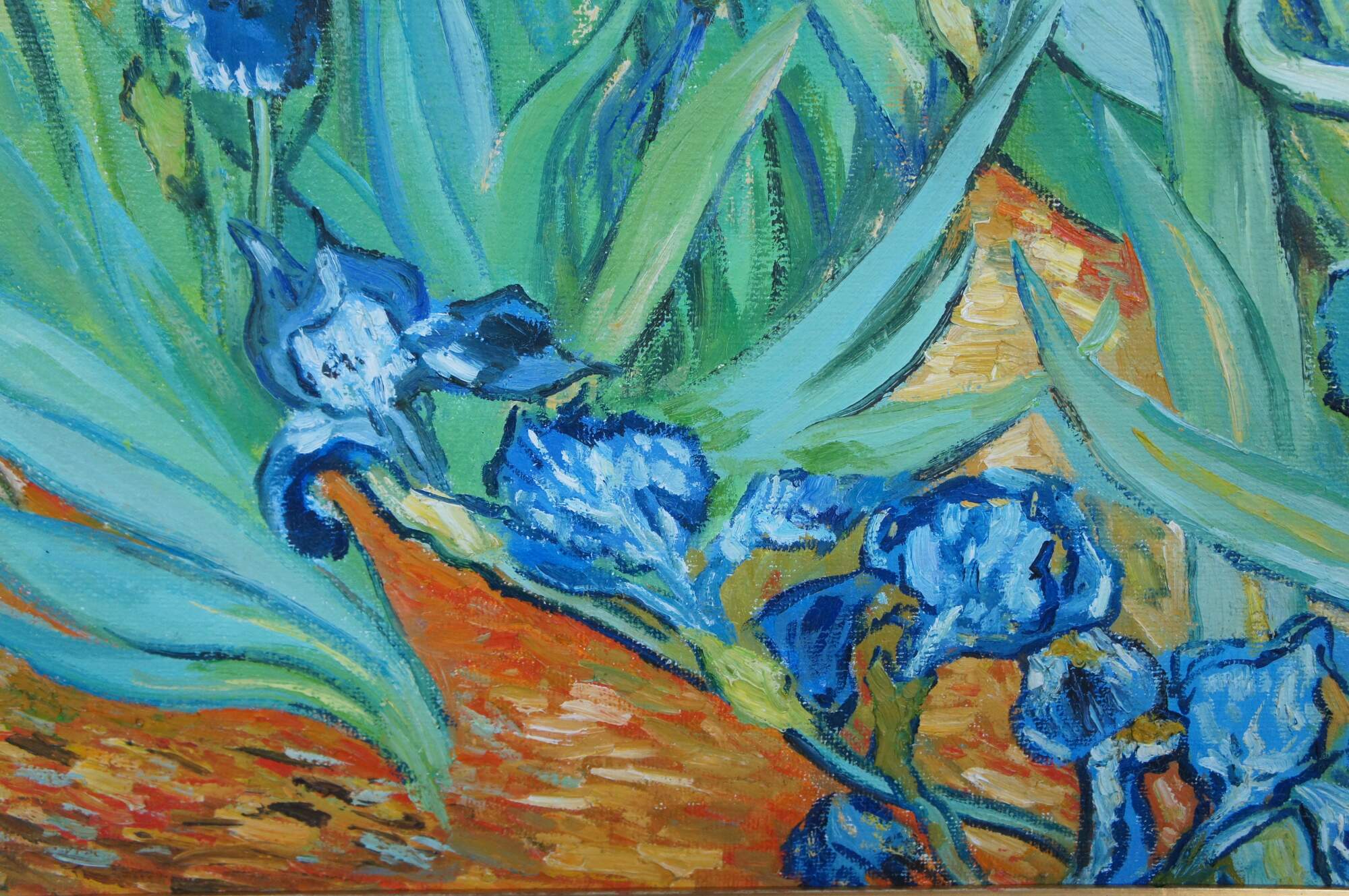 Irises" Contemporary School oil painting after Vincent Van Gogh. An oil on canvas framed in wood with gold finished neoclassical style framed. Unsigned